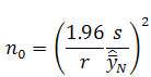 نشان داده میشود و نیز محاسبهی S2 پیشفرض گرفتن r که خطای نسبی نام دارد و عددی بین 0 و 1 است و توسط پژوهشگر تعیین میشود (معمولا حدود 1/0 یا 2/0 در نظر گرفته میشود)، تعداد نمونه با فرمول زیر تعیین میگردد. ابتدا تعداد جامعهی اولیه با توجه به مشخصاتی که از پیشنمونه به دست آمده است، محاسبه میشود.