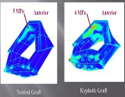 داده حاصل از FEM برای مهره های C4 و C5 در حالت طبیعی (سمت چپ) و ضایعه خمیدگی کمر (سمت راست) تنش در این دو مهره در حالت خمیدگی کمر را نشان می دهد.