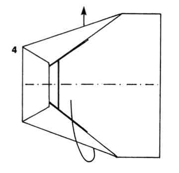 4- خط چین نشانه محل تا کردن است. هنگامی که ادامه خط چین نقطه چین است، به این معناست که ادامه تا شدگی پشت قسمتی پنهان شده است.