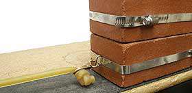 دو نوع ماده، آجر را به چرخ و محور وصل کرده است. اولین ماده یک نخ غیر کشسان است (طول نخ همیشه ثابت است)و یک لوله لاستیکی پزشکی کشسان (طول لوله تغییر می کند). این لوله مستقیماً به آجر متصل و کاملاً کشسان است در اثر چرخیدن دسته چرخ، تنش به وجود آید. روی سطح زیری آجر هم برای افزایش اصطکاک، نوار سمباده وصل شده است . با این وسیله میتوان " طول پارگی " را در هر" زلزله " با مشاهده مسافتی که آجر میپیماید، بدست آورد و فهمید که این مقادیر روند مشخصی ندارند. میتوان با یکنواخت کردن سرعت چرخش دسته، زمان " زلزله " را اندازه گرفت که آن هم روند ثابتی ندارد. اگر دسته را به آهستگی بچرخانیم، با نزدیک شدن نخ به آستانه " پارگی " میتوانیم لحظه ای قبل از شروع حرکت آجر صدای ترق و تروق سمباده را بشنویم که شبیه سازی یک پیش لرزه است. با ریختن پودر بچه کنار سمباده میتوان خط گسلهای ناشی از حرکت آجر را دید. با افزودن یک آجر به روی آجر قبلی هم زلزله شدیدتری پدید میآید. میتوان آجر دوم را هم به یک لوله لاستیکی وصل کرد تا برخورد دو زلزله، شبیه سازی شود. اگر تنش کافی باشد، آجر اول به جلو میرود و به تنش روی آجر دوم میافزاید. به تدریج آجر دوم به حرکت میآید و نیرویی رو به عقب بر آجر اول اعمال میکند و دوباره آن را هم به حرکت میاندازد.