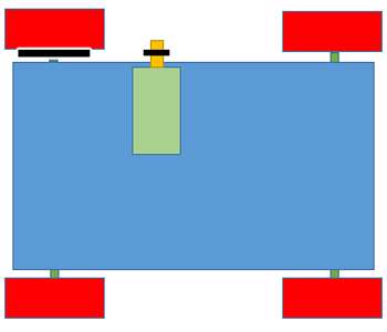 چهار عدد از این قطعه برای نگه داشتن شاسی بر روی محور در نظر می­ گیریم. و این قطعات را با فاصله مساوی از هم در قسمت عقب و جلوی شاسی می­ چسبانیم. درون هر یک از ای قطعات سوراخی تعبیه شده که قطر داخلی آن کمی بیشتر از قطر محورهاست، تا محورها به راحتی داخل آن ها حرکت نمایند.
