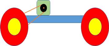 محور چرخ ­ها را موازی هم نگه می­ دارد و نمی گذارد آن ها از جای خود خارج شوند، همچنین یک قرقره بر روی محور نصب شده و چرخش موتور را با کمک یک تسمه به چرخ­ ها انتقال می ­دهد. طول محور بر اساس فاصله ای که ما برای چرخ ­ها از هم در نظر می­ گیریم بستگی دارد.