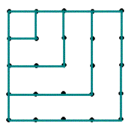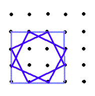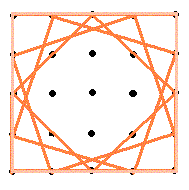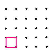 - جلسه ی اول: کلاس خود را با بحث و گفتگو درباره ی مربع - تعریف و ذکر خصوصیات آن - آغاز کنید. سپس صفحه ای مانند صفحه ی زیر در اختیار دانش آموزان قرار دهید و از آن ها بخواهید چهار مربع مختلف روی صفحه رسم کنند، به طوری که هر یک از رأس های این مربع ها روی یکی از نقاط مشخص شده در صفحه قرار گیرد. برای این منظور میتوانید از شکل print بگیرید.