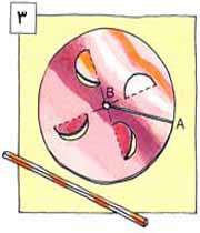 | بالا رونده با نخ وقتی بادبادك شما در حال پرواز در هوا است، چه كار دیگری می توانید انجام دهید؟ سعی كنید این چرخگردهای كوچك را از نخ بادبادك عبور دهید و اجازه دهید به همراه آن بالا رود. | دایره ای به قطر ١٠٠ میلیمتر از مقوای سفت ببرید. سوراخی (به قطر ٥-٤ میلیمتر) در مركز آن بوجود بیاورید. |  | | به كمك پرگار چهار دایره به قطر ٣٥ میلیمتر در آن رسم كنید. نیمی از هر دایره را ببرید و آن را همانند شكل خم نمایید. |  | | ٦٠ میلیمتر از نی پلاستیكی را ببرید و شكافی در طول آن بوجود آورید. آن را به كمك چسب به طور عمود به مركز دایره بچسبانید. سعی كنید هر دو طرف در یك راستا باشند. |  | بازگشت |