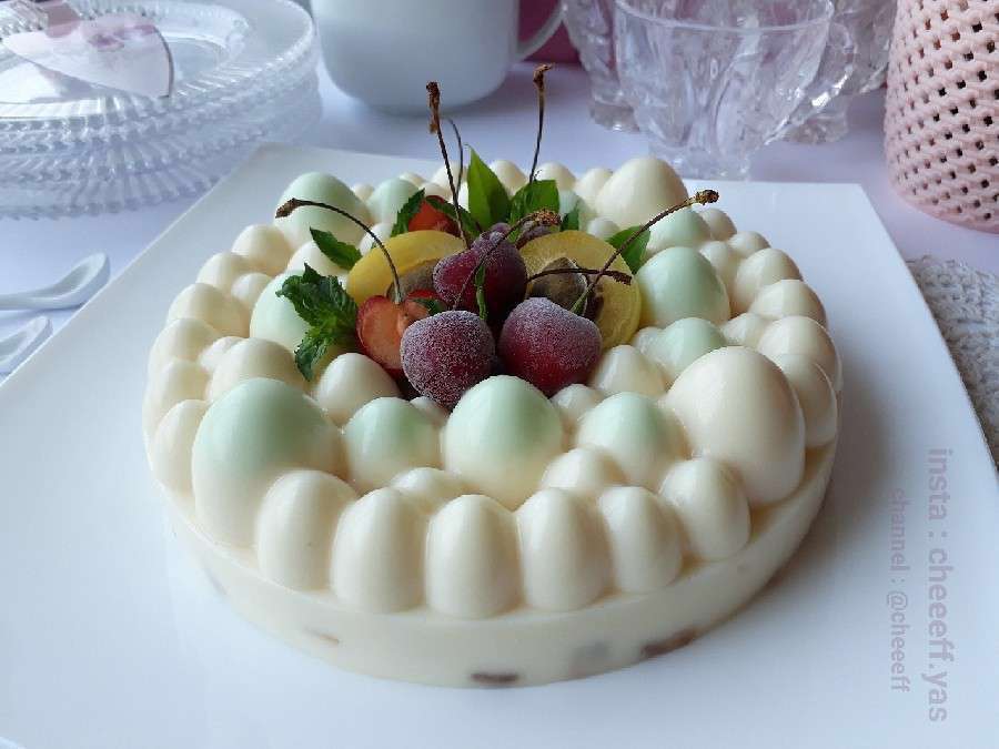 حالا خامه را اضافه کرده و هم بزنید تا کاملا یکدست شود، مایه اصلی دسر ما آماده است، آن را در یک قالب چرب شده بریزید و در یخچال قرار دهید تا بسته شود. (زمان مورد نیاز برای آماده شده دسر به درجه یخچال شما بستگی دارد، اما حدودا بین دو تا چهار ساعت زمان نیاز دارد تا کاملا سفت شود.) بعد از اطمینان از بسته شدن دسر، آن را از قالب خارج کرده و به دلخواه تزیین کنید.