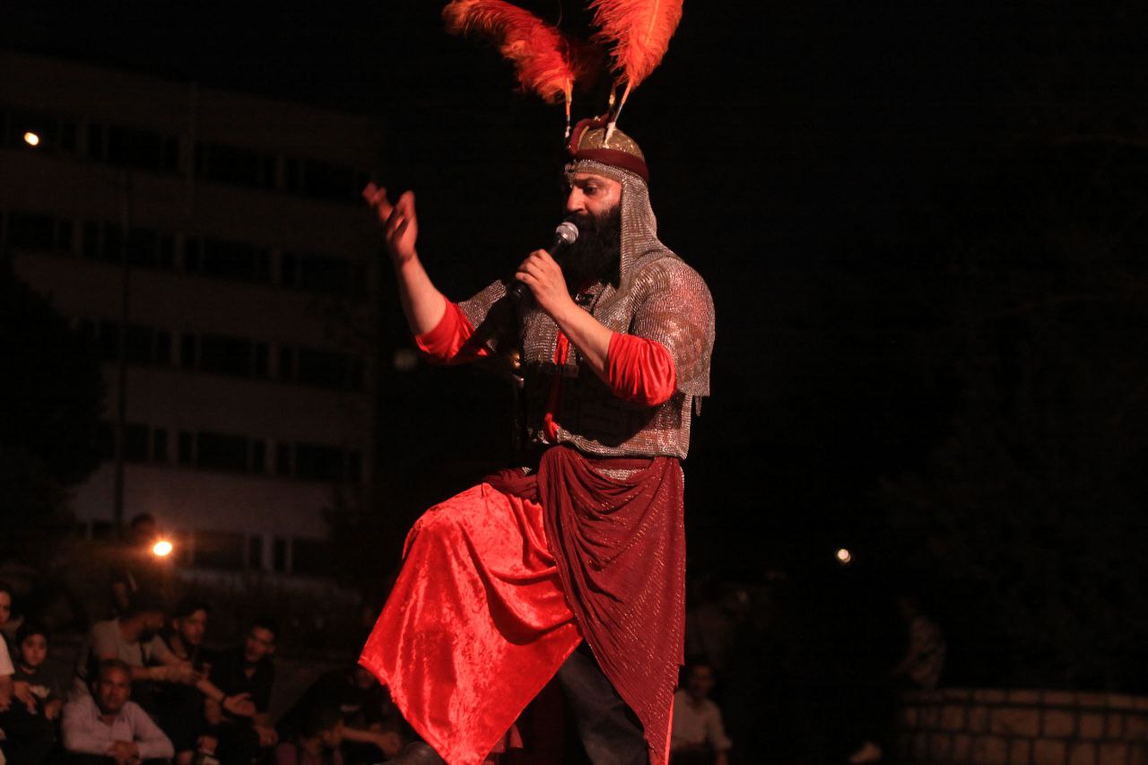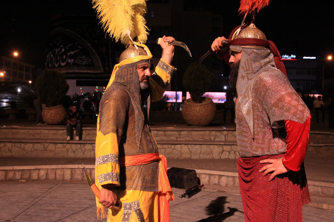 رنگت پریده از عطش ای خاک بر سرم با آنکه نام باب تو ساقی کوثر است زینب شکایت از غم هجران کند ولی یکساعت دگر ز جفا بی برادر است صدای خواندن این اشعار با صدای گریه جمعیت قاطی شده، جلوتر میروم تا منشا صدا را بین جمعیتی که از دور میبینم پیدا کنم. شمر تعزیه با صدای محکم ولی حزنآلودی شمشیر در هوا میچرخاند و میخواند: از کوفیان وفا مطلب پا بنه به جنگ، دیگر تو را نه قاسم و عباس و اکبر است... گریه حضار اوج میگیرد. امیر حدادی 42 ساله و اصالتا اهل تفرش، 25 سال است که در دستگاه تعزیه مخالفخوانی میکند. نقش شمر و حارث و منقذ را بازی میکند و خودش میگوید سعی میکند تا با این کار گوشهای از ظلمی که به امام حسین علیهالسلام و اهل بیتش شده را به مردم نشان دهد.