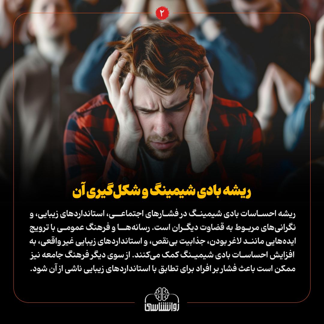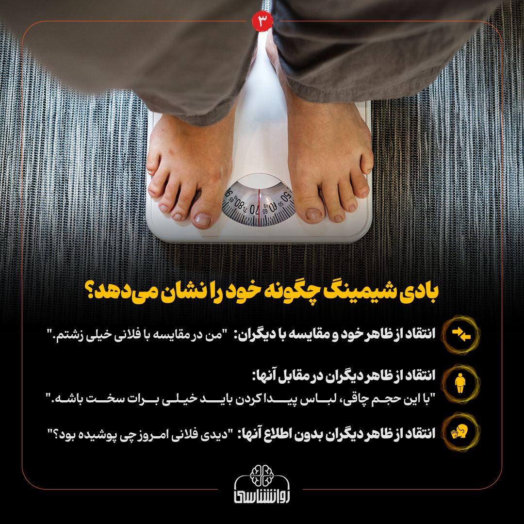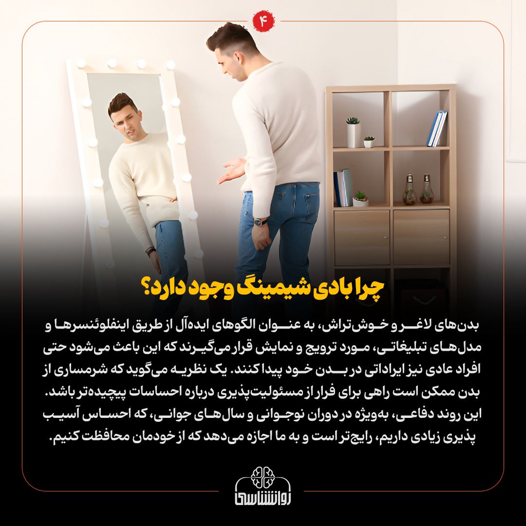 تابحال با خود فکر کردید چندین بار در روز به صورت پیدا و پنهان تحت تاثیر جملات و تبلیغاتی قرار گرفتهاید که باعث شده احساس کنید از نظر ظاهری به حد کافی خوب نیستید؟ یا منجر به این شوند که احساس بدی به بدنتان داشته باشید، از فرم و شکلش بدتان بیاید و حتی آرزو کنید ای کاش در بدن دیگری زندگی میکردید؟ بادی شیمینگ چیست؟ ابتدا بیایید با یک تعریف روانشناسی از این حالت شروع کنیم: بادی شیمینگ (body shaminig) که یک مفهوم روانشناختی است و به شرم و ناخوشی از بدن اشاره دارد. یعنی وقتی کسی احساس بدی درباره بدن خود دارد و از آن ناراضی است، این احساسات به عنوان بادی شیمینگ یا در فارسی شرم از بدن، تحقیر بدن شناخته میشوند. این مفهوم نشان میدهد که افراد ممکن است احساس کنند که بدنشان با چیزی که باید باشد مطابقت ندارد یا ناکامل است.