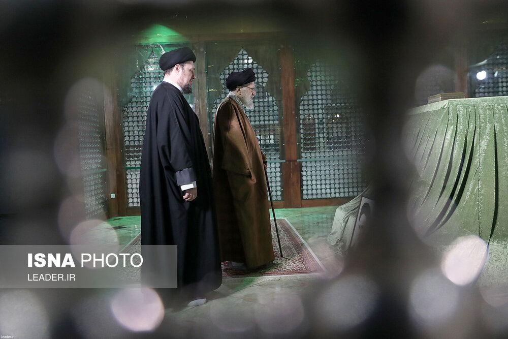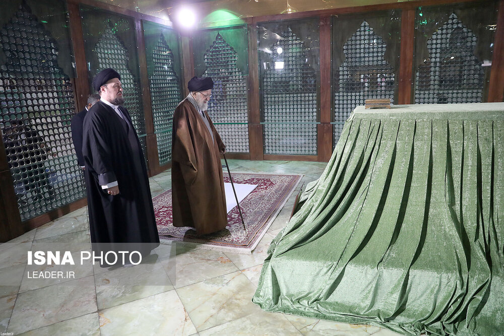 حضرت آیت الله خامنهای رهبر معظم انقلاب اسلامی صبح امروز در آستانه دهه مبارک فجر در مرقد امام خمینی (ره) حضور یافتند و ضمن قرائت فاتحه، به بنیانگذار جمهوری اسلامی ایران ادای احترام کردند. |منبع: ایسنا