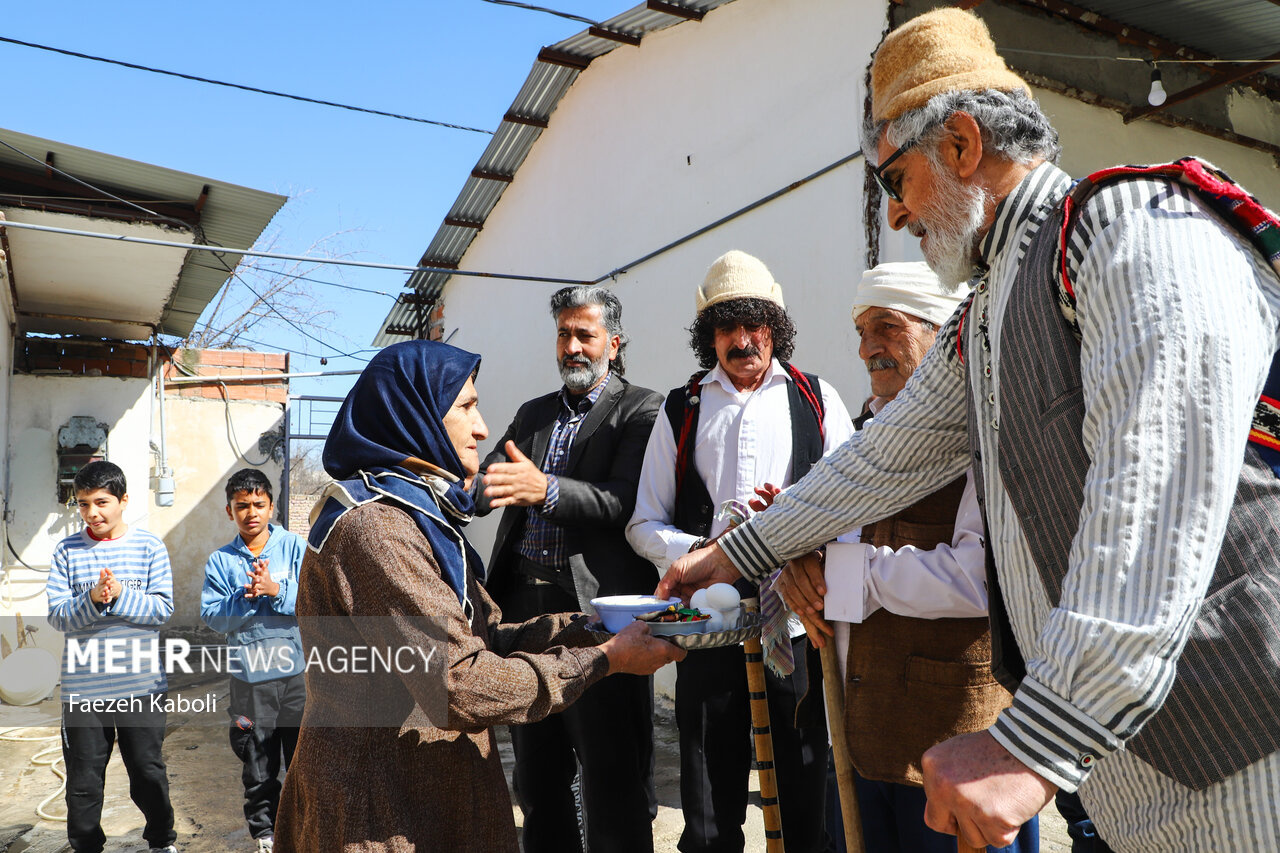 عزیز آقا با چوبدستی خود که به آن «قولچوماق» میگویند (نمادی از قدرت)، درِ خانههای روستاییان را به صدا درمیآورد. صاحبخانه نیز به پاس مژده آمدن بهار، به نوروزخوان شیرینی یا تخممرغ هدیه میدهد. این رسم کهن از گذشتههای دور با حضور نوروزخوانان برگزار میشده و تا به امروز نیز ادامه دارد.
