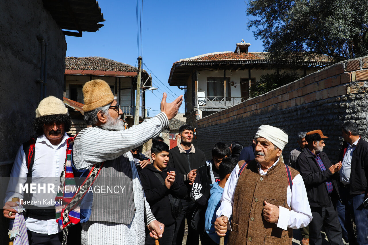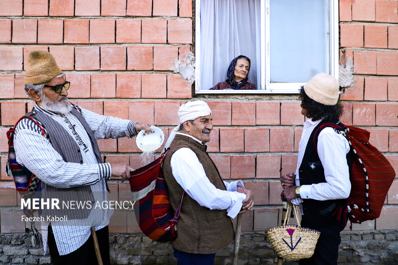 نوروزخوانان با همراهی موسیقی سنتی منطقه به خانههای روستاییان میروند و مژده رسیدن بهار را به صاحبخانه میدهند. صاحبخانه نیز طبق رسم دیرینه، به نوروزخوان شیرینی، برنج، تخممرغ یا پول هدیه میدهد. نوروزخوان پس از دعا کردن برای صاحبخانه، هدیه را دریافت کرده و به راه خود ادامه میدهد. دعا کردن برای صاحبخانه و همراهی مردم روستا با عزیز آقا در کوچههای روستا، از آدابی است که در این مراسم به دقت رعایت میشود.