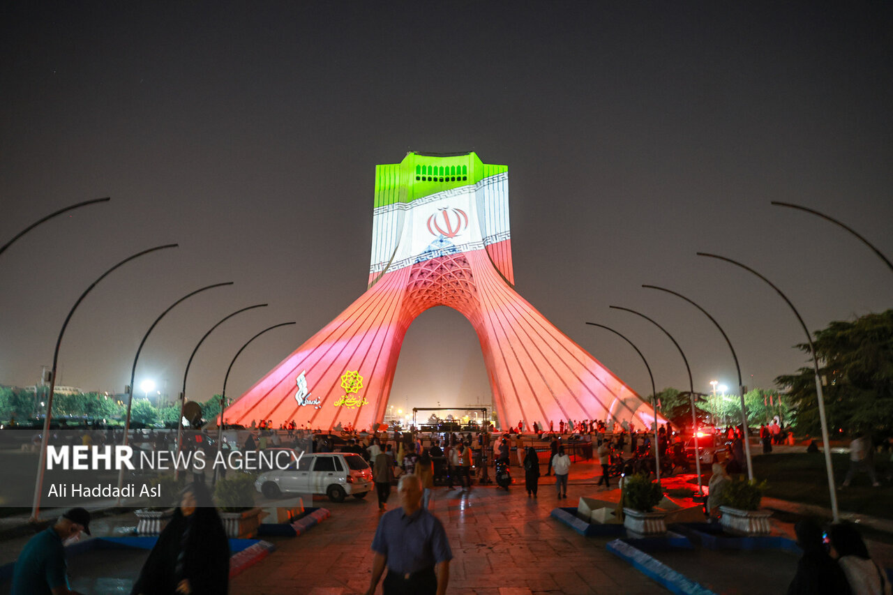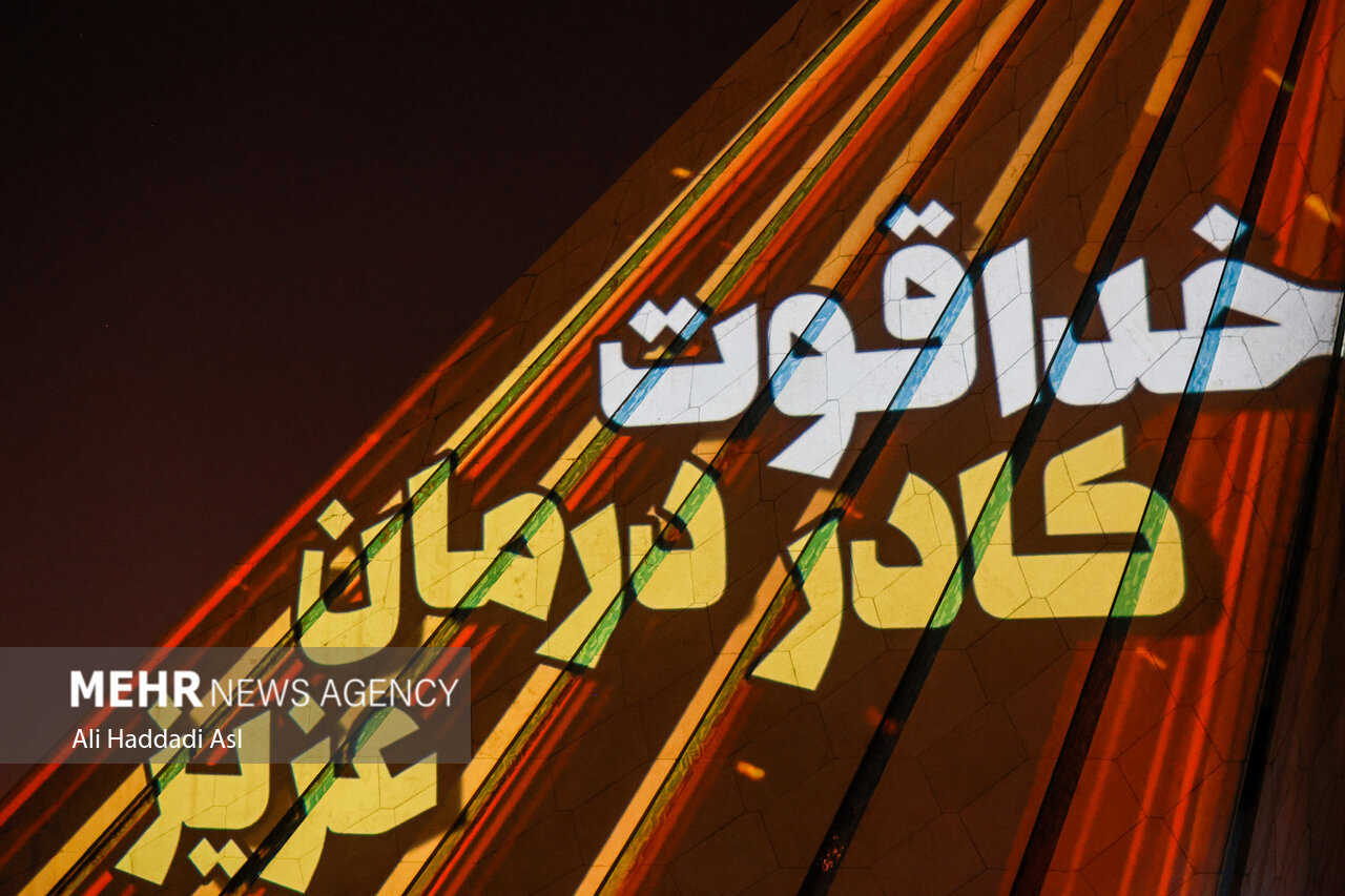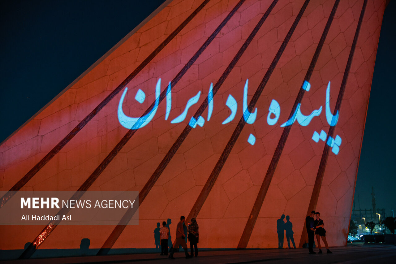 میدان آزادی در حمایت و احترام به کادر درمان، آتش نشانها، نیروهای نظامی و هلال احمر در پی جنگ تحمیلی صهیونی بر کشور عزیزمان، شامگاه چهارشنبه ۴ تیرماه ۱۴۰۴ به اجرای ویدئو مپینگ پرداخت. |منبع: مهر