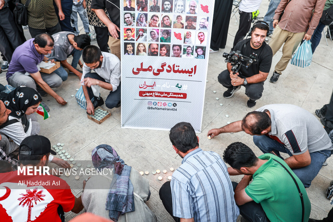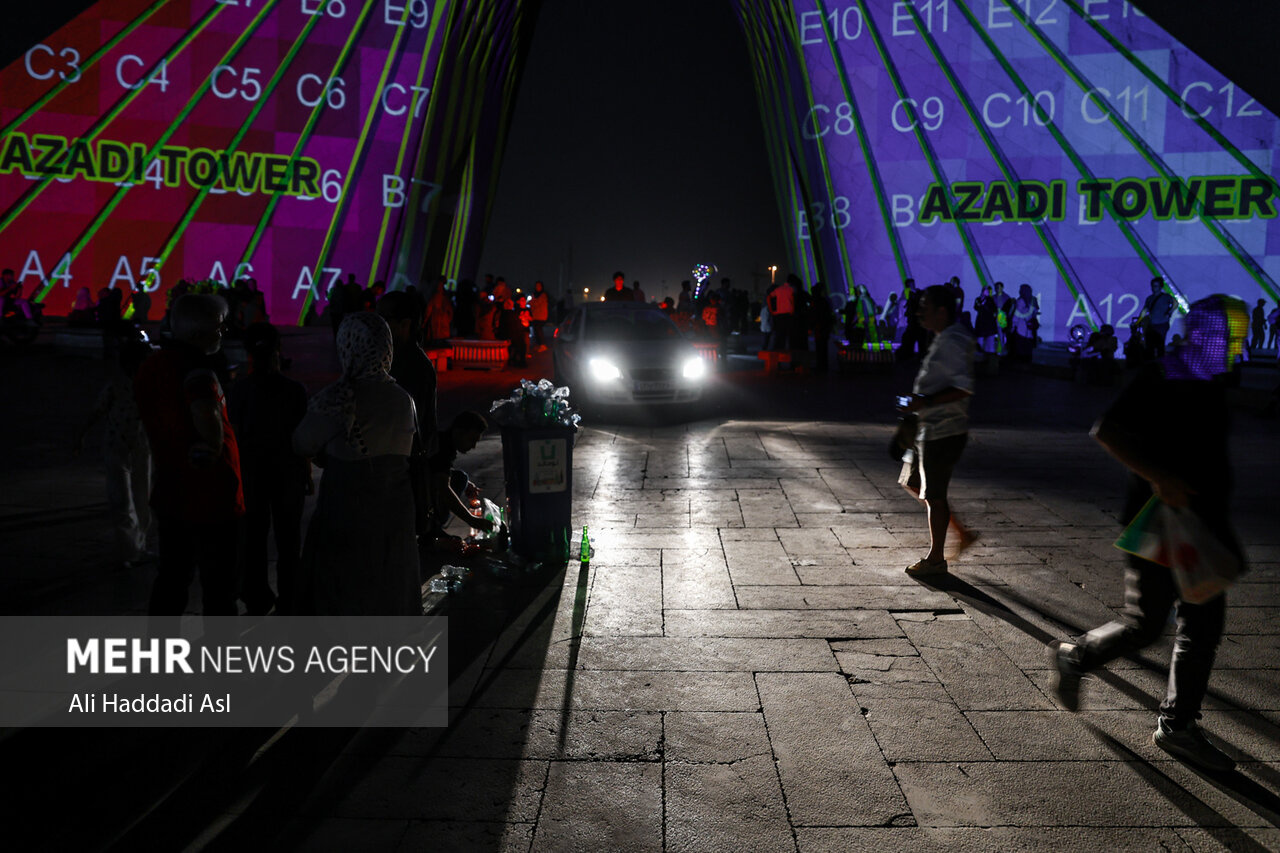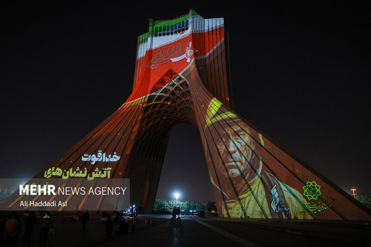 میدان آزادی در حمایت و احترام به کادر درمان، آتش نشانها، نیروهای نظامی و هلال احمر در پی جنگ تحمیلی صهیونی بر کشور عزیزمان، شامگاه چهارشنبه ۴ تیرماه ۱۴۰۴ به اجرای ویدئو مپینگ پرداخت. |منبع: مهر
