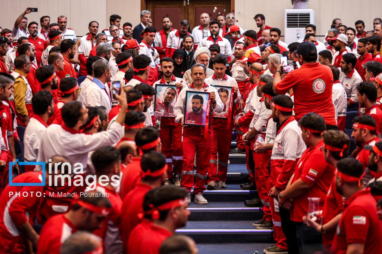 مراسم قدردانی از زحمات و رشادتهای امدادگران جمعیت هلال احمر، ظهر چهارشنبه (۴ تیر ۱۴۰۴) با حضور «پیرحسین کولیوند» رئیس جمعیت هلال احمر جمهوری اسلامی و جمعی از امدادگران سراسر کشور در تهران برگزار شد. |منبع: ایرنا