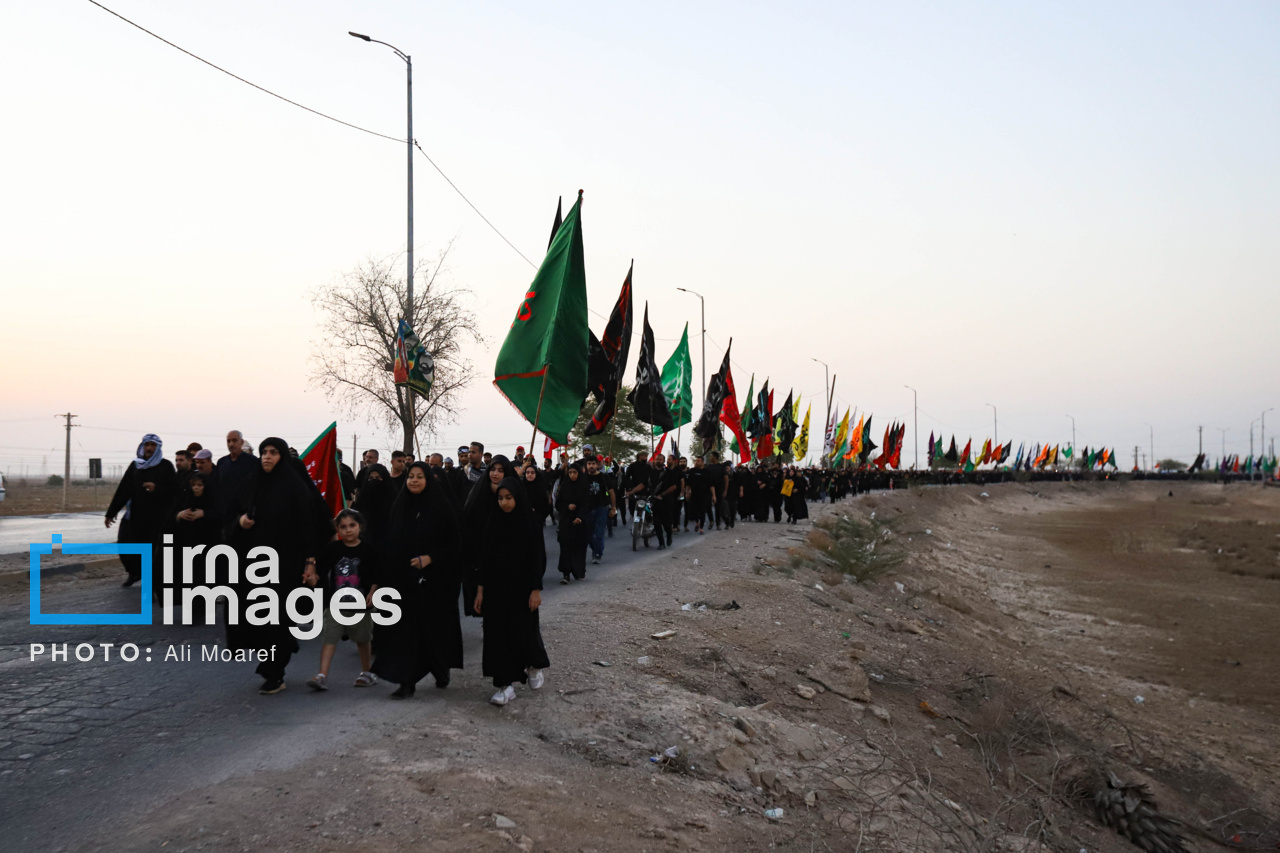 کاروان پیاده روی اربعین «عشاق الحسین» رامشیر با ۱۵۴ پرچم حسینی، دوشنبه ( ۲۸ تیر ۱۴۰۴) با بدرقه هزاران نفر از مردم بندرامام خمینی (ره) به سمت کربلای معلی حرکت کرد. این کاروان در مدت ۲۷ روز خود را به کربلای معلی می رسانند. منبع: ایرنا
