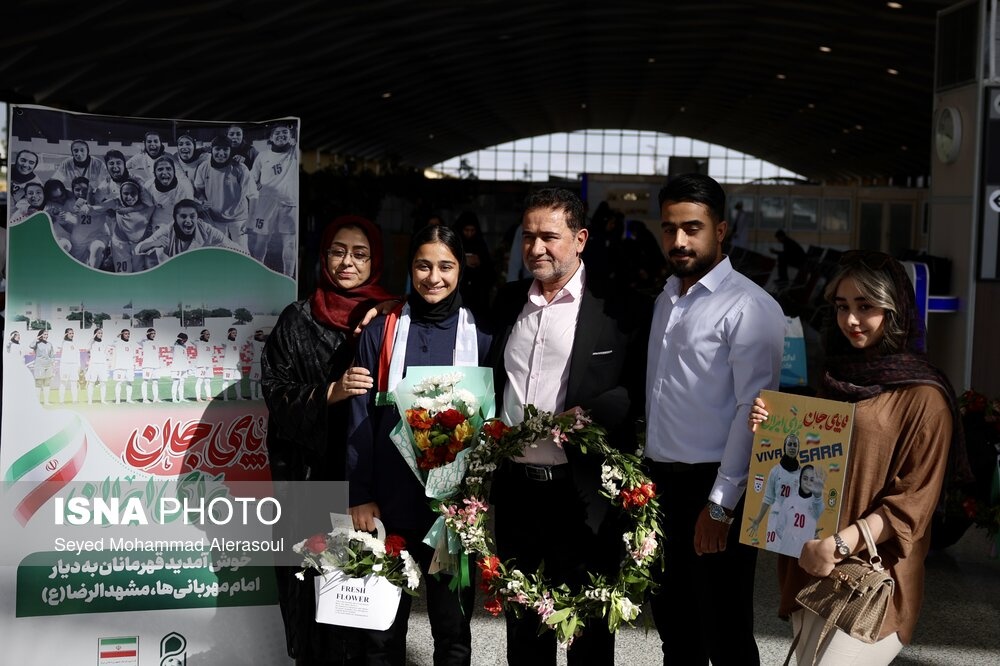 تیم ملی فوتبال بانوان ایران پس از صعود به جام ملتهای آسیا روز دوشنبه ۳۰ تیرماه ۱۴۰۴ وارد فرودگاه بینالمللی شهید هاشمینژاد مشهد شد و مورد استقبال محبوبه میرزایی راد، سرپرست اداره کل ورزش و جوانان خراسان رضوی، سید حسن حسینی، فرماندار مشهد و جمعی دیگر از مسئولان استانی و شهری قرار گرفت. منبع: ایسنا