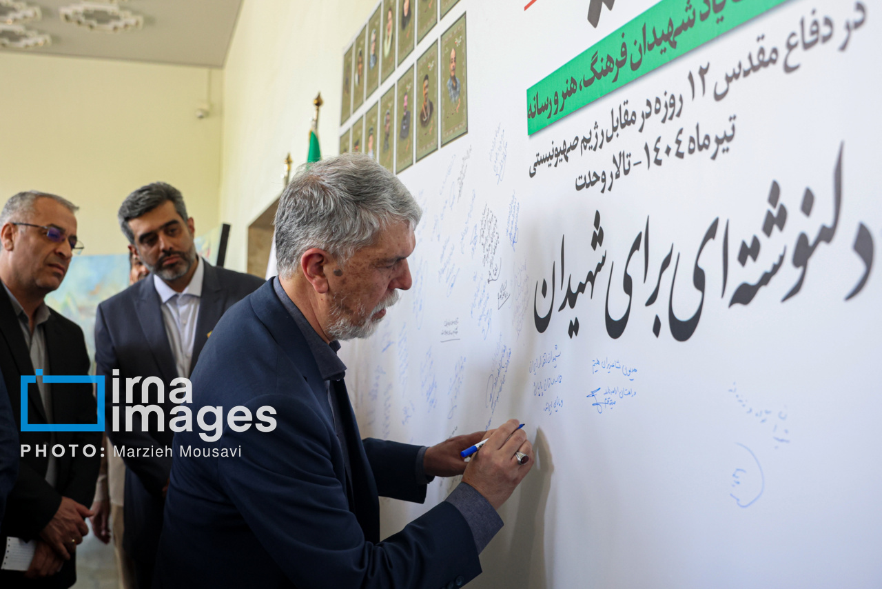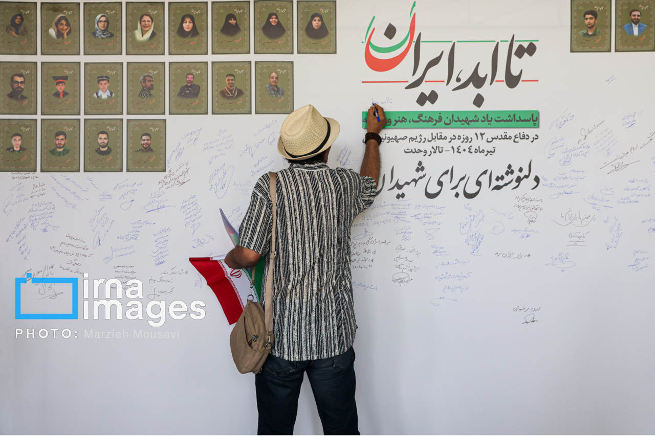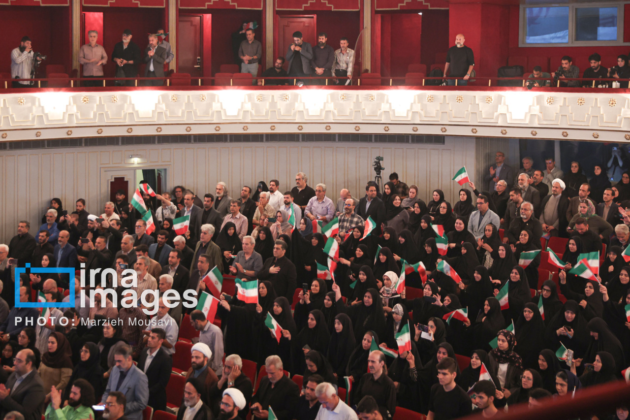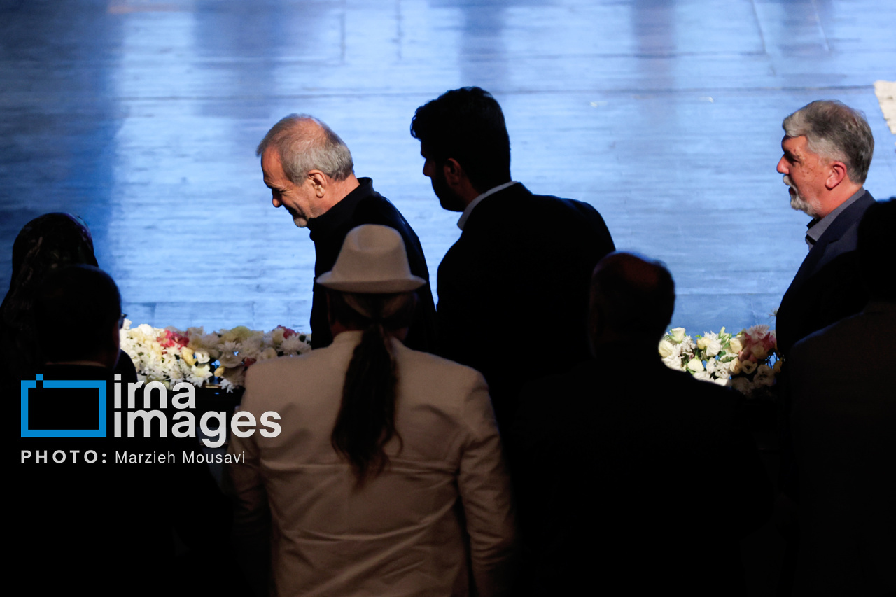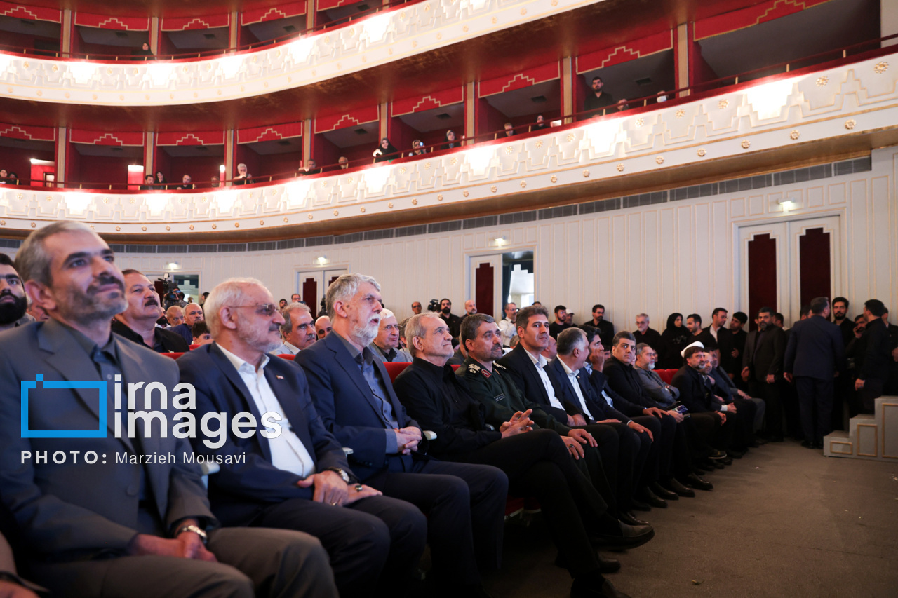 مراسم پاسداشت یاد شهیدان فرهنگ، هنر و رسانه در دفاع مقدس ۱۲ روزه مقابل رژیم صهیونیستی با عنوان «تا ابد، ایران»، سه شنبه (۳۱ تیر ۱۴۰۴) با حضور «مسعود پزشکیان» رئیس جمهور، «سیدعباس صالحی» وزیر فرهنگ و ارشاد اسلامی در تالار وحدت تهران برگزار شد. منبع: ایرنا