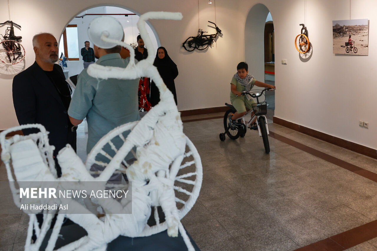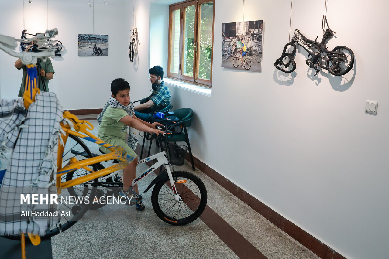 نمایشگاه دوچرخه و کودکان غزه بعد از ظهر سه شنبه ۱۴ مرداد ماه ۱۴۰۴ در موزه هنرهای معاصر فلسطین افتتاح شد. |منبع: مهر