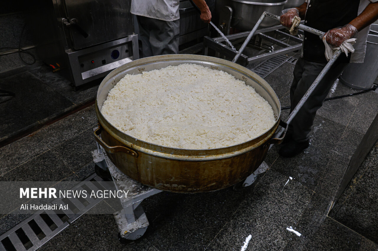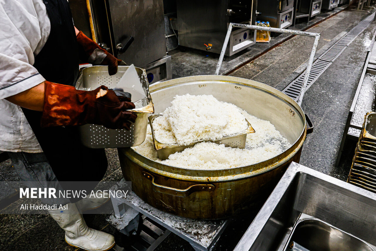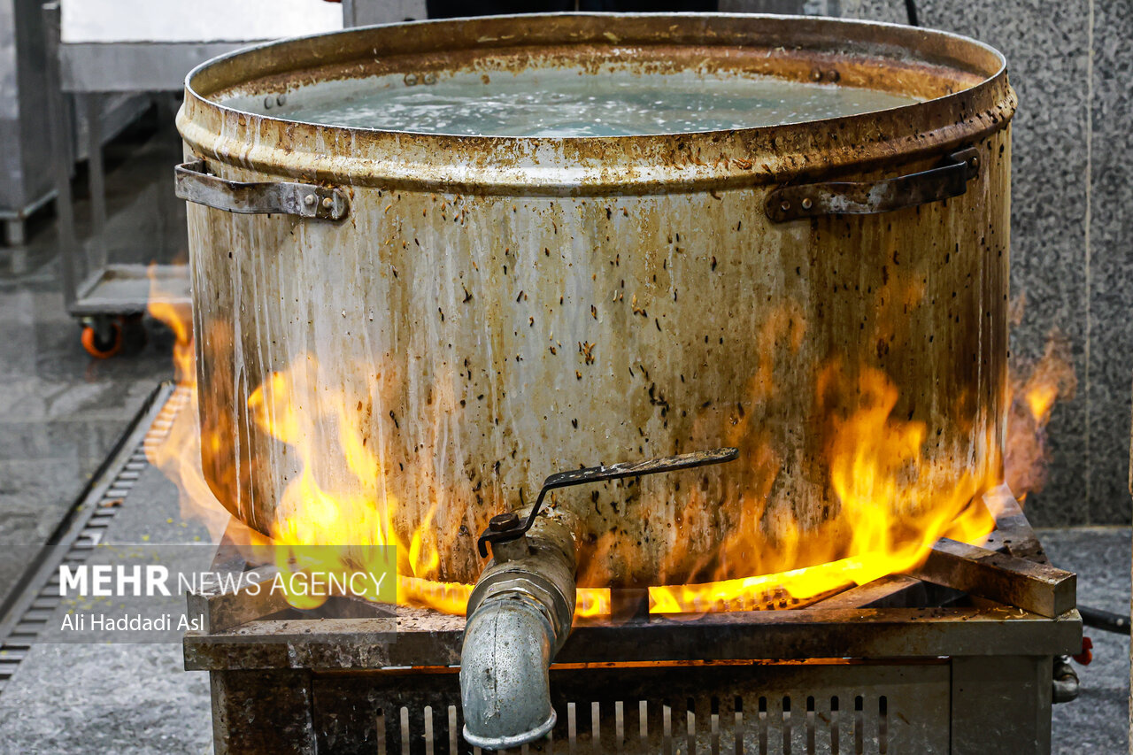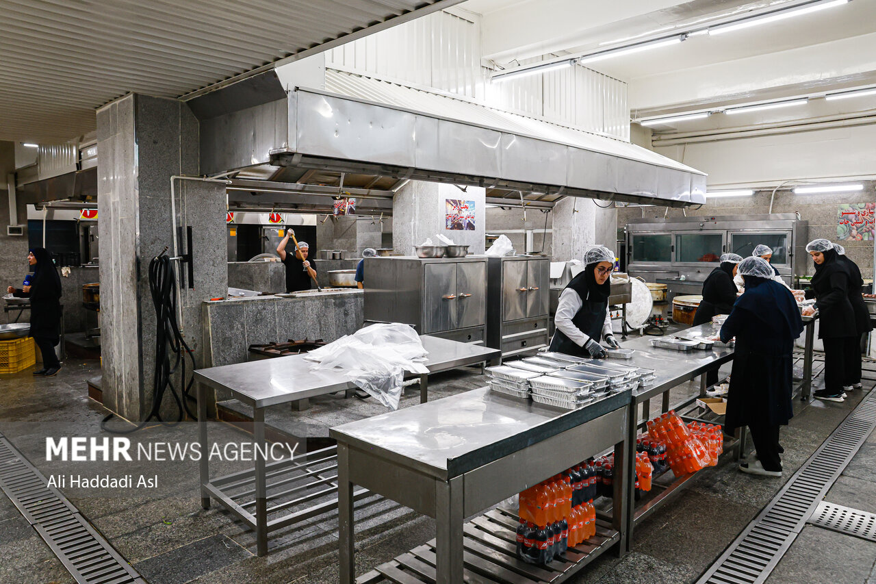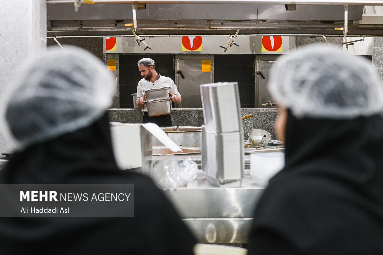 آشپزخانه مرکزی طبخ غذای جنگ زدگان جنگ با رژیم صهیونی با پخت روزی پنج هزار پُرس غذا روزانه پذیرای جنگ زدگان، جنگ دوازده روزه با رژیم صهیونیستی است. |منبع: مهر