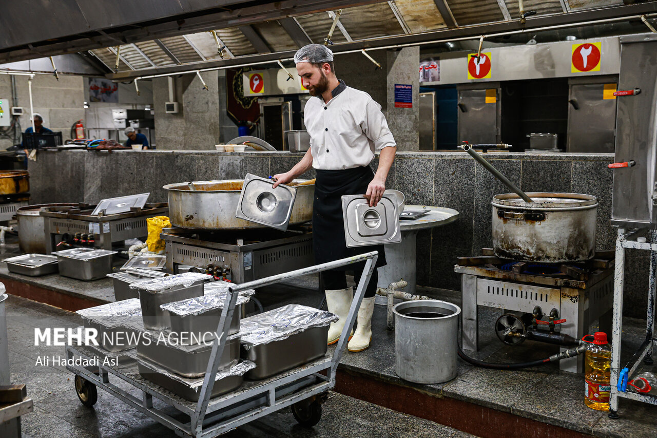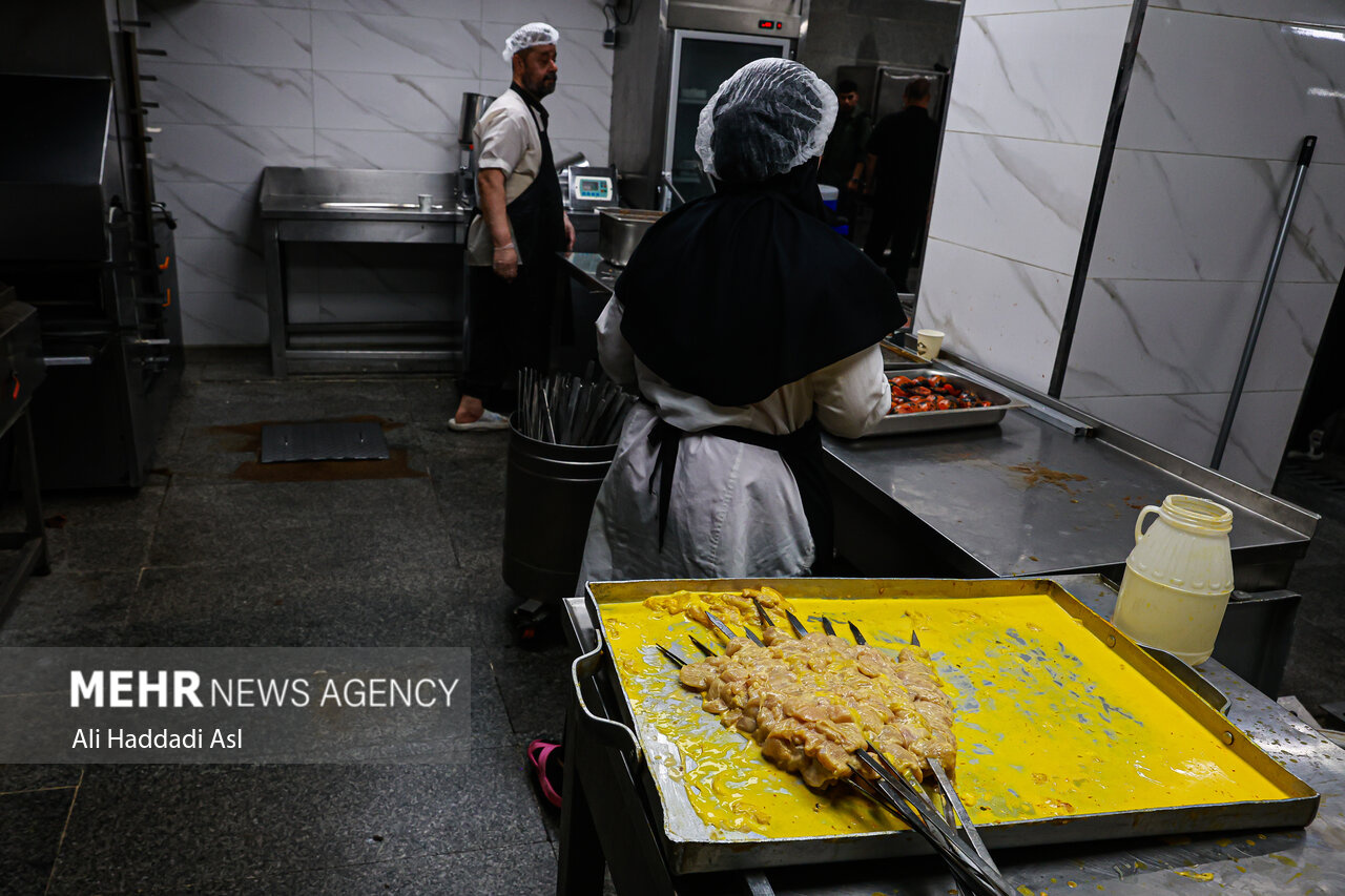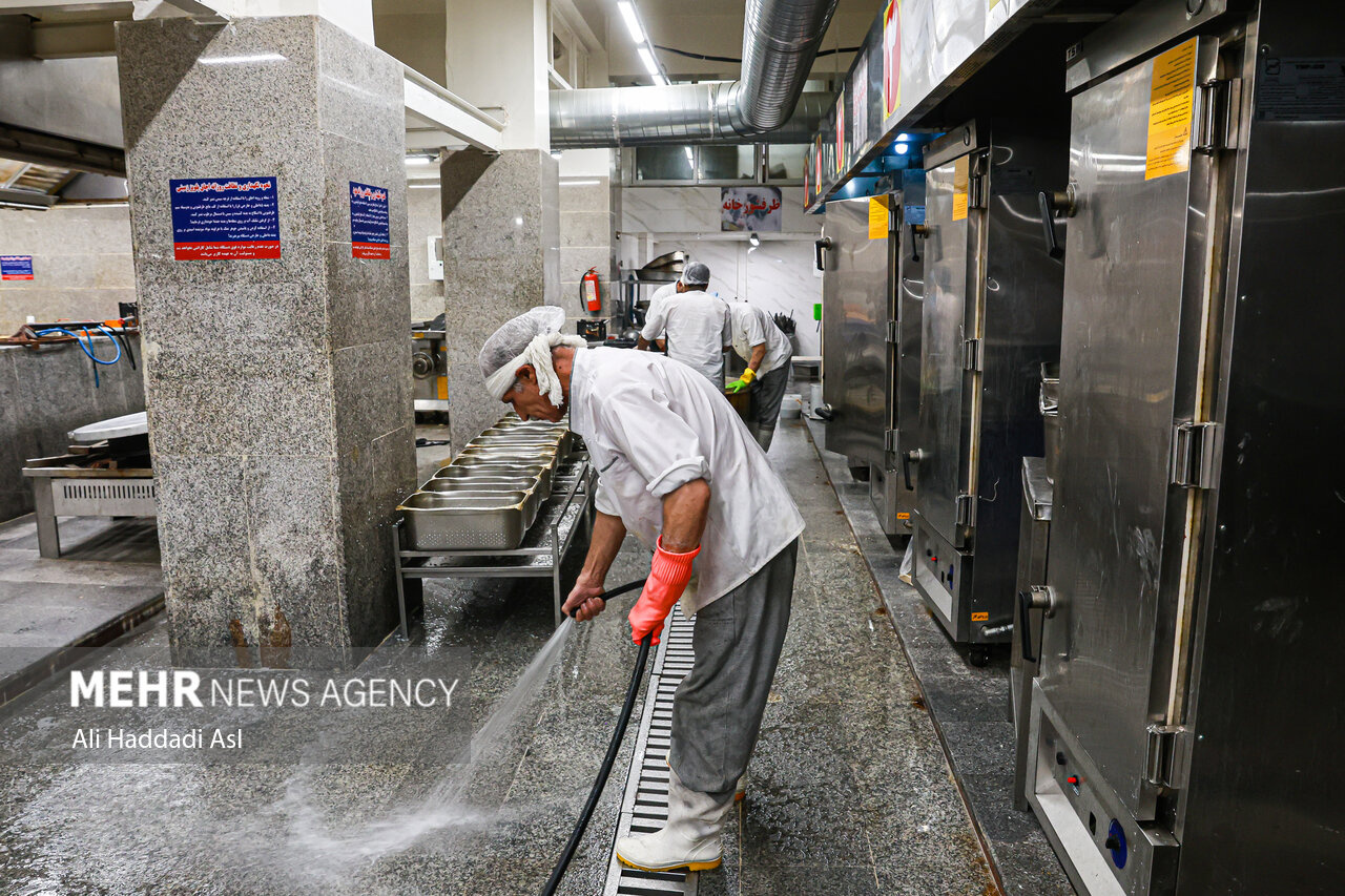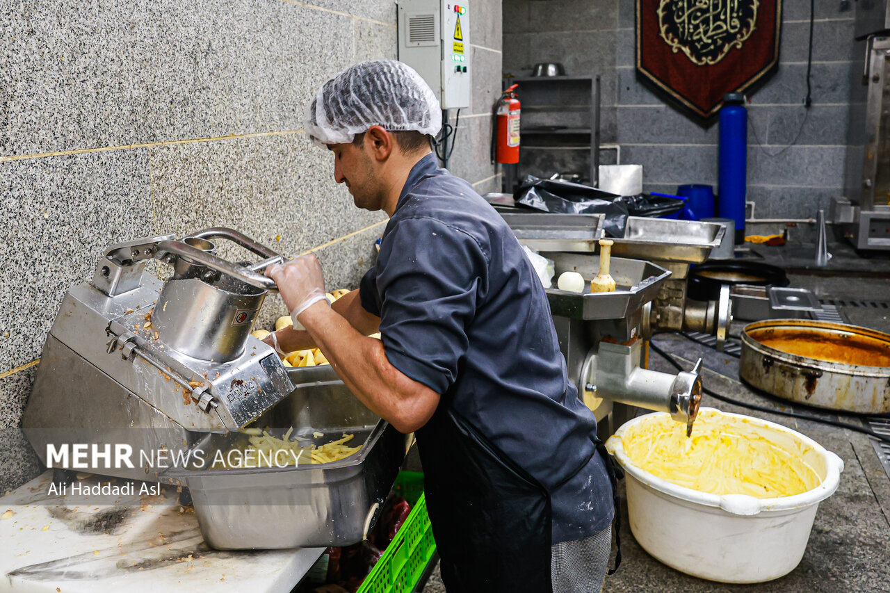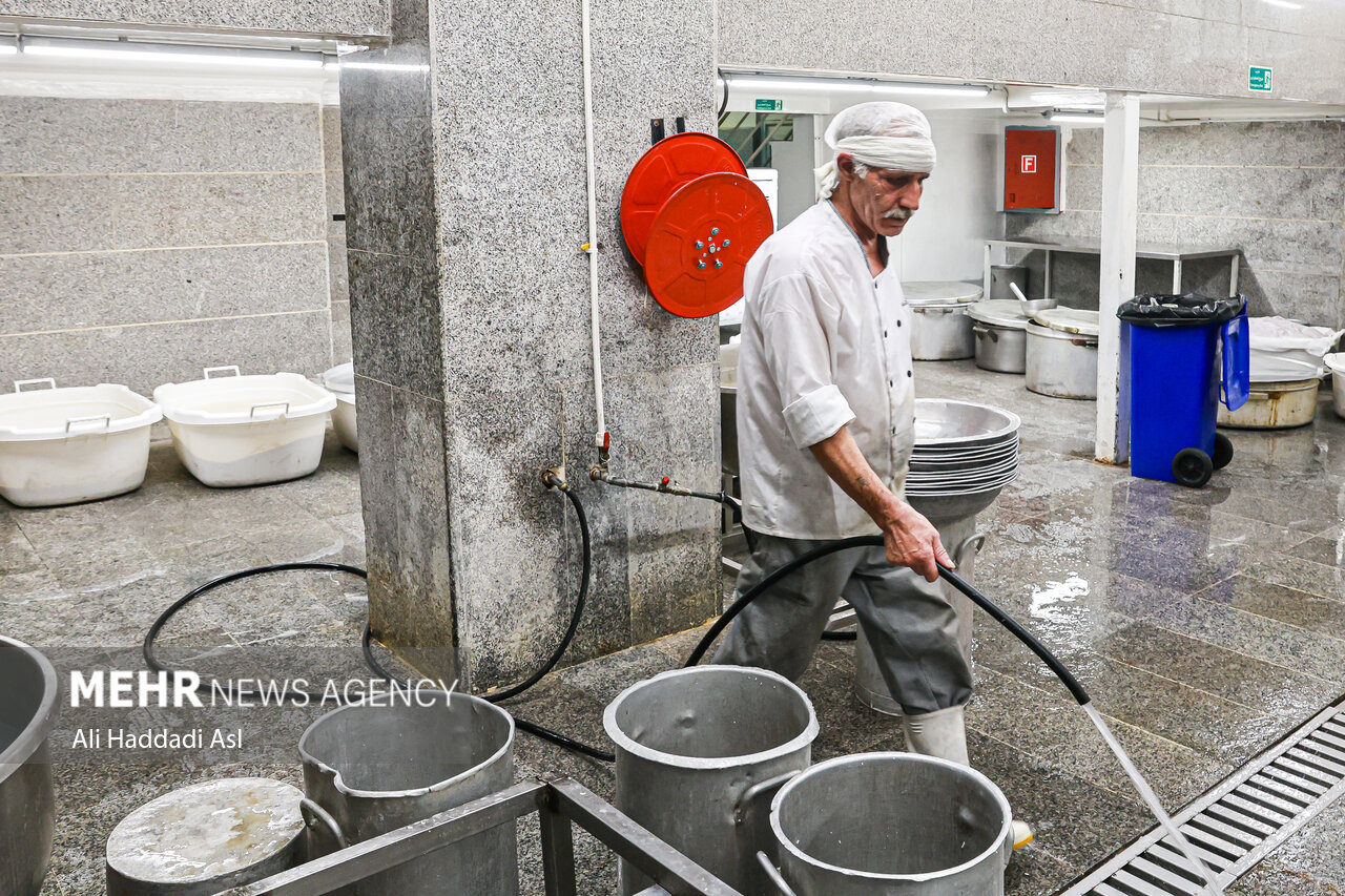 آشپزخانه مرکزی طبخ غذای جنگ زدگان جنگ با رژیم صهیونی با پخت روزی پنج هزار پُرس غذا روزانه پذیرای جنگ زدگان، جنگ دوازده روزه با رژیم صهیونیستی است. |منبع: مهر