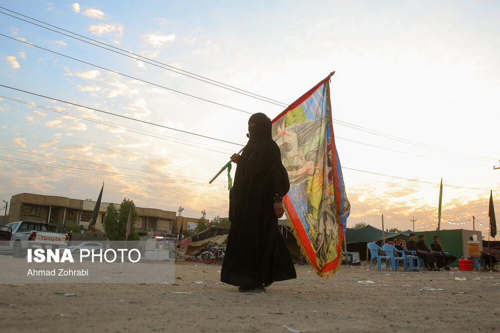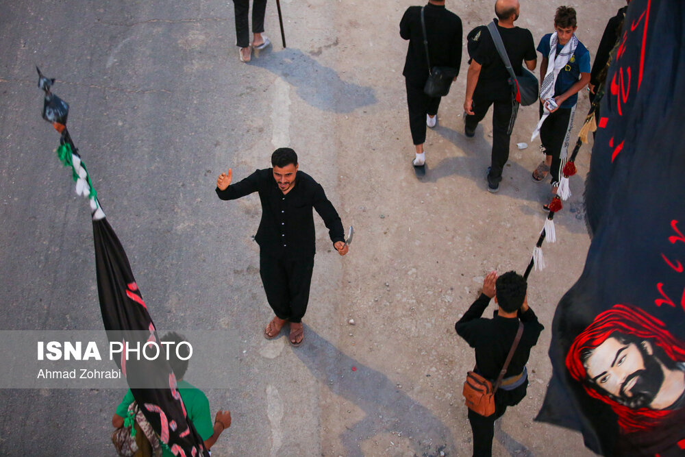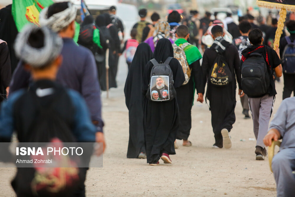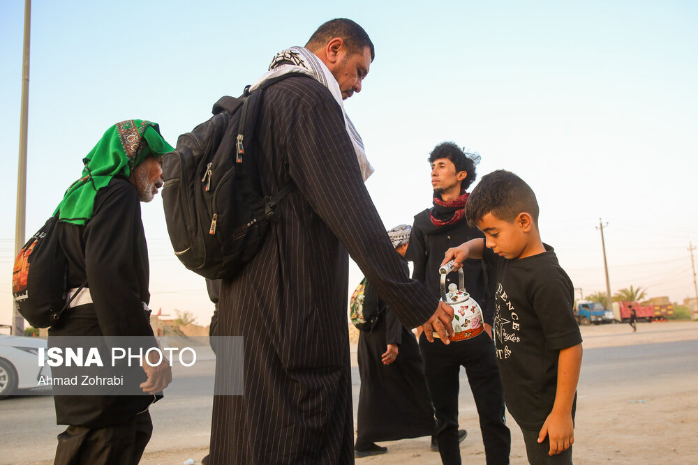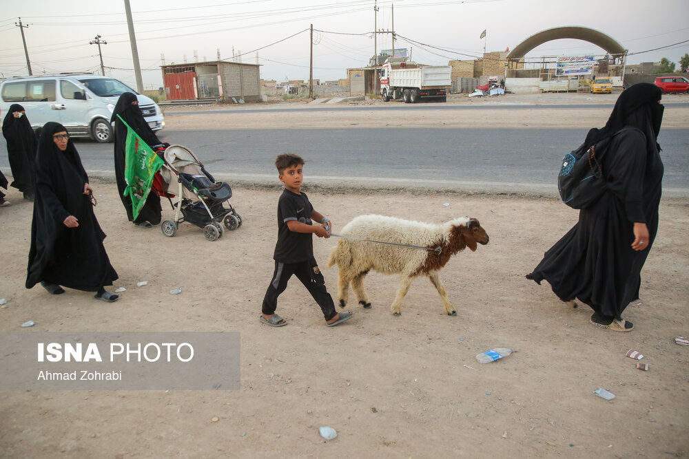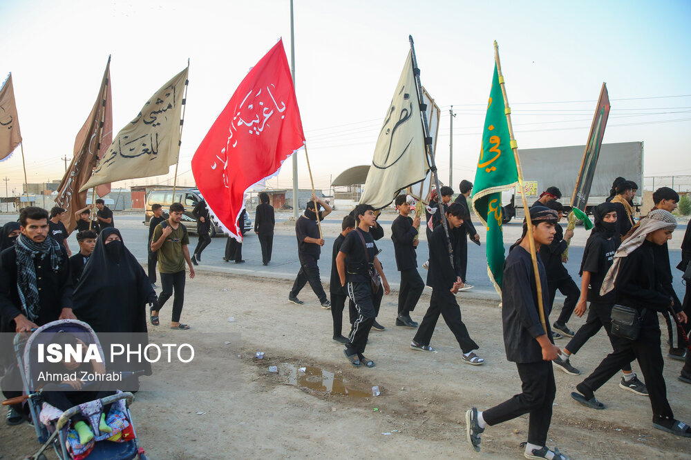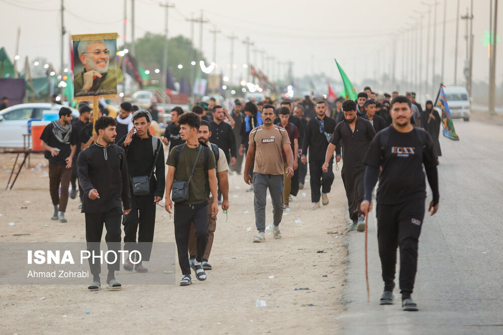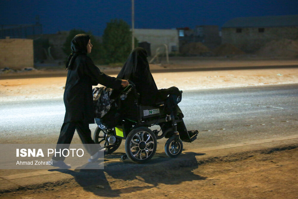 زائران در منطقه شافعیه عراق پس از اقامه نماز صبح حرکت خود را آغاز کرده و به سمت نجف اشرف حرکت میکنند. گرمای در حدود ۵۰ درجهای این روزهای عراق موجب حرکت سحرگاهی زوار اربعین حسینی در کشور عراق شده است.