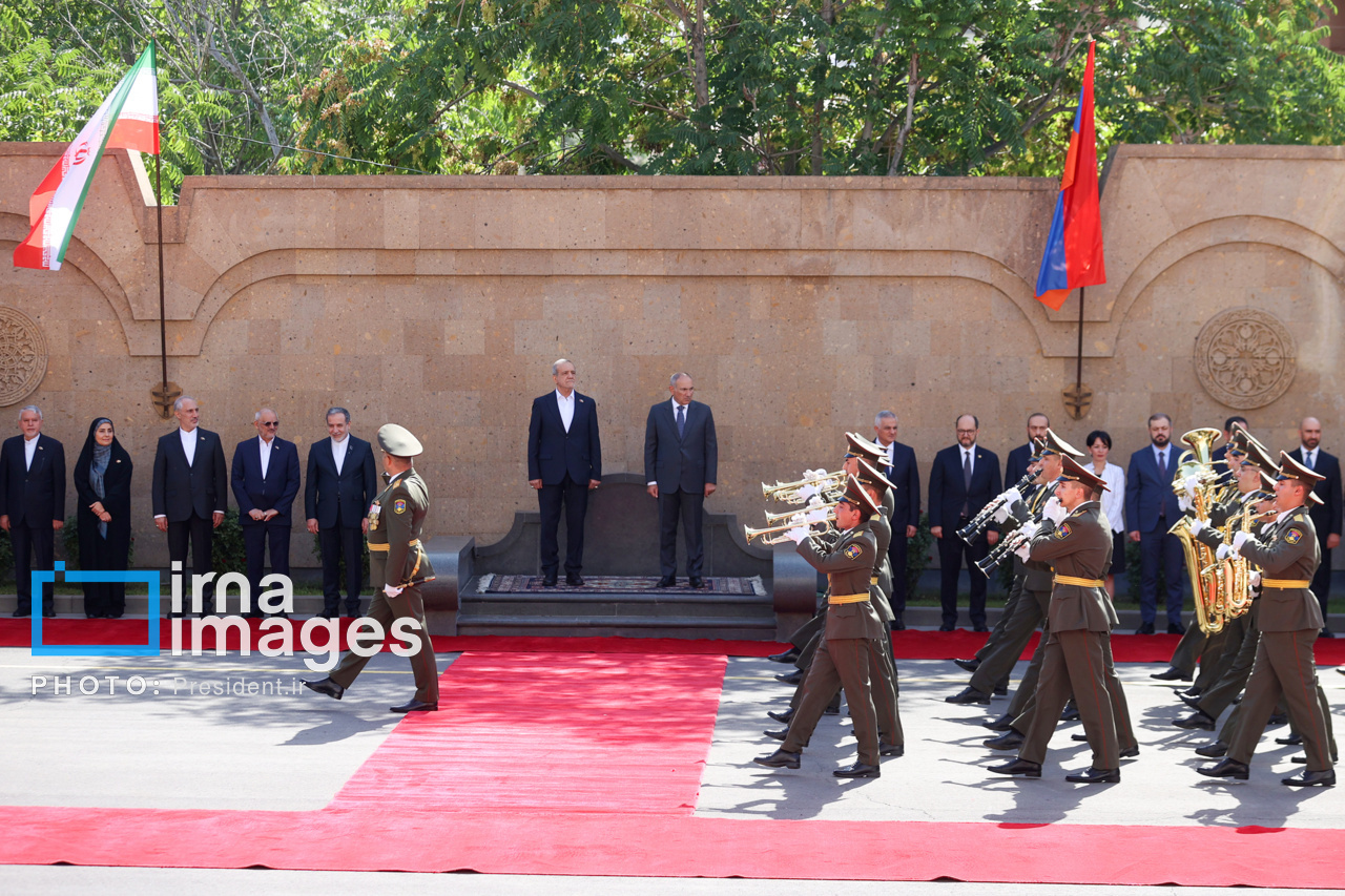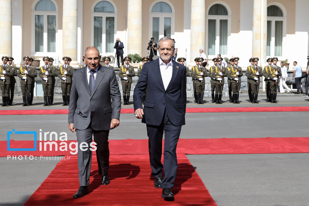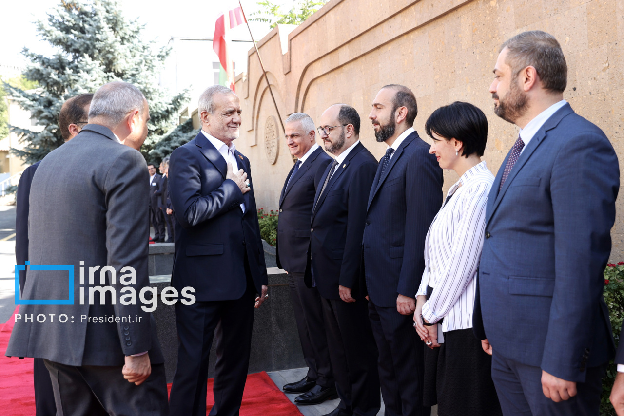 «مسعود پزشکیان» رئیسجمهور به دعوت رسمی «نیکول پاشینیان» نخست وزیر ارمنستان و به منظور سفر رسمی دوجانبه، دوشنبه (۲۷ مرداد ۱۴۰۴) با استقبال معاونین نخست وزیر و وزیر امور خارجه این کشور، وارد ایروان شد. نشست با ایرانشناسان ارمنی، دیدار با ایرانیان مقیم ارمنستان، بازدید از مسجد کبود ایروان از برنامه روز اول سفر رئیسجمهور به ارمنستان بود.«مسعود پزشکیان» رئیسجمهور، سه شنبه (۲۸ مرداد ۱۴۰۴) ابتدا توسط «نیکول پاشینیان» نخست وزیر ارمنستان مورد استقبال رسمی قرار گرفت. مذاکرات خصوصی و دوجانبه رئیسجمهور با نخست وزیر ارمنستان، نشست مشترک هیأتهای عالیرتبه ایران و ارمنستان، امضای بیانیه مشترک و اسناد همکاری، نشست مطبوعاتی مشترک رئیس جمهور با نخست وزیر ارمنستان، نشست مشترک فعالان اقتصادی ایران و ارمنستان و دیدار با رئیس جمهور این کشور از دیگر برنامههای روز دوم سفر رئیس جمهور به ارمنستان بود.منبع: ایرنا