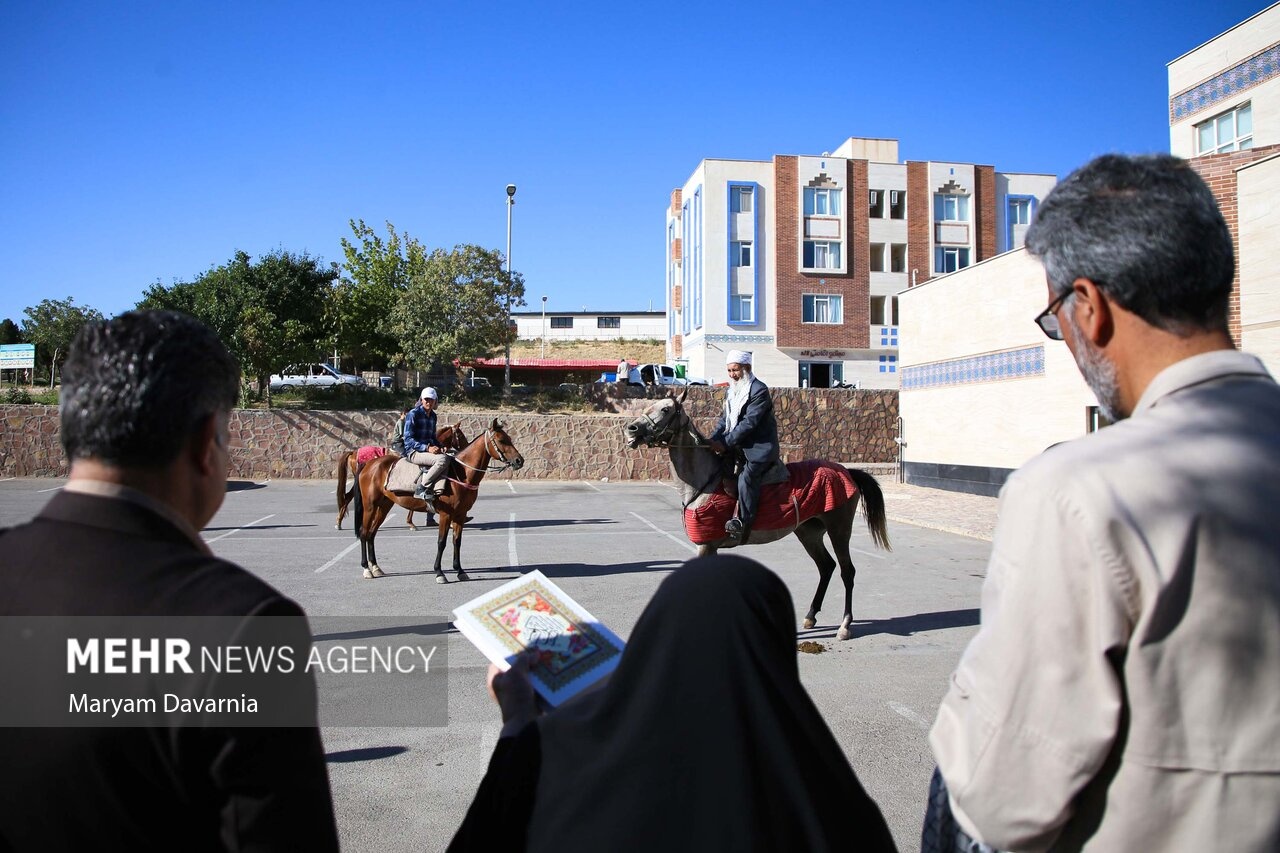 کاروان «حرم تا حرم» متشکل از ۳۵ سوارکار خراسان شمالی به همراه ۱۲ رأس اسب، صبح چهارشنبه (۲۹ مرداد ۱۴۰۴) با همت بسیج ورزشکاران از بجنورد حرکت خود را آغاز کردند تا پس از پیمودن مسیر ۲۶۰ کیلومتری، در سالروز شهادت امام رضا (ع) خود را به مشهد مقدس رسانده و در آئینهای عزاداری و زیارت بارگاه منور رضوی حضور یابند.| منبع: مهر