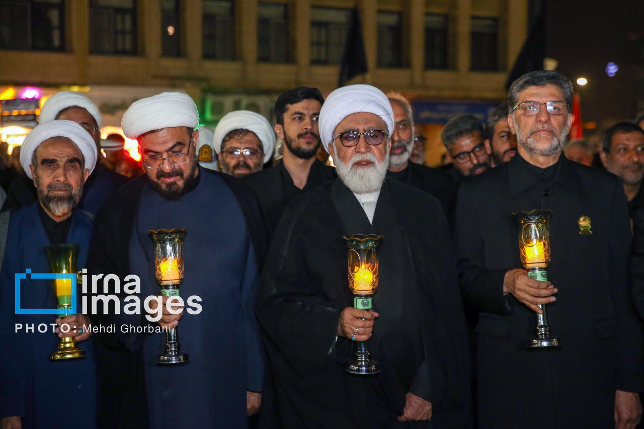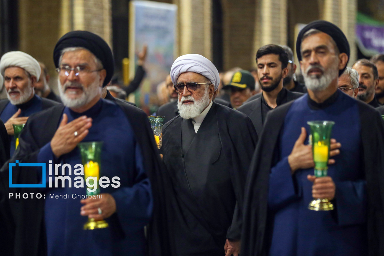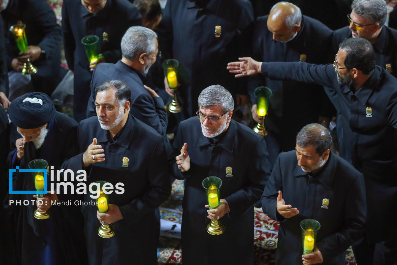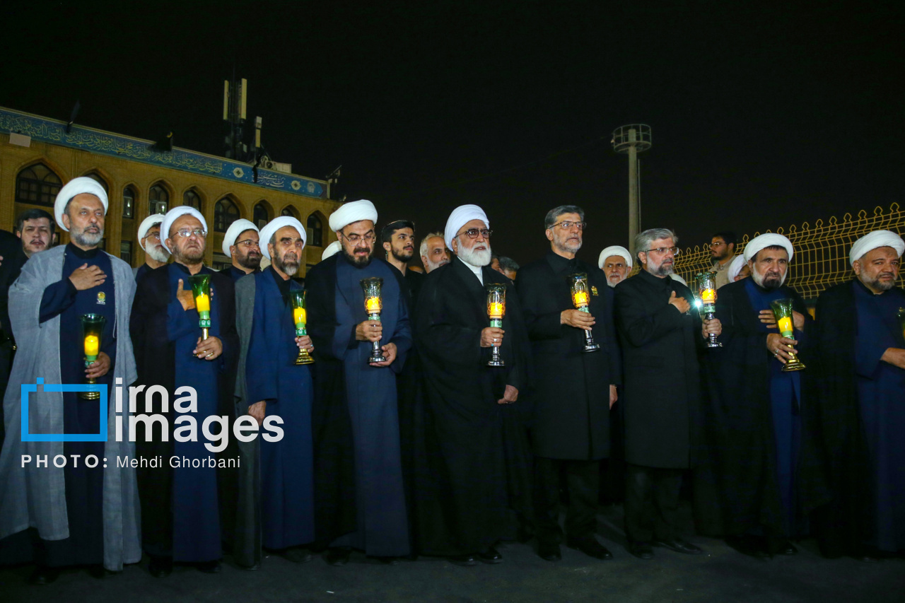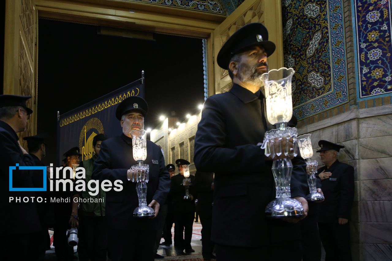 مراسم شام غریبان شهادت امام رضا علیه السلام، شامگاه یکشنبه (۲ شهریور ۱۴۰۴) با حضور آیت الله «احمد مروی» تولیت آستان قدس رضوی و خادمان بارگاه منور امام هشتم در حرم مطهر رضوی برگزار شد.در این مراسم تولیت آستان قدس رضوی به همراه خادمان بارگاه منور حضرت امام رضا علیه السلام پس از نماز مغرب و عشا در حالی که لالههای شمع در دست داشتند، از ورودی شیخ حرعاملی وارد حرم مطهر رضوی شده و آیین سنتی شام غریبان را در صحن انقلاب با مرثیه سرایی شاعران و ذاکران اهل بیت علیه السلام برگزار کردند. منبع: ایرنا