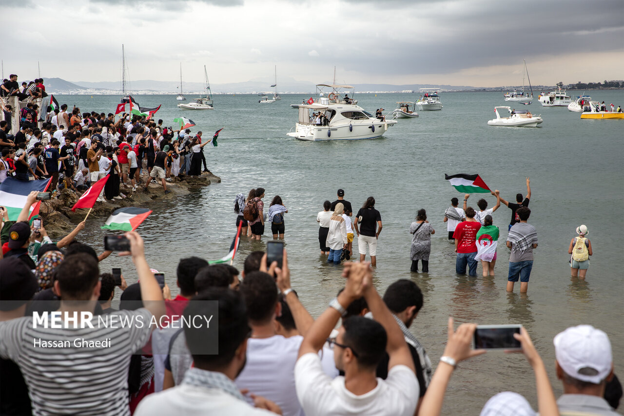 ناوگان امدادی «صمود» پیامِ امید و استقامت در راه فلسطین از کشورهای مختلف راهی تونس شده است تا بهصورت جمعی و متمرکز به سمت فلسطین حرکت کند، و این سفر نماد وجدانهای بیدار، امید و ارادهی مقاومتی بیوقفه در دفاع از حقوق ملت فلسطین است.|منبع: مهر