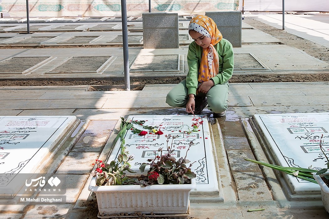 خانوادههای دانشآموزان و کودکان شهید جنگ ۱۲روزه با حضور در کنار مزار آنها در آغاز سال تحصیلی یادشان را گرامی داشتند. منبع: فارس