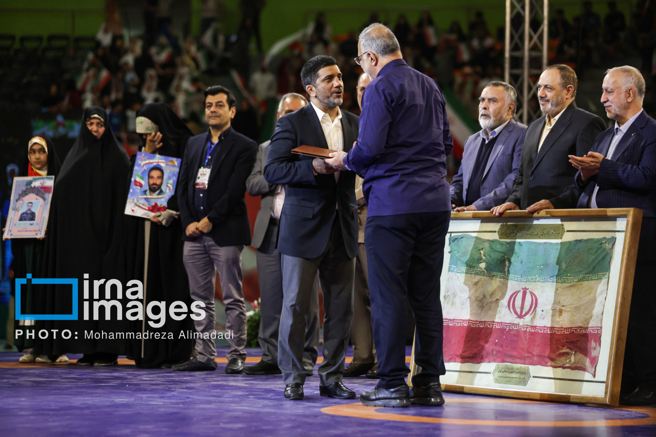 مراسم جشن ملی کشتی، شامگاه سه شنبه (۱ مهر ۱۴۰۴) با حضور قهرمانان تیم ملی آزاد و فرنگی در رقابتهای جهانی زاگرب، مسئولان و علاقمندان این رشته در سال ۱۲ هزار نفری مجموعه ورزشی آزادی برگزار شد. منبع: ایرنا