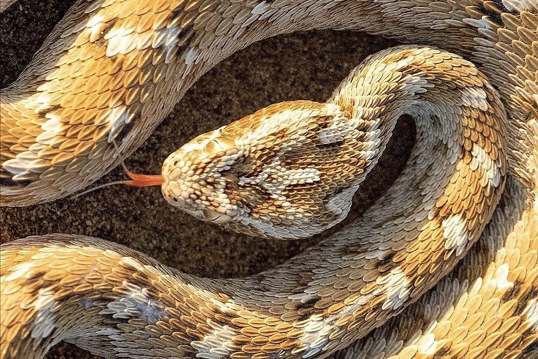 افعی جعفری، گونهای از تیره گرزهماران است که با علامت پیکانی یا صلیبیشکل روی سرش تشخیص داده و در شنزارهای ایران یافت میشود. این مارها از نظر اندازه نسبتاً کوچک هستند و پولکهای دندانهدار مار جعفری زیبایی خاصی به آنها بخشیده است. منبع: فارس