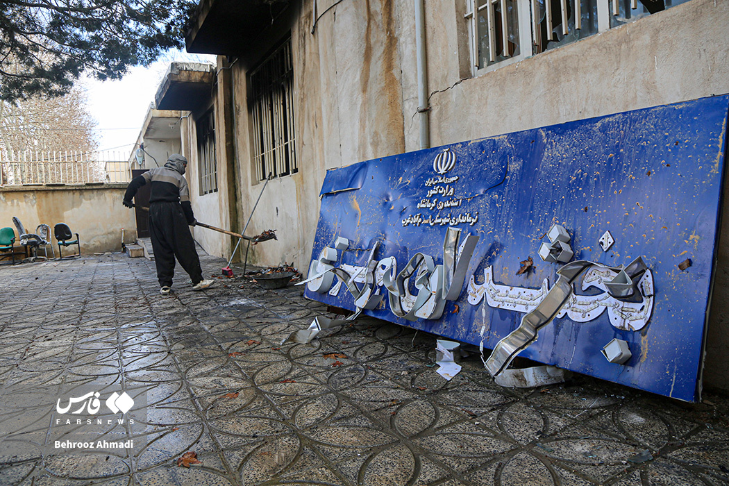 اغتشاشگران تروریست با تخریب اموال عمومی و دولتی و ایجاد ناامنی در شهرهای کرمانشاه و اسلامآباد غرب از اعتراضات صنفی فرصتطلبی کردند.عکاس: بهروز احمدی منبع: فارس