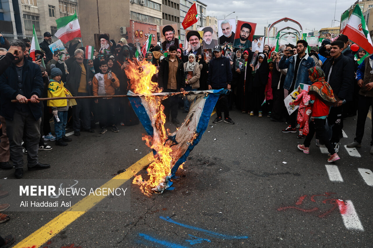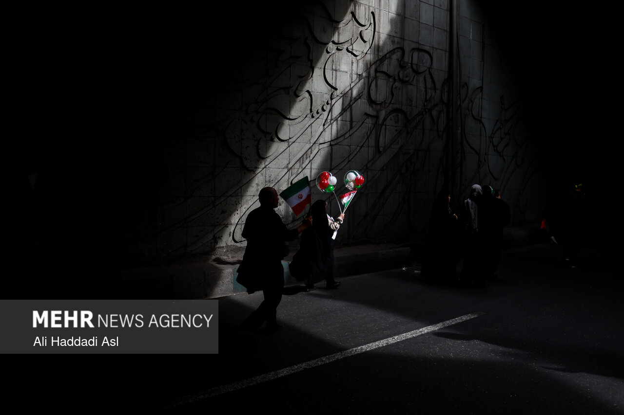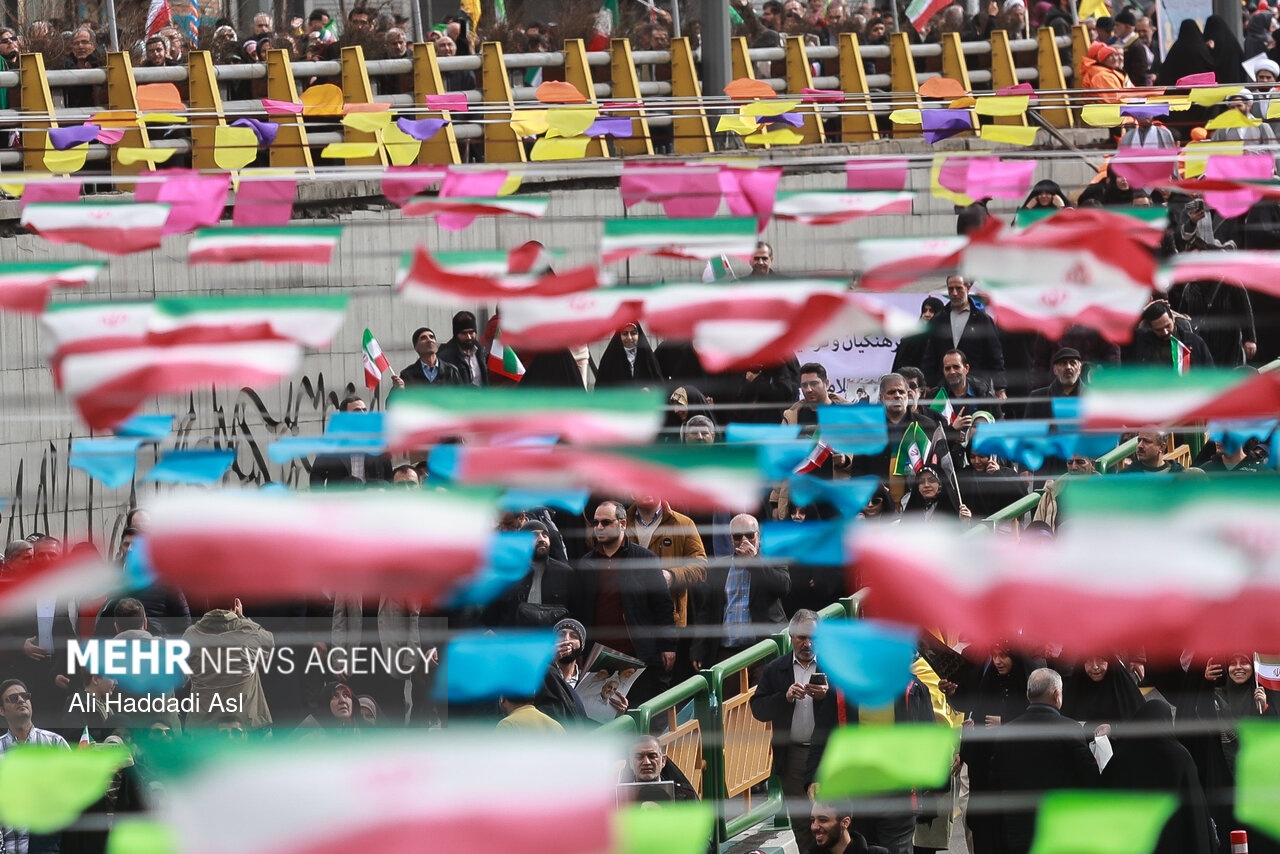 همزمان با روز ملی گرامیداشت پیروزی انقلاب اسلامی، راهپیمایی باشکوه مردم در پایتخت و بیش از ۱۴۰۰ نقطه در سراسر کشور برگزار شد.|منبع: مهر