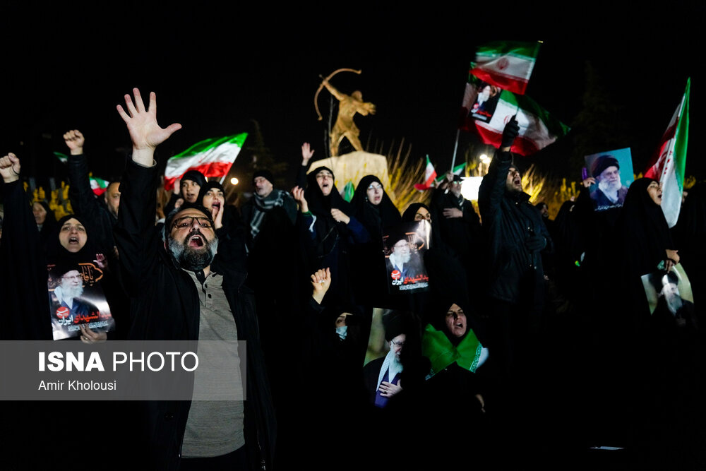 شامگاه ۱۵ اسفند ۱۴۰۴، در پی حمله تجاوزکارانه رژیم صهیونیستی و آمریکا به خاک کشورمان و تائید شهادت مقام معظم رهبری، مردم تهران همزمان با دیگر نقاط کشورمان با حضور در خیابانها و میادین اصلی شهر به عزاداری پرداختند.