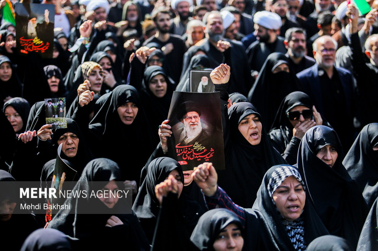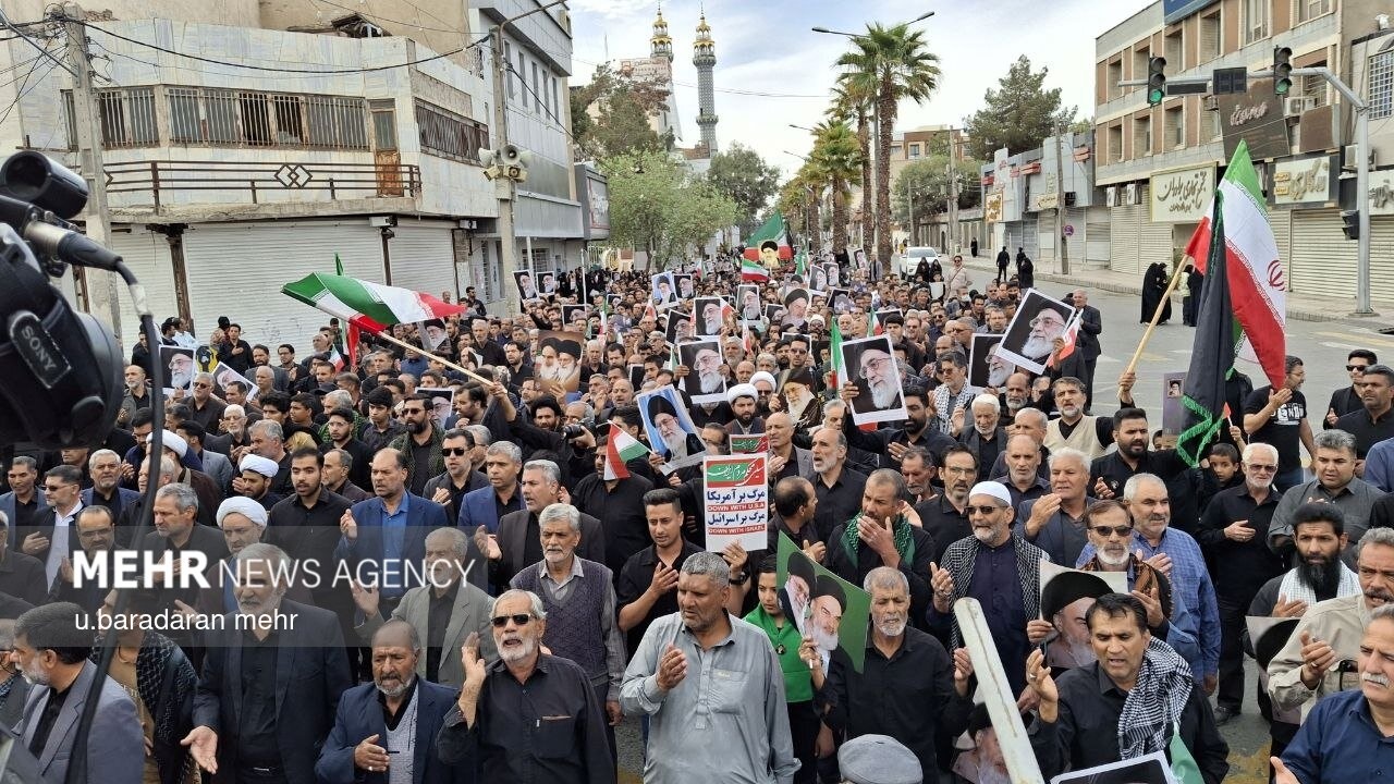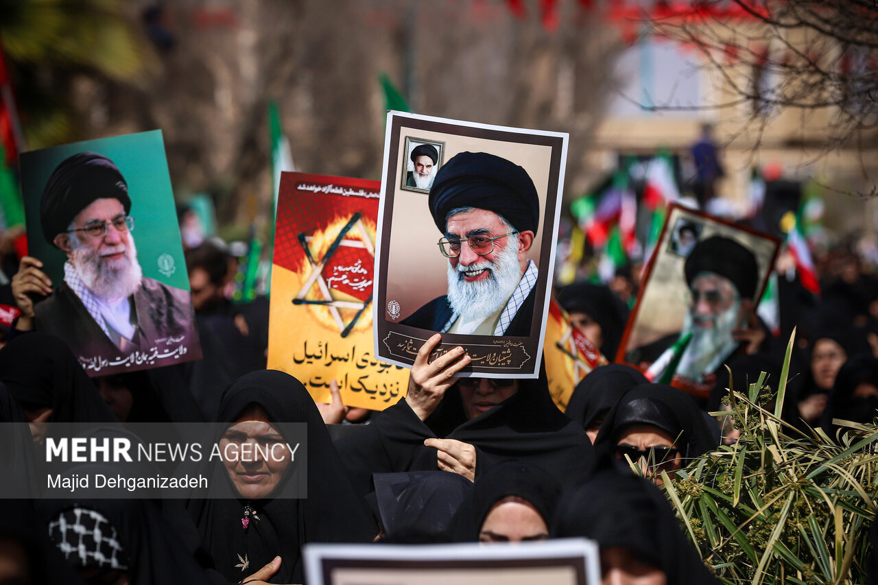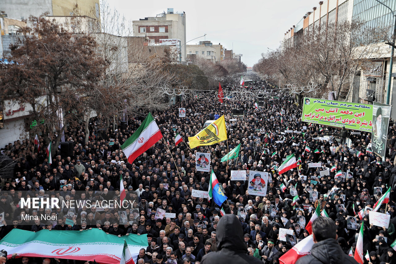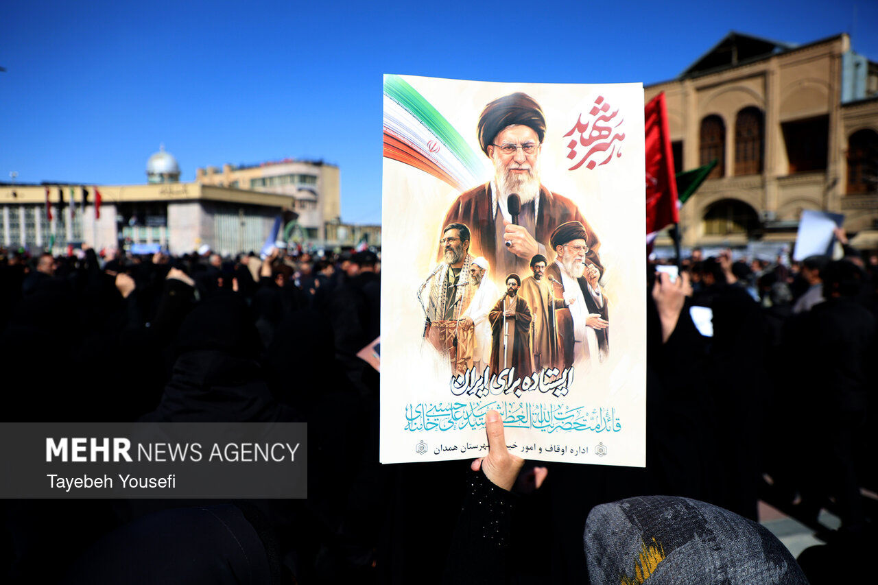 همزمان در سراسر کشور، مردم ایران پس از اقامه نماز جمعه با حضور در خیابانها ضمن اعلام خونخواهی در پی شهادت رهبر انقلاب، با برگزاری راهپیمایی سراسری اقدامات آمریکایی ـ صهیونیستی را محکوم کردند.|منبع: مهر