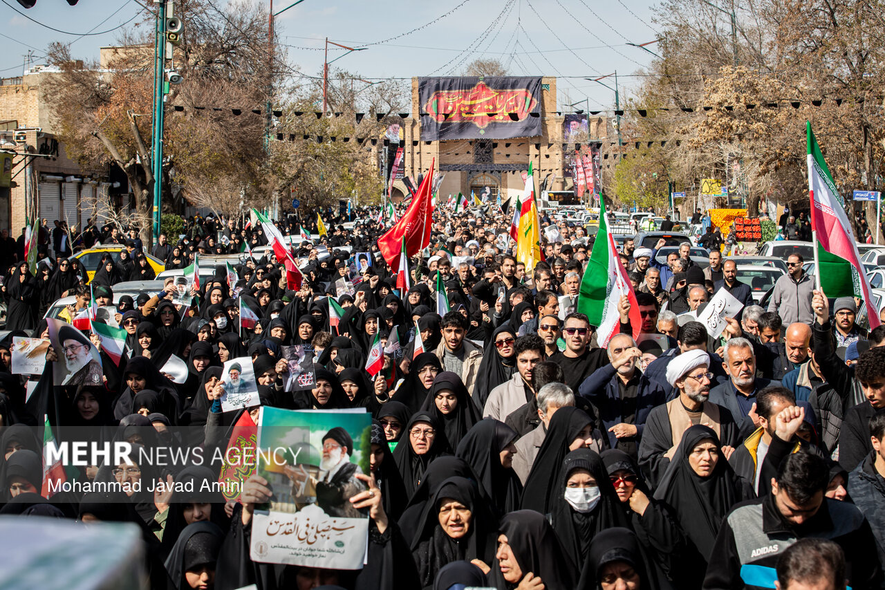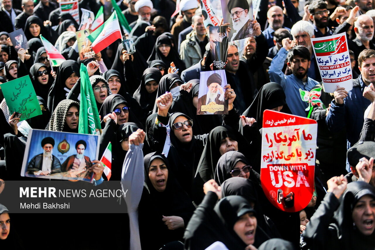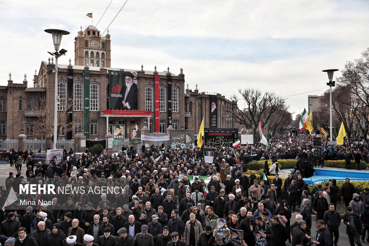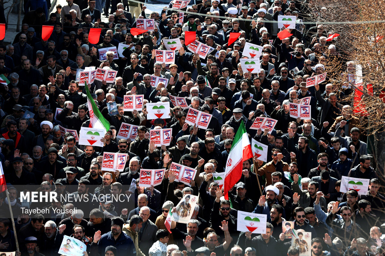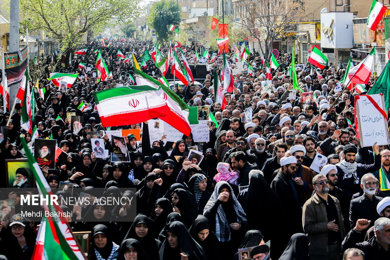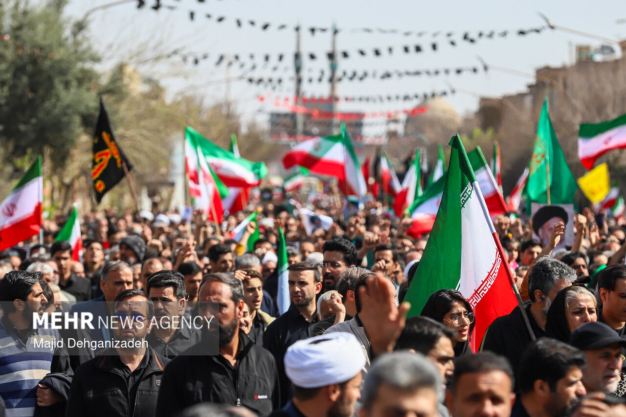 همزمان در سراسر کشور، مردم ایران پس از اقامه نماز جمعه با حضور در خیابانها ضمن اعلام خونخواهی در پی شهادت رهبر انقلاب، با برگزاری راهپیمایی سراسری اقدامات آمریکایی ـ صهیونیستی را محکوم کردند.|منبع: مهر