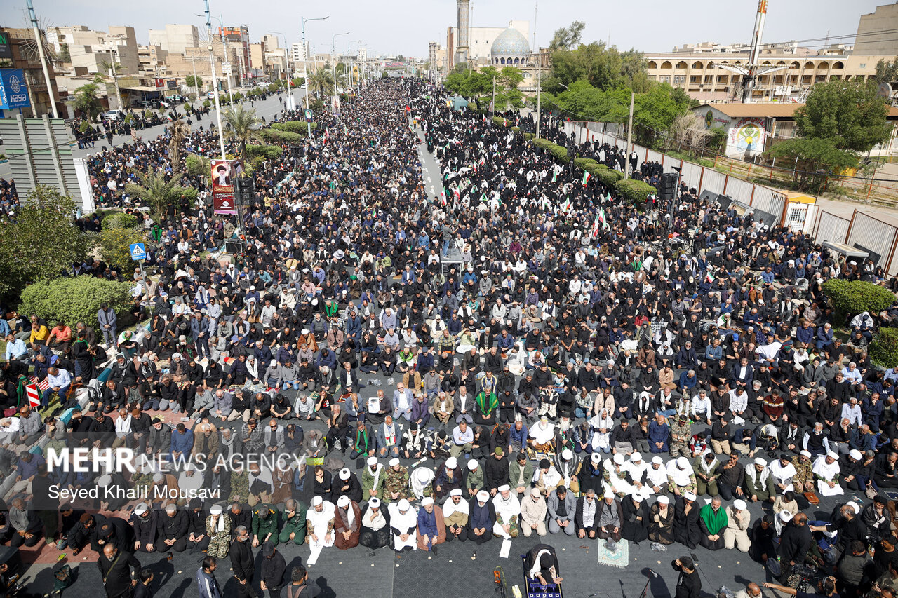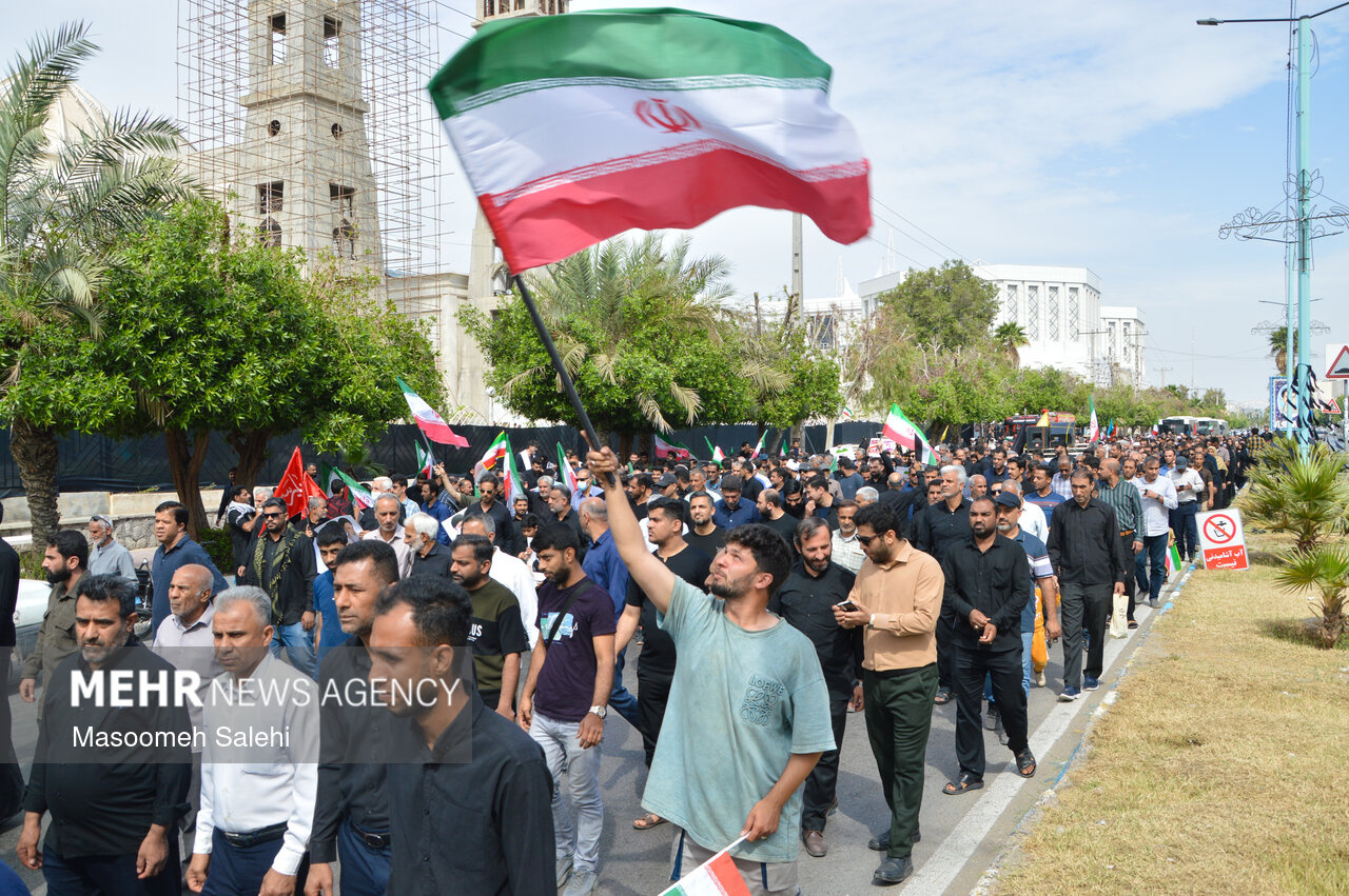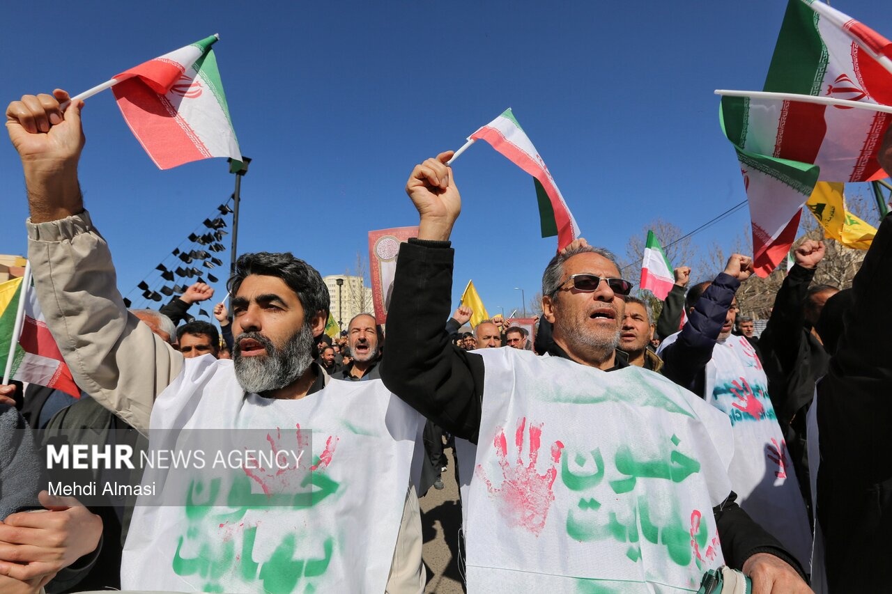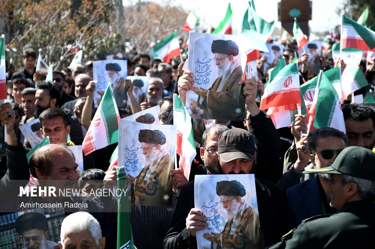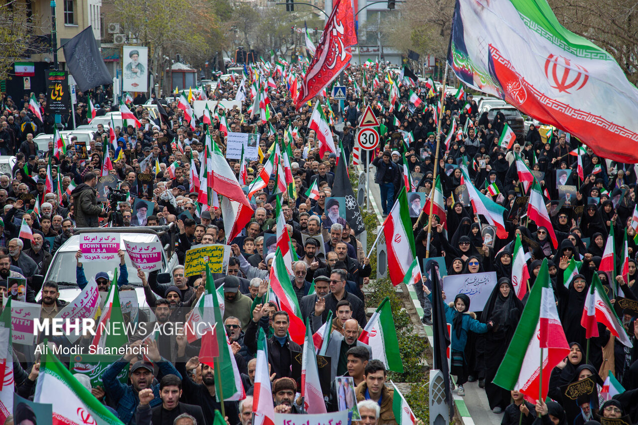 همزمان در سراسر کشور، مردم ایران پس از اقامه نماز جمعه با حضور در خیابانها ضمن اعلام خونخواهی در پی شهادت رهبر انقلاب، با برگزاری راهپیمایی سراسری اقدامات آمریکایی ـ صهیونیستی را محکوم کردند.|منبع: مهر