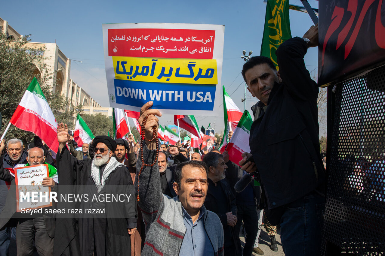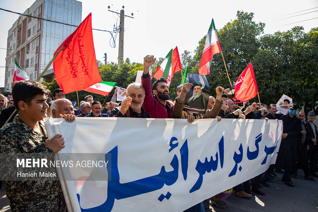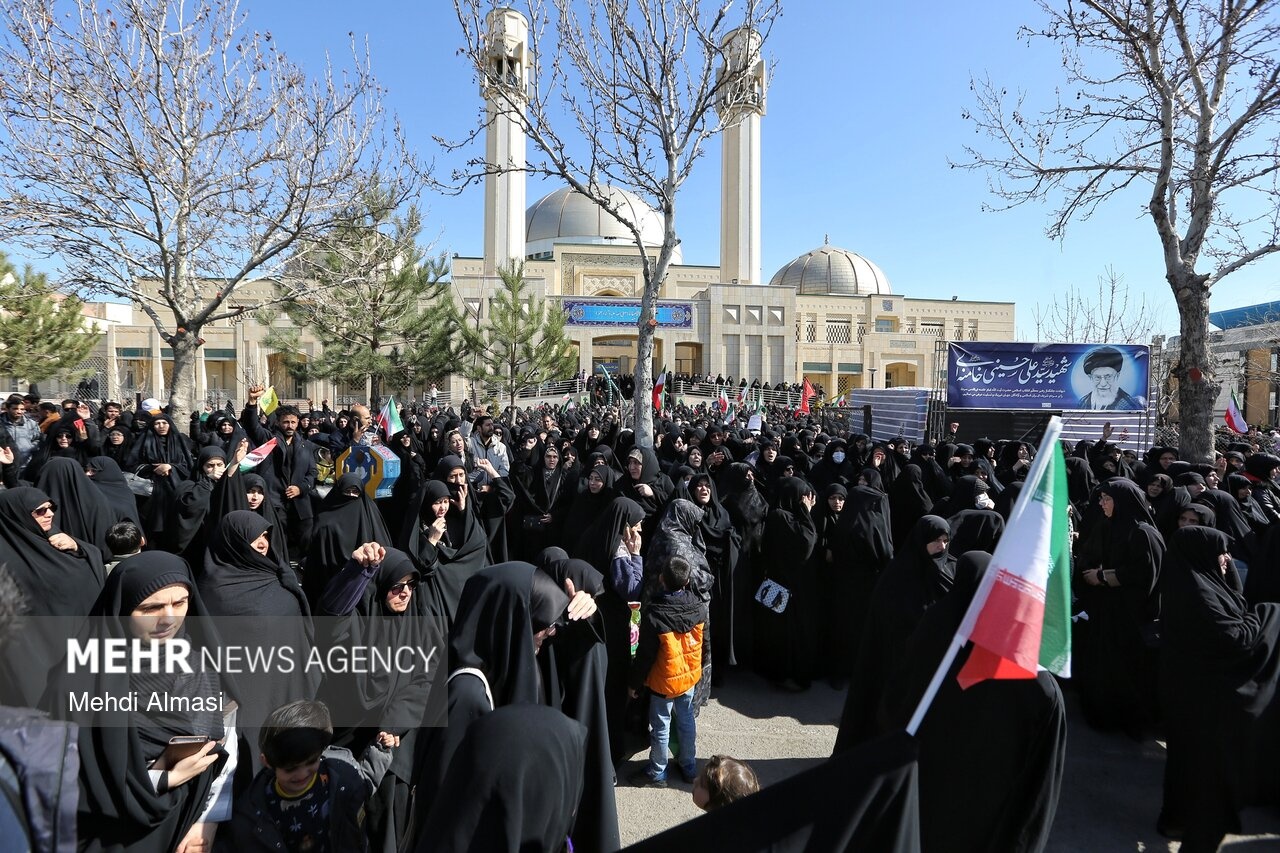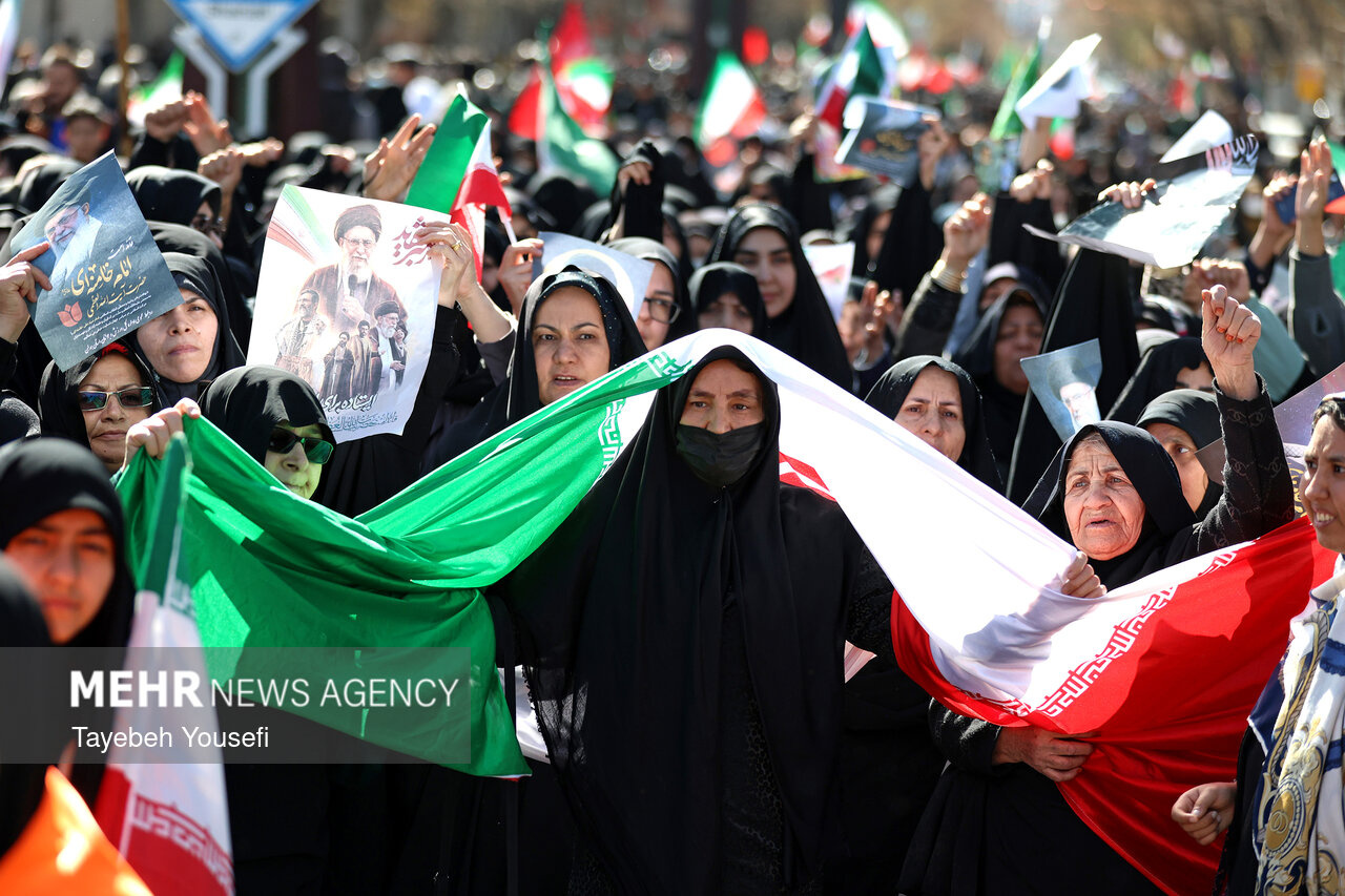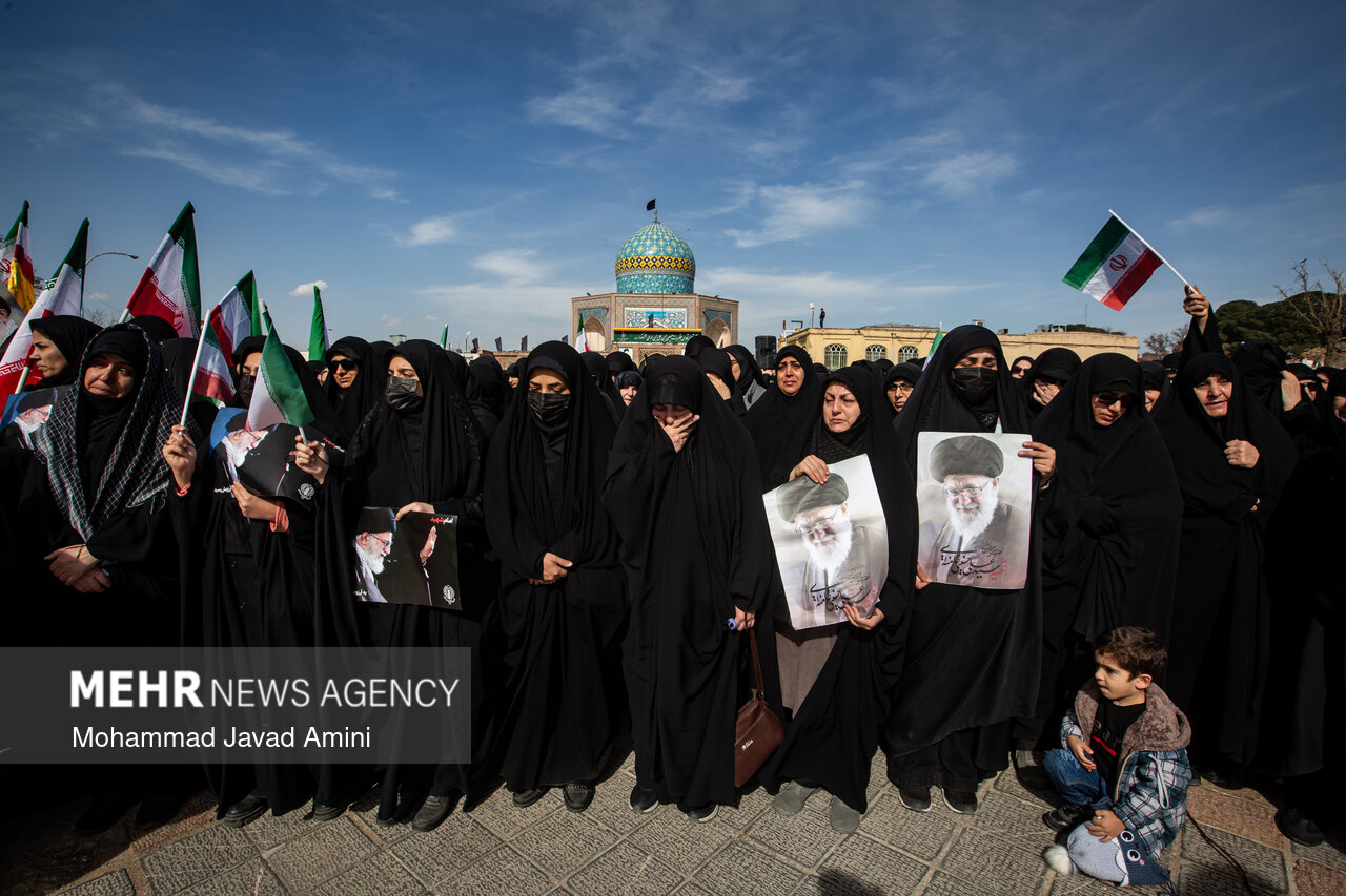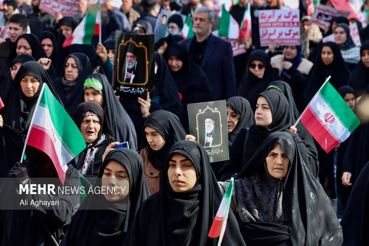 همزمان در سراسر کشور، مردم ایران پس از اقامه نماز جمعه با حضور در خیابانها ضمن اعلام خونخواهی در پی شهادت رهبر انقلاب، با برگزاری راهپیمایی سراسری اقدامات آمریکایی ـ صهیونیستی را محکوم کردند.|منبع: مهر