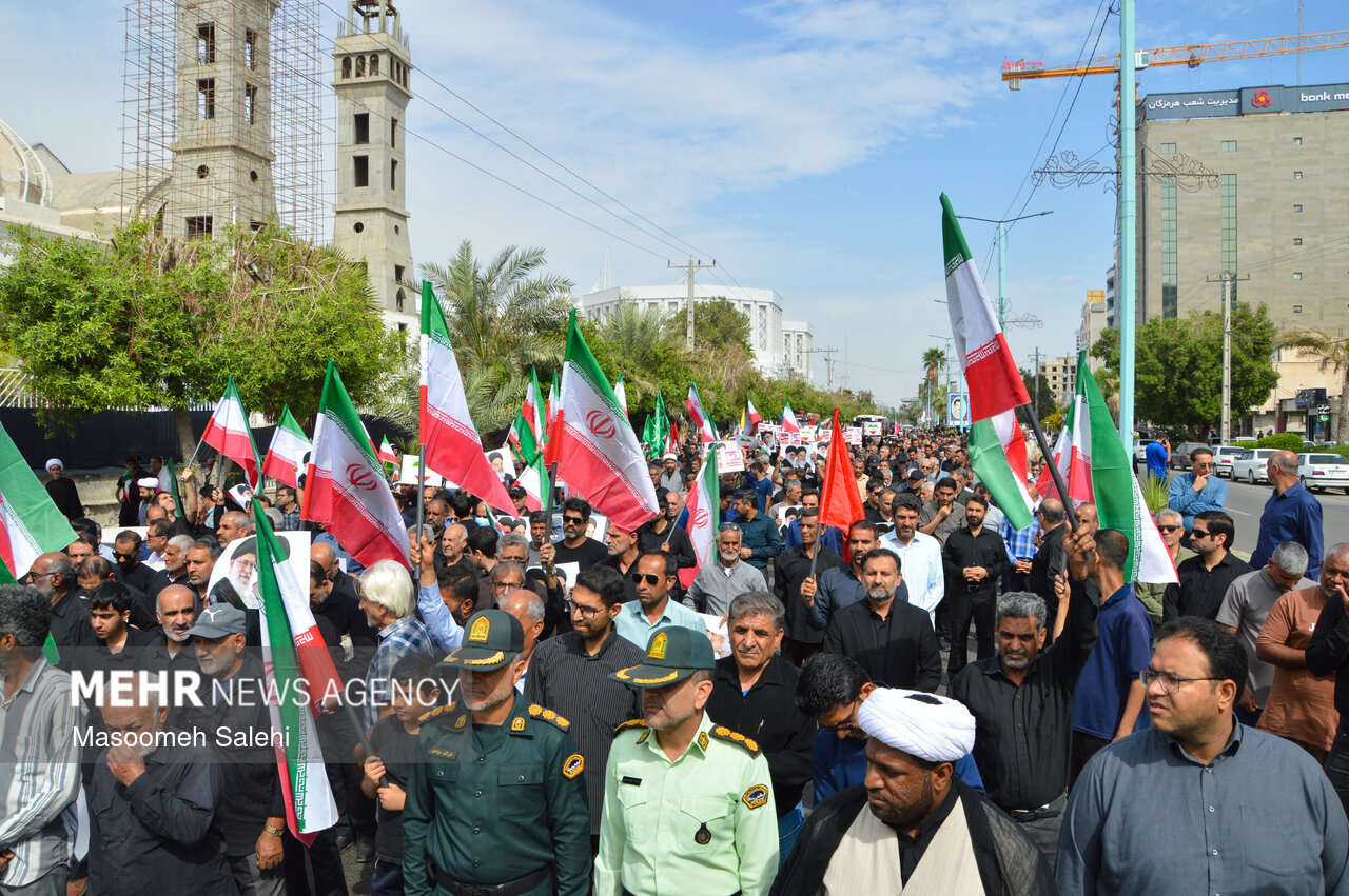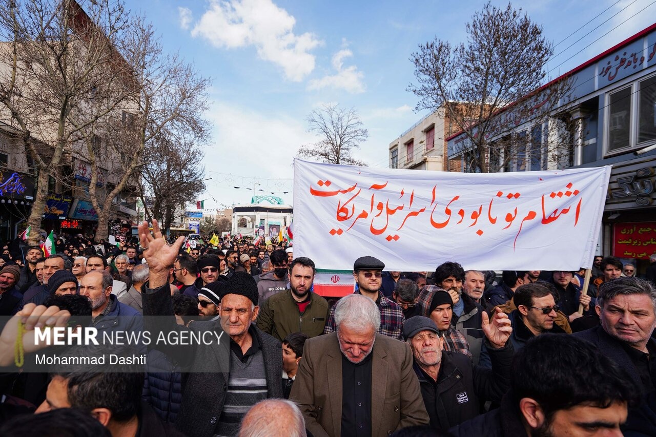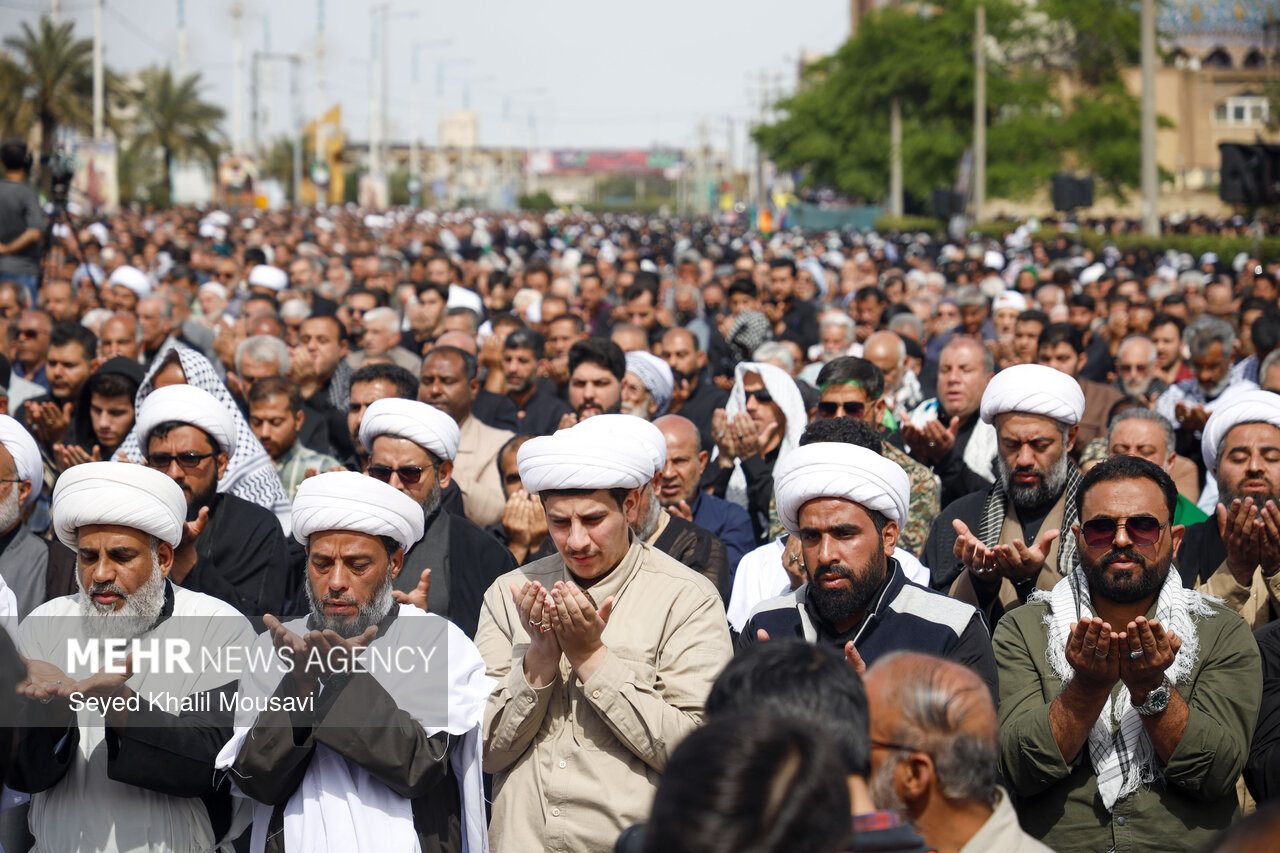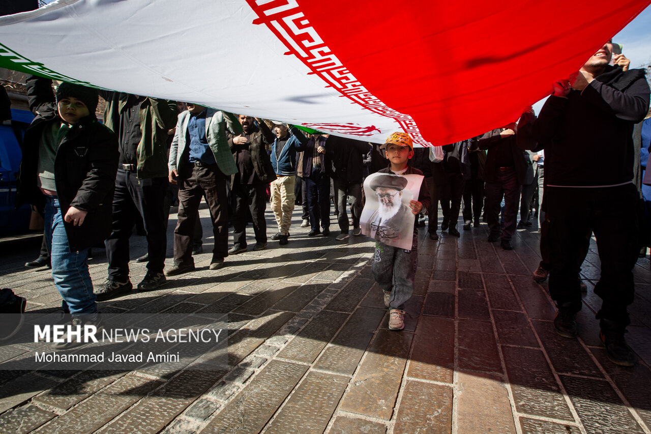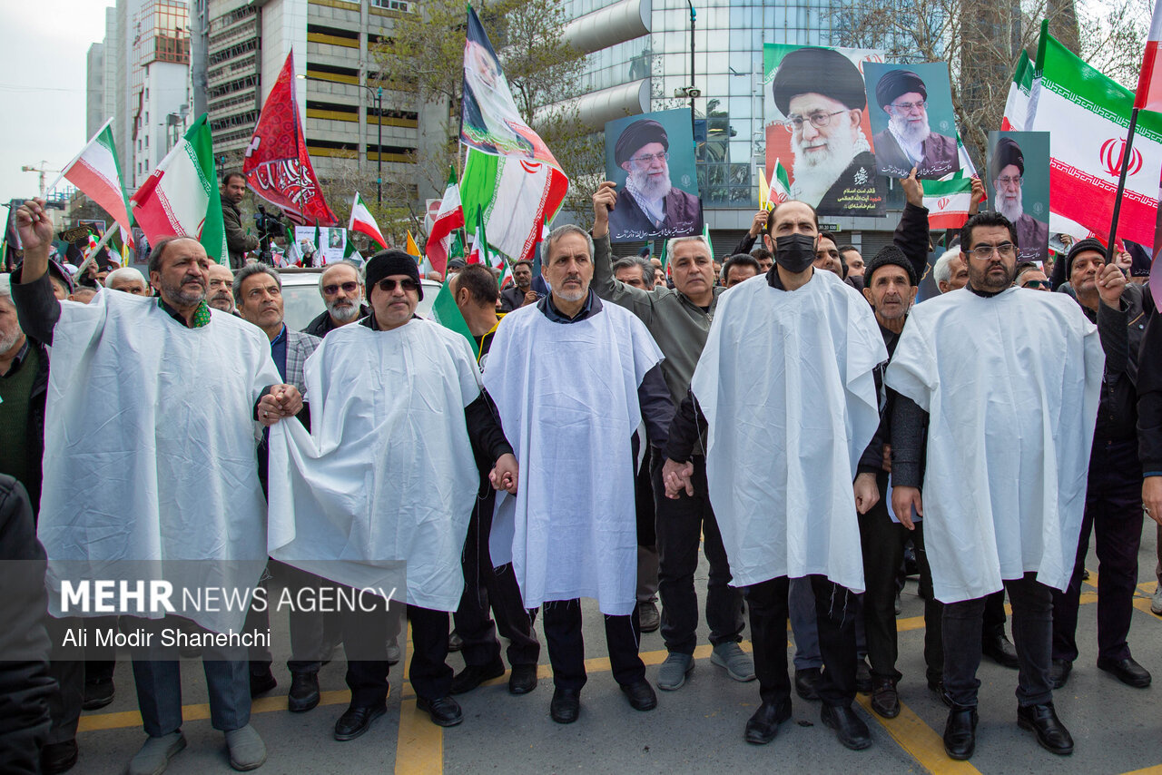 همزمان در سراسر کشور، مردم ایران پس از اقامه نماز جمعه با حضور در خیابانها ضمن اعلام خونخواهی در پی شهادت رهبر انقلاب، با برگزاری راهپیمایی سراسری اقدامات آمریکایی ـ صهیونیستی را محکوم کردند.|منبع: مهر
