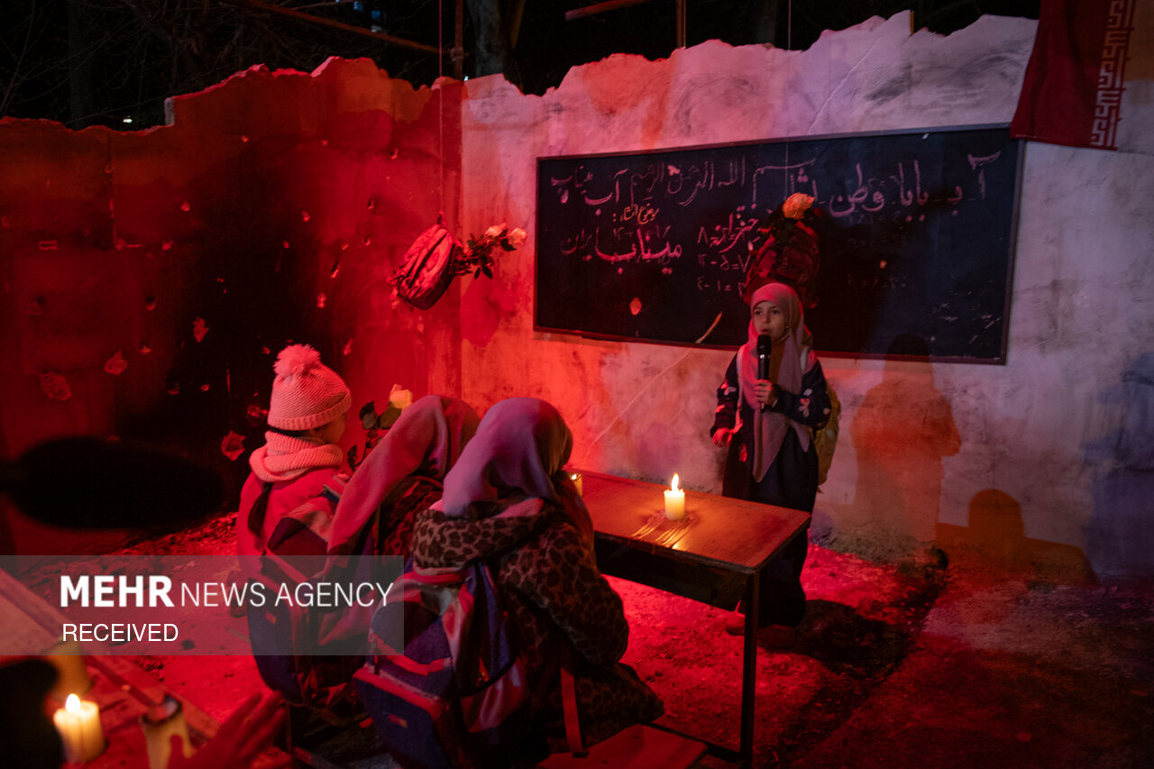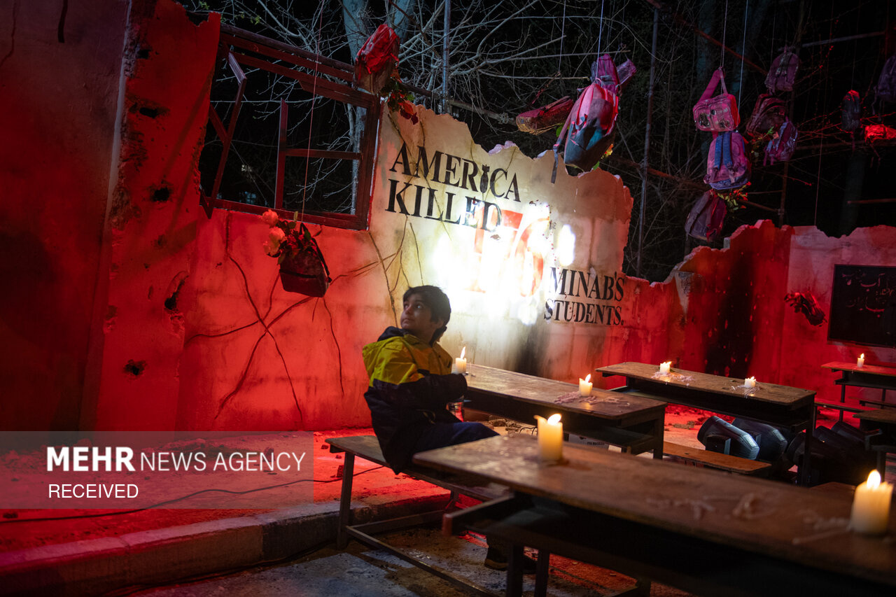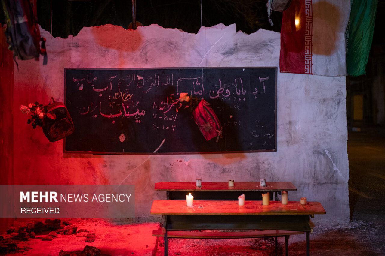 پرفورمنس اعتراضی «زنگ مدرسه میناب» در مقابل دفتر سازمان ملل در تهران برگزار شد و بازدید از آن برای عموم آزاد است. این برنامه بخشی از کمپین «میناب جان داد» در اعتراض به حمله به مدرسه شجره طیبه میناب است؛ حملهای که در آن ۱۶۸ دانشآموز و چند معلم به شهادت رسیدند و شمار شهدا به ۱۷۶ نفر رسید.|منبع: مهر