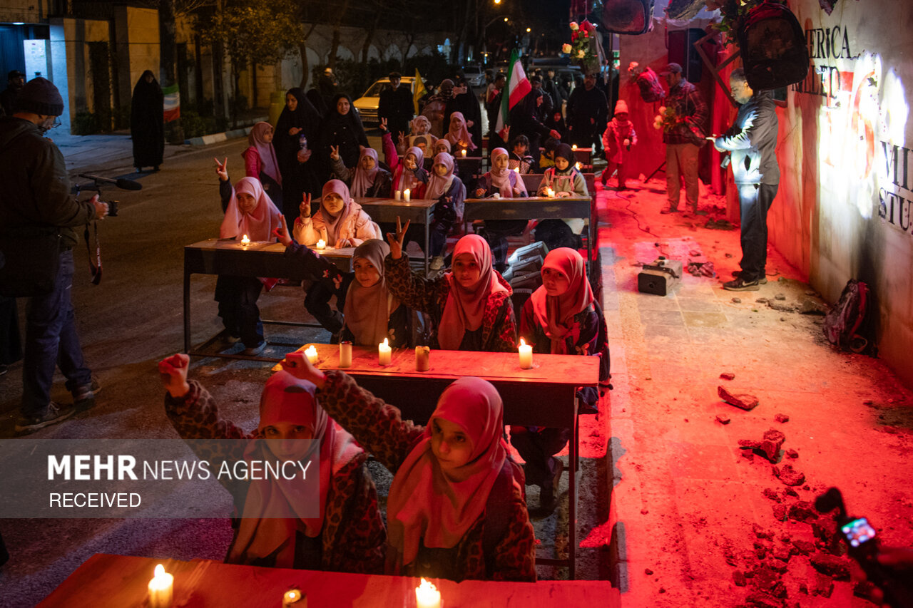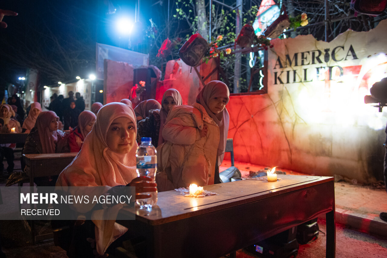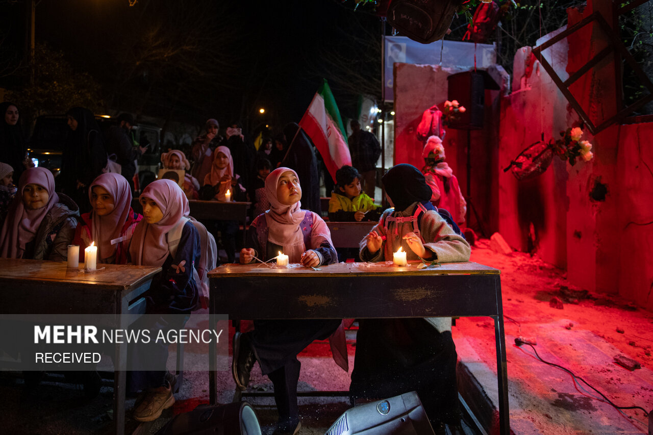 پرفورمنس اعتراضی «زنگ مدرسه میناب» در مقابل دفتر سازمان ملل در تهران برگزار شد و بازدید از آن برای عموم آزاد است. این برنامه بخشی از کمپین «میناب جان داد» در اعتراض به حمله به مدرسه شجره طیبه میناب است؛ حملهای که در آن ۱۶۸ دانشآموز و چند معلم به شهادت رسیدند و شمار شهدا به ۱۷۶ نفر رسید.|منبع: مهر