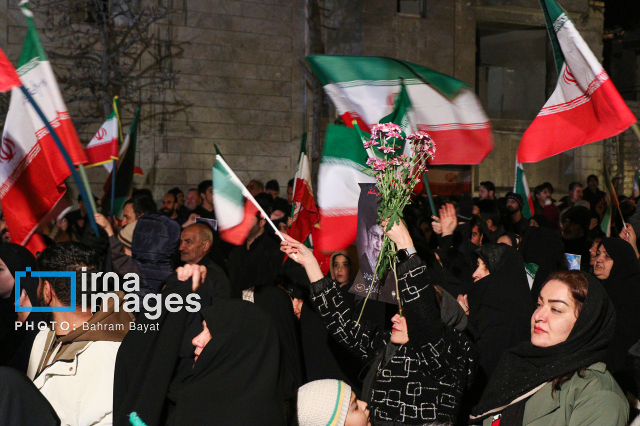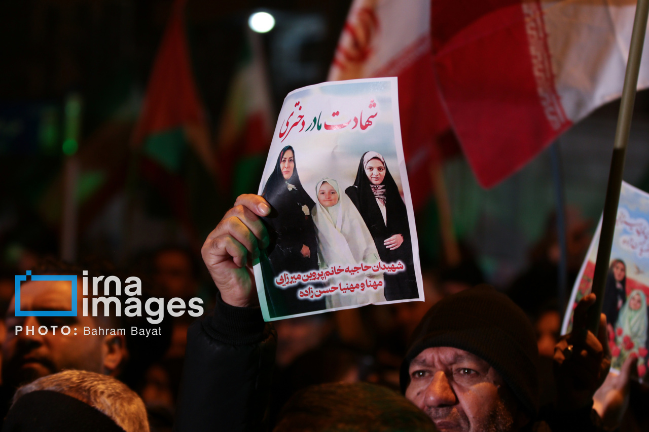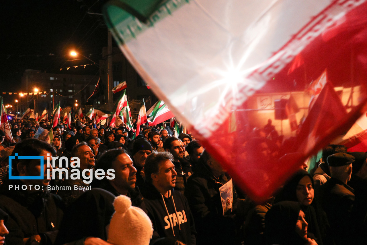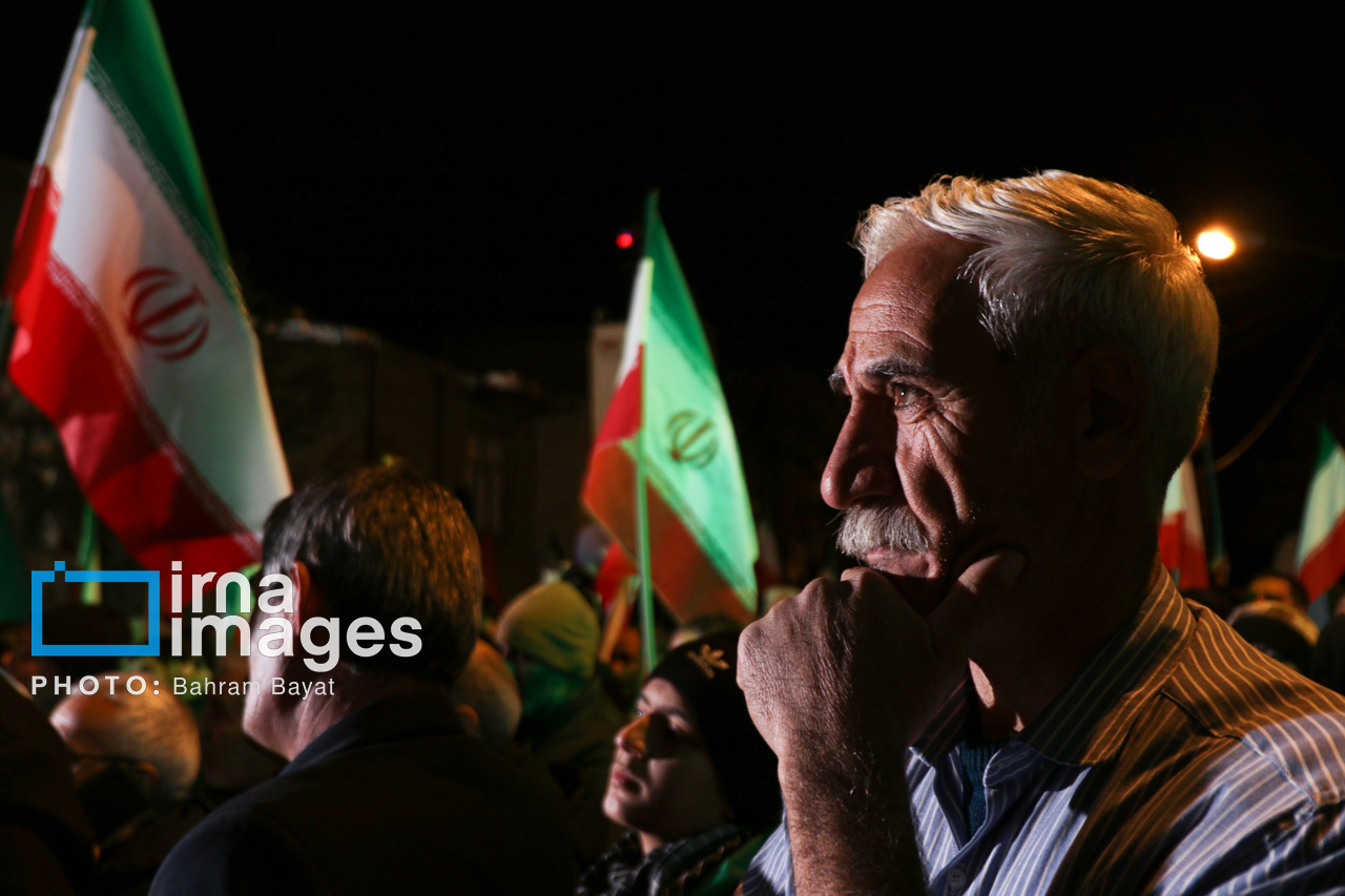 اجتماع مردمی فدایی ها (شامگاه ۲۳ اسفند۱۴۰۴) در محل اصابت موشک آمریکایی-صهیونی در منازل مسکونی شهرک آزادگان زنجان با حضور پرشور مردم زنجان برگزار شد. اصابت موشک آمریکایی-صهیونی در منازل مسکونی شهرک آزادگان زنجان در سحرگاه ۱۹ اسفند موجب شهادت مَهنیایِ ۹ ساله و خواهر و مادرشان شد. ۵ شهید از هم وطنان غیر نظامی که در حمله متجاوزانه رژیم صهیونی آمریکایی به راهدارخانه نیک پی به شهادت رسیدند، مهمان این برنامه بودند.|منبع: ایرنا