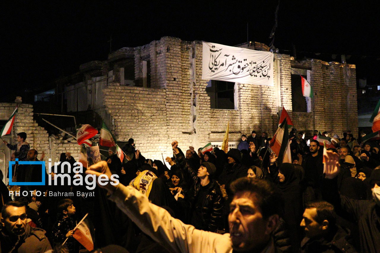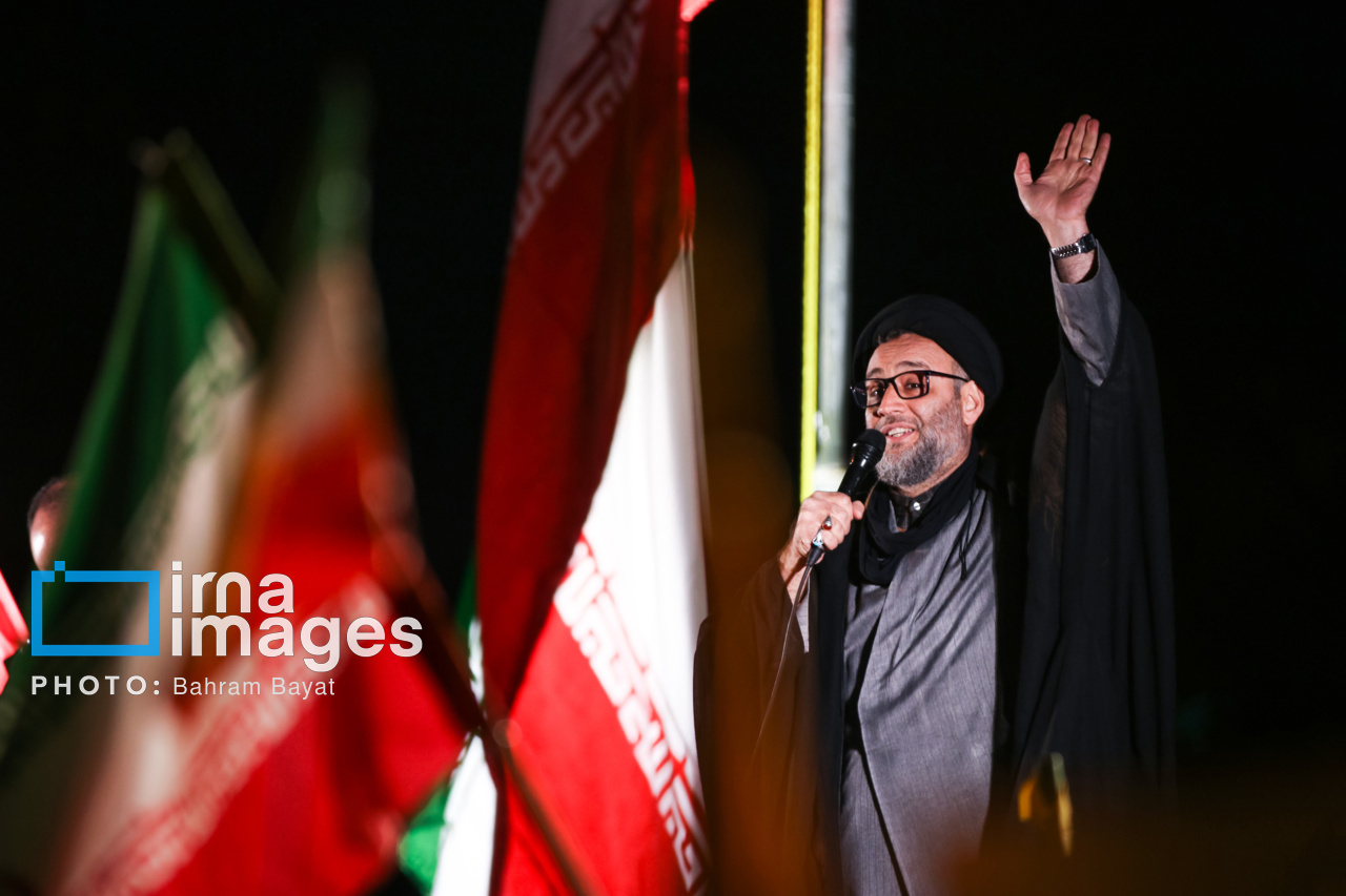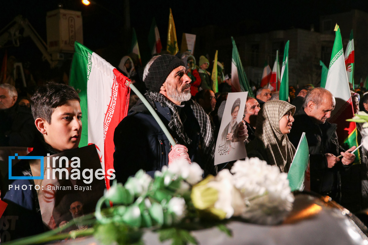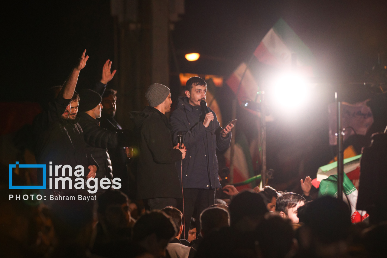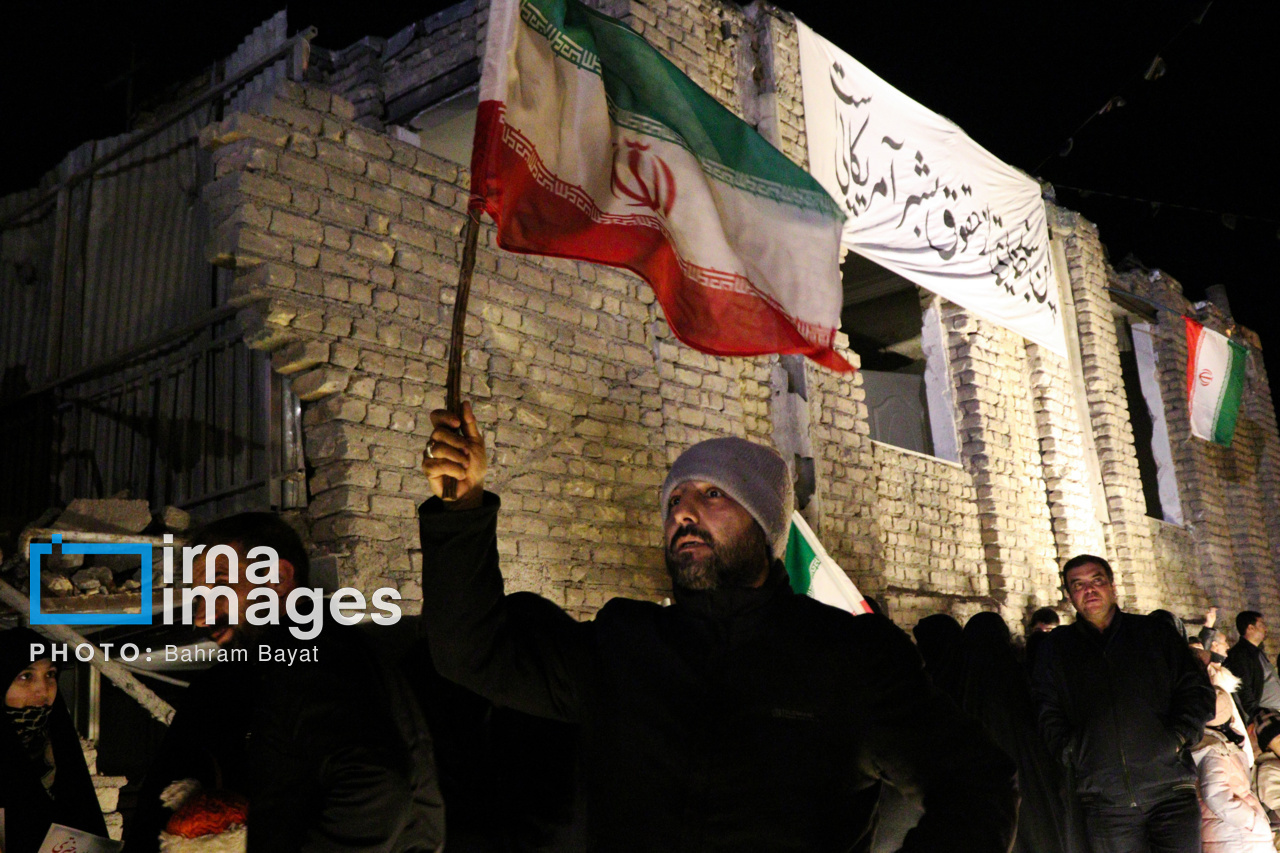 اجتماع مردمی فدایی ها (شامگاه ۲۳ اسفند۱۴۰۴) در محل اصابت موشک آمریکایی-صهیونی در منازل مسکونی شهرک آزادگان زنجان با حضور پرشور مردم زنجان برگزار شد. اصابت موشک آمریکایی-صهیونی در منازل مسکونی شهرک آزادگان زنجان در سحرگاه ۱۹ اسفند موجب شهادت مَهنیایِ ۹ ساله و خواهر و مادرشان شد. ۵ شهید از هم وطنان غیر نظامی که در حمله متجاوزانه رژیم صهیونی آمریکایی به راهدارخانه نیک پی به شهادت رسیدند، مهمان این برنامه بودند.|منبع: ایرنا