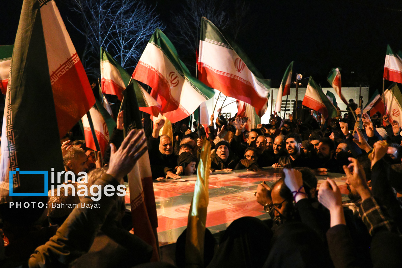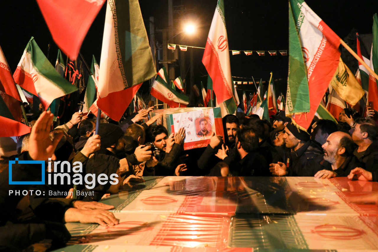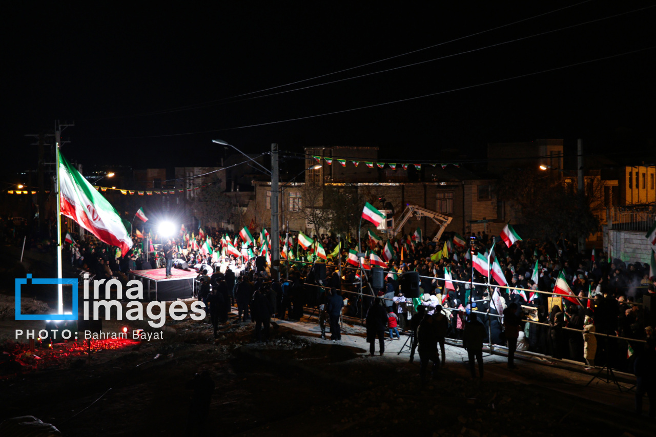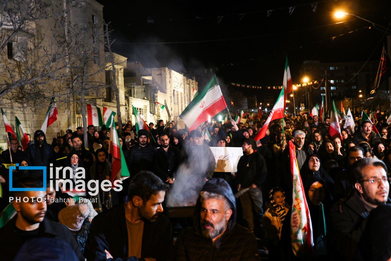 اجتماع مردمی فدایی ها (شامگاه ۲۳ اسفند۱۴۰۴) در محل اصابت موشک آمریکایی-صهیونی در منازل مسکونی شهرک آزادگان زنجان با حضور پرشور مردم زنجان برگزار شد. اصابت موشک آمریکایی-صهیونی در منازل مسکونی شهرک آزادگان زنجان در سحرگاه ۱۹ اسفند موجب شهادت مَهنیایِ ۹ ساله و خواهر و مادرشان شد. ۵ شهید از هم وطنان غیر نظامی که در حمله متجاوزانه رژیم صهیونی آمریکایی به راهدارخانه نیک پی به شهادت رسیدند، مهمان این برنامه بودند.|منبع: ایرنا