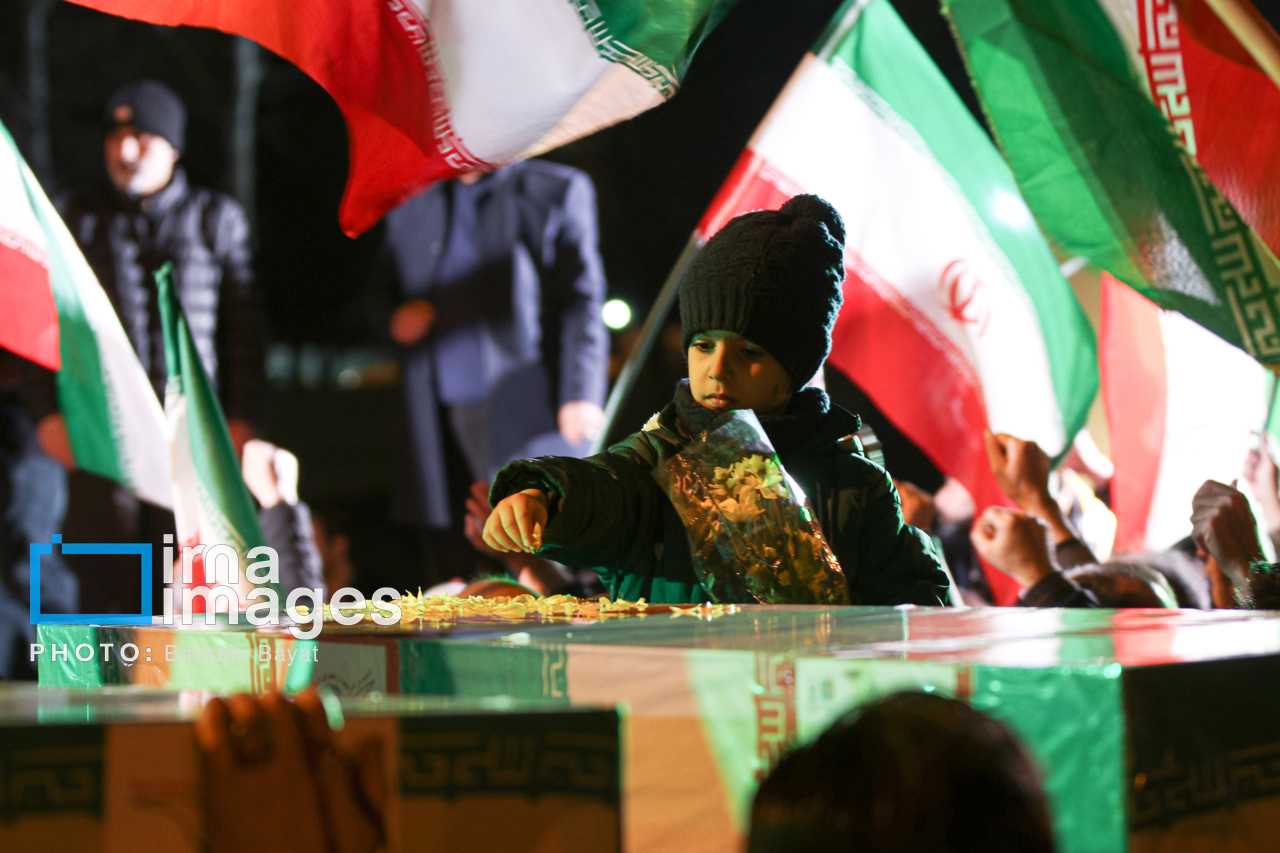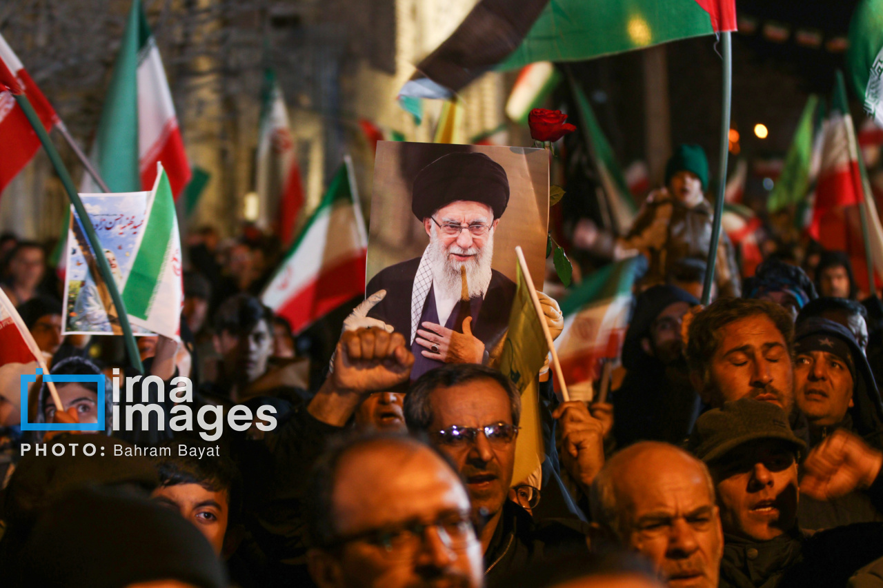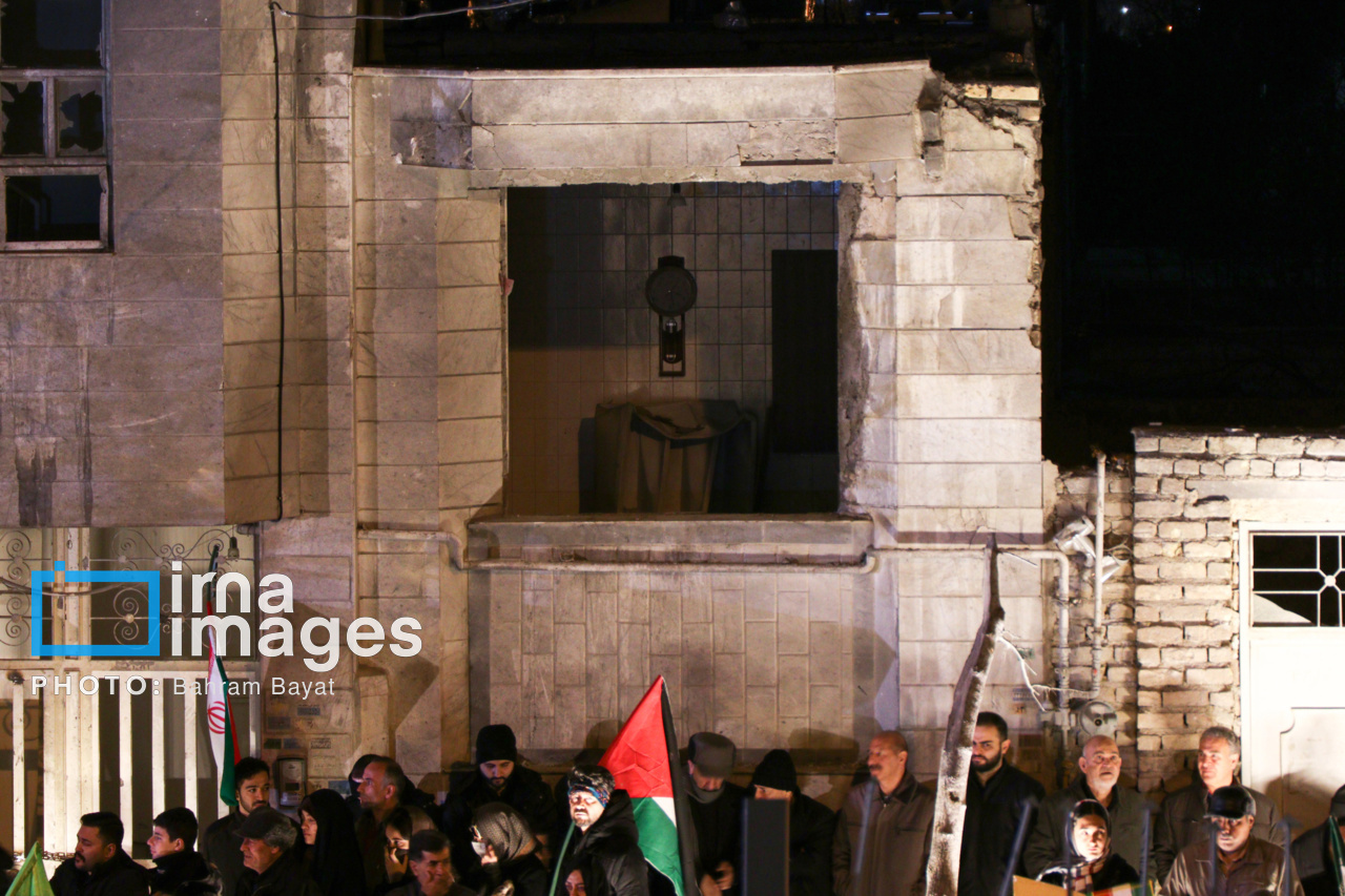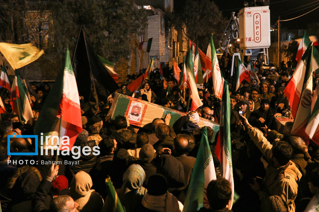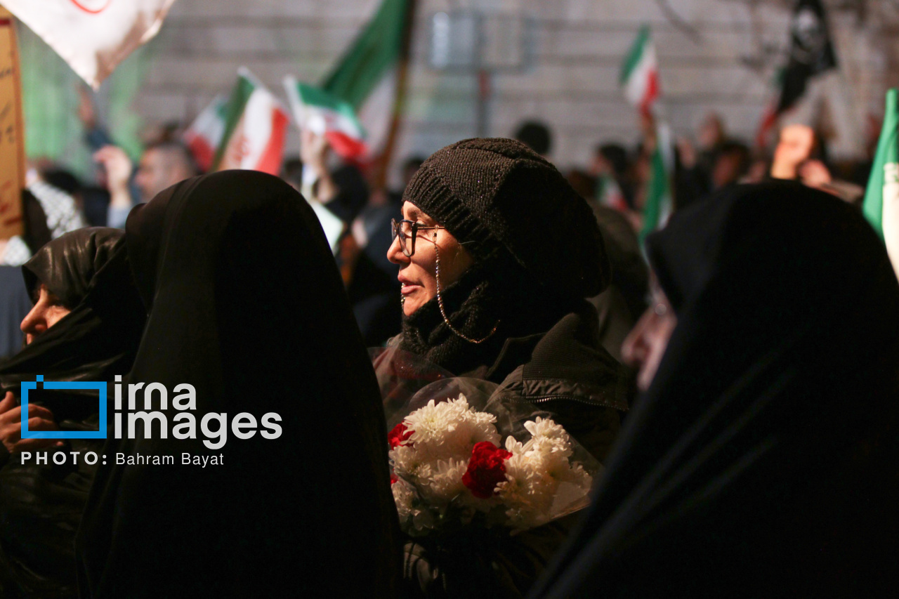 اجتماع مردمی فدایی ها (شامگاه ۲۳ اسفند۱۴۰۴) در محل اصابت موشک آمریکایی-صهیونی در منازل مسکونی شهرک آزادگان زنجان با حضور پرشور مردم زنجان برگزار شد. اصابت موشک آمریکایی-صهیونی در منازل مسکونی شهرک آزادگان زنجان در سحرگاه ۱۹ اسفند موجب شهادت مَهنیایِ ۹ ساله و خواهر و مادرشان شد. ۵ شهید از هم وطنان غیر نظامی که در حمله متجاوزانه رژیم صهیونی آمریکایی به راهدارخانه نیک پی به شهادت رسیدند، مهمان این برنامه بودند.|منبع: ایرنا
