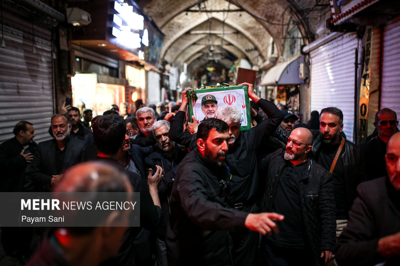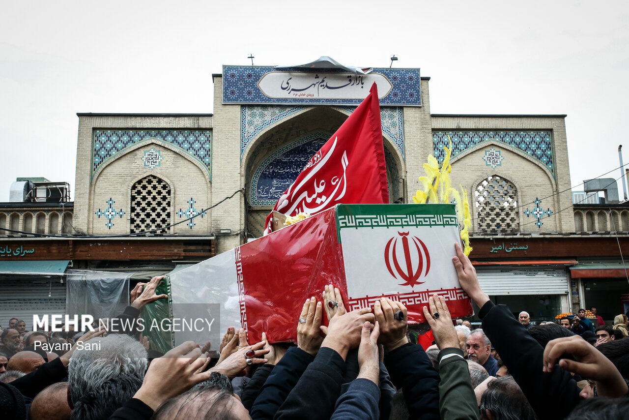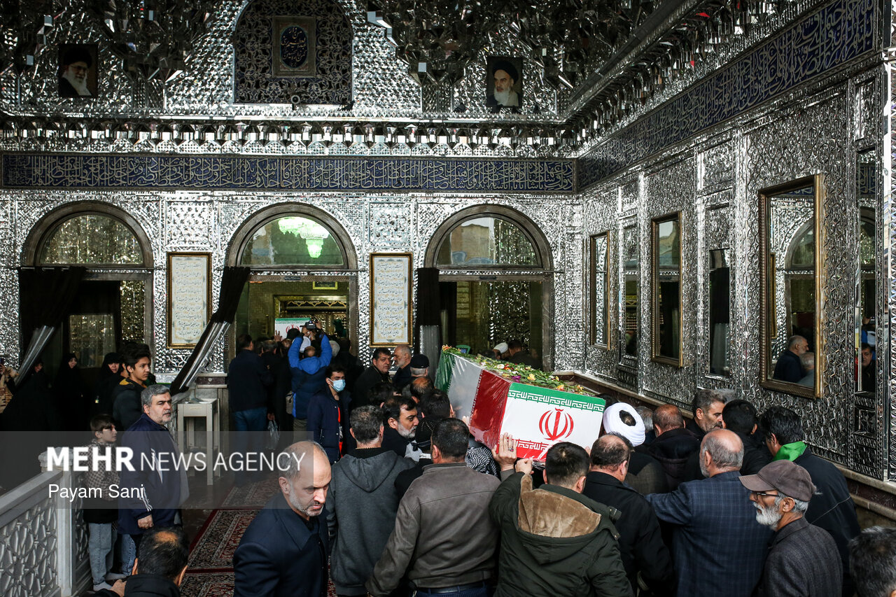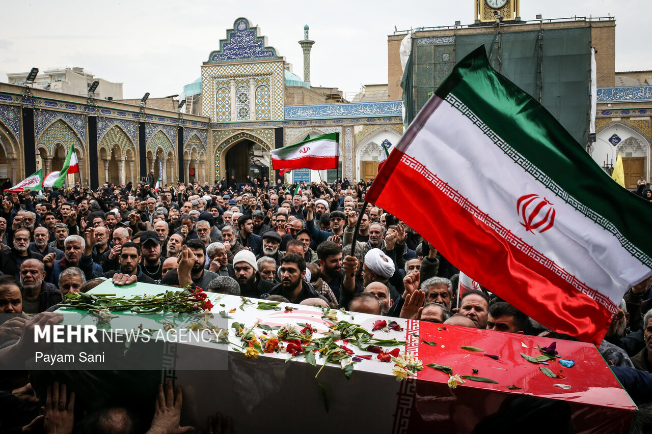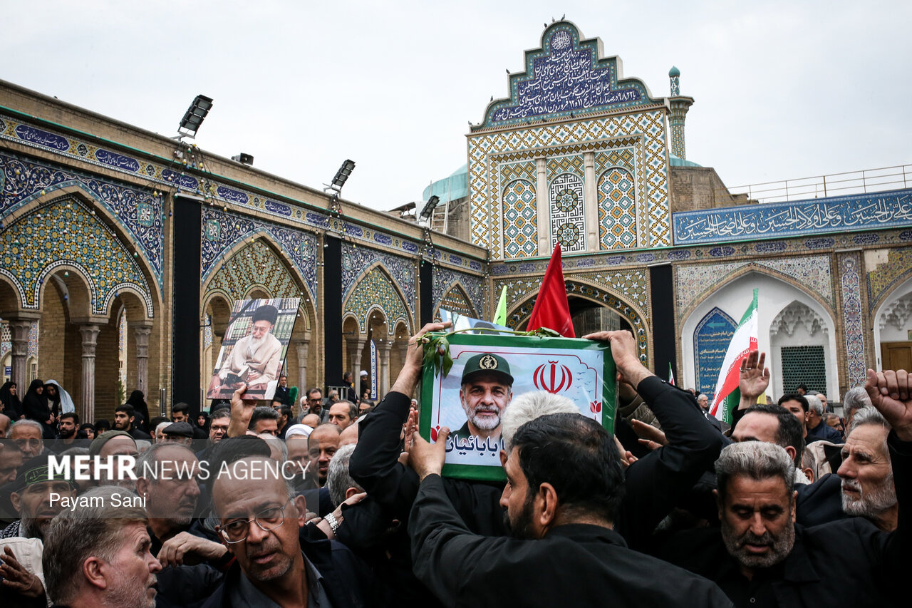 مراسم تشییع و تدفین سردار سرلشکر پاسدار شهید ابوالقاسم بابائیان و همسر شهیده ایشان، یکشنبه ۲۴ اسفند ماه ۱۴۰۴ ،با حضور گسترده مردم از امامزاده عبدالله(علیهالسلام) شهر ری به طرف حرم حضرت عبدالعظیم حسنی(علیهالسلام) برگزار شد.|منبع: مهر
