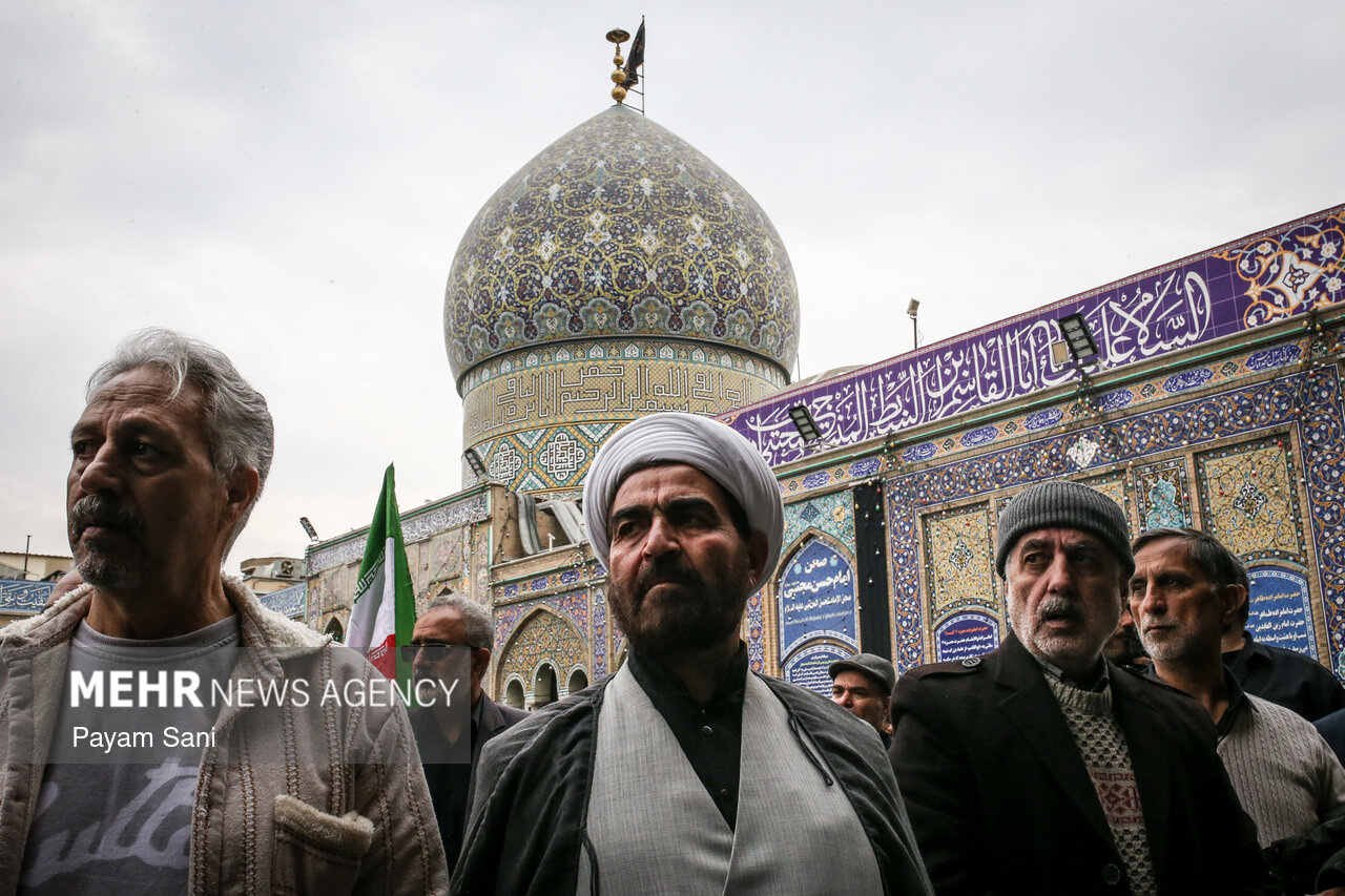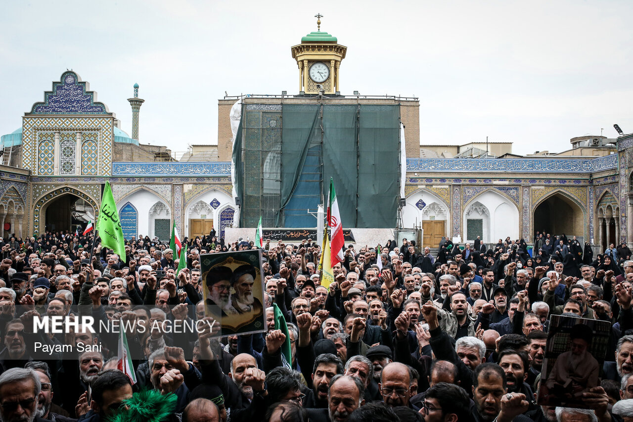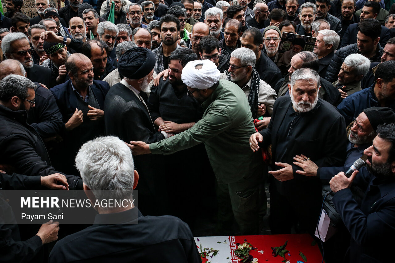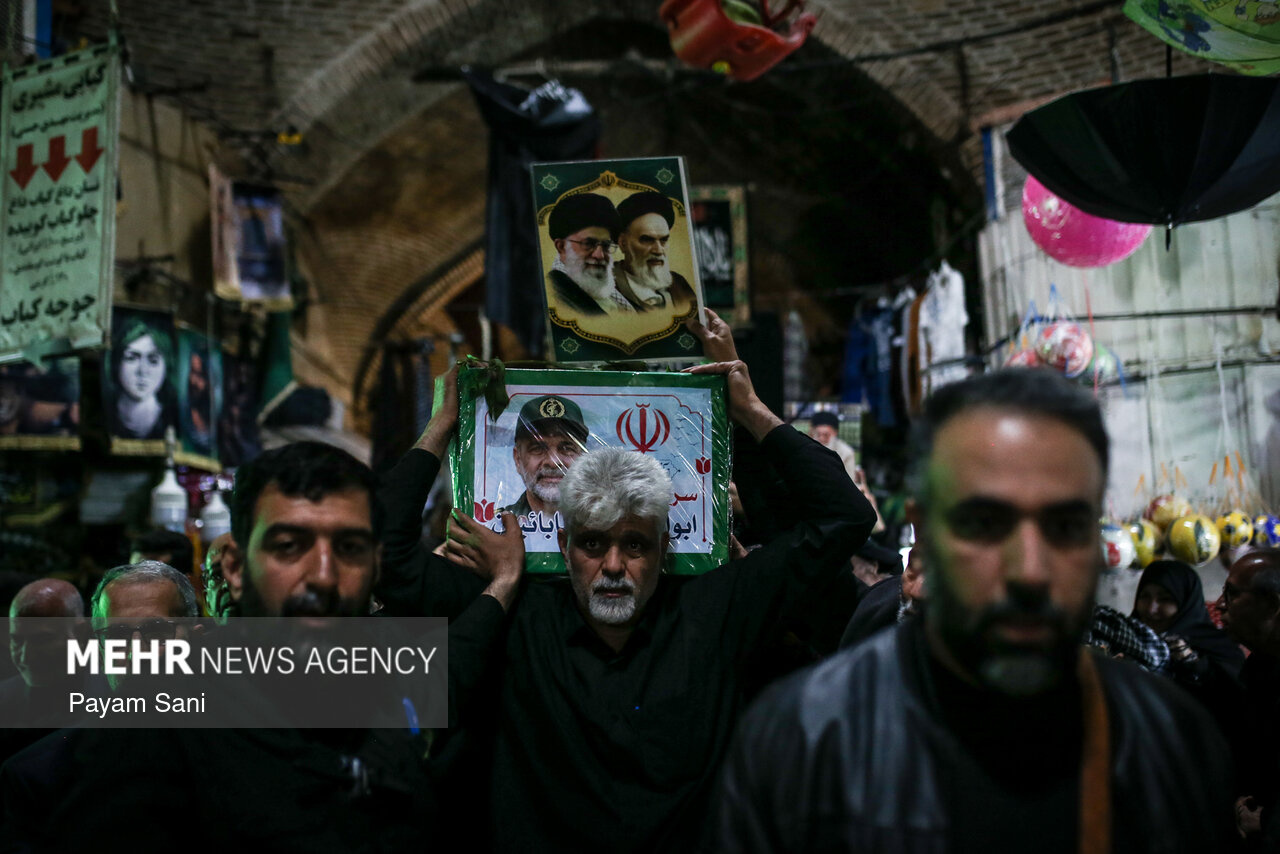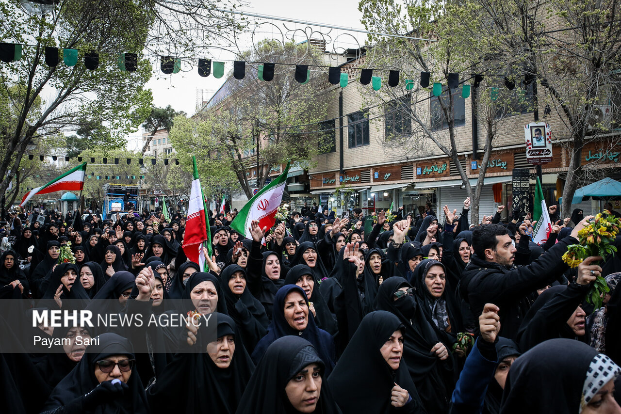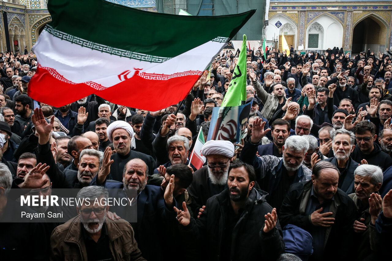 مراسم تشییع و تدفین سردار سرلشکر پاسدار شهید ابوالقاسم بابائیان و همسر شهیده ایشان، یکشنبه ۲۴ اسفند ماه ۱۴۰۴ ،با حضور گسترده مردم از امامزاده عبدالله(علیهالسلام) شهر ری به طرف حرم حضرت عبدالعظیم حسنی(علیهالسلام) برگزار شد.|منبع: مهر