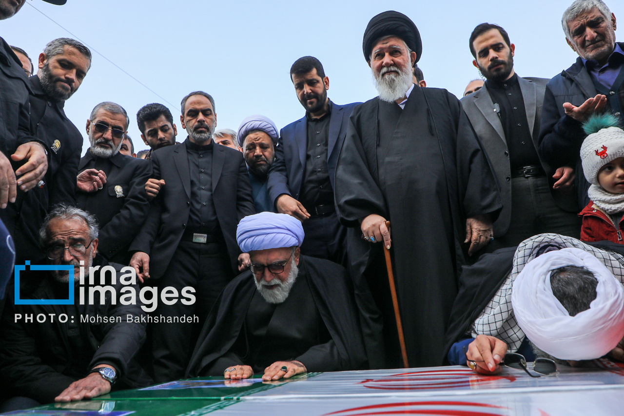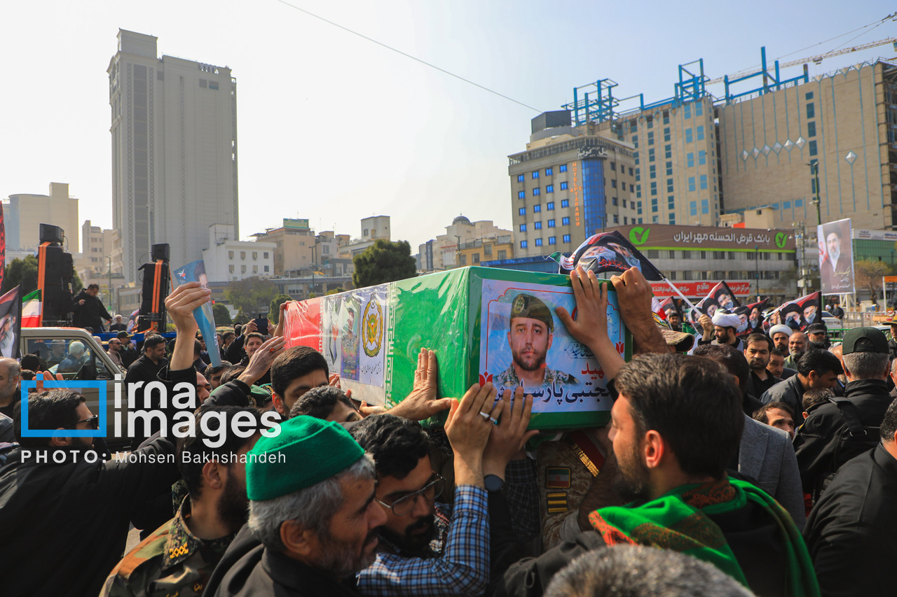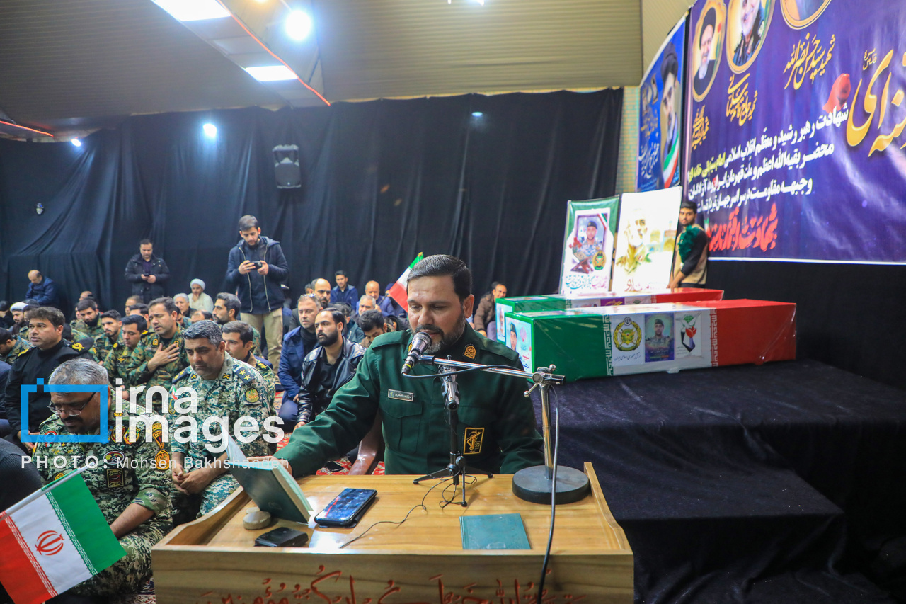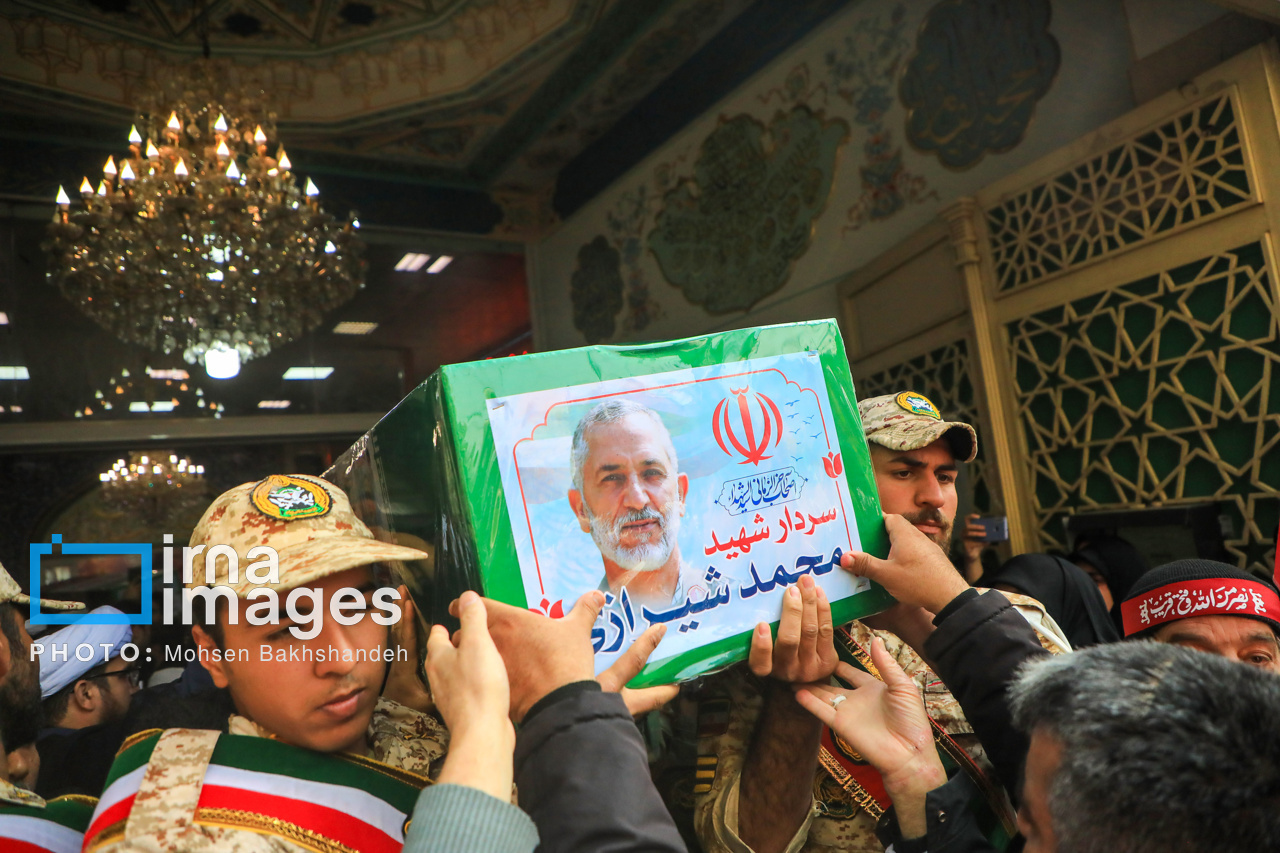 پیکر دو نفر از شهدای حمله به بیت رهبری؛ شهید سرلشکر محمد شیرازی و شهید مجتبی پارساروش که در روز نخست حمله متجاوزانه آمریکایی - اسرائیلی به شهادت رسیدند،روز یکشنبه (۲۴ اسفند ۱۴۰۴) در مشهد تشییع و در حرم رضوی به خاک سپرده شد.|منبع: ایرنا