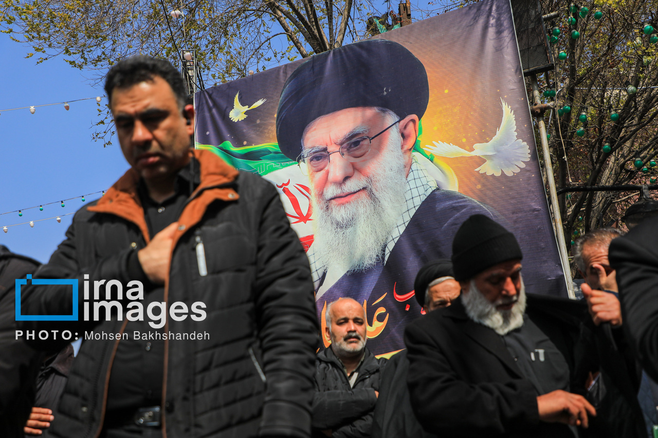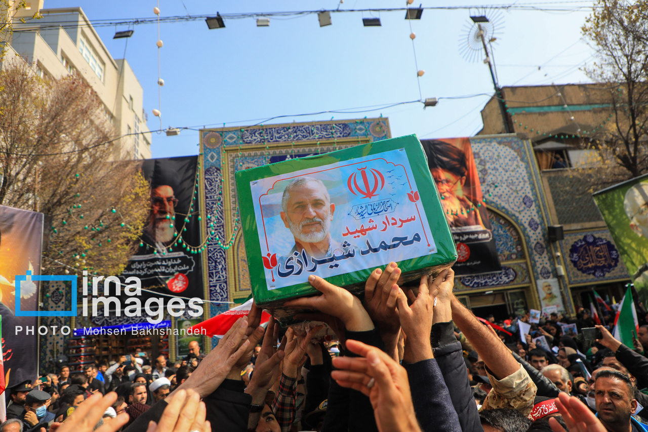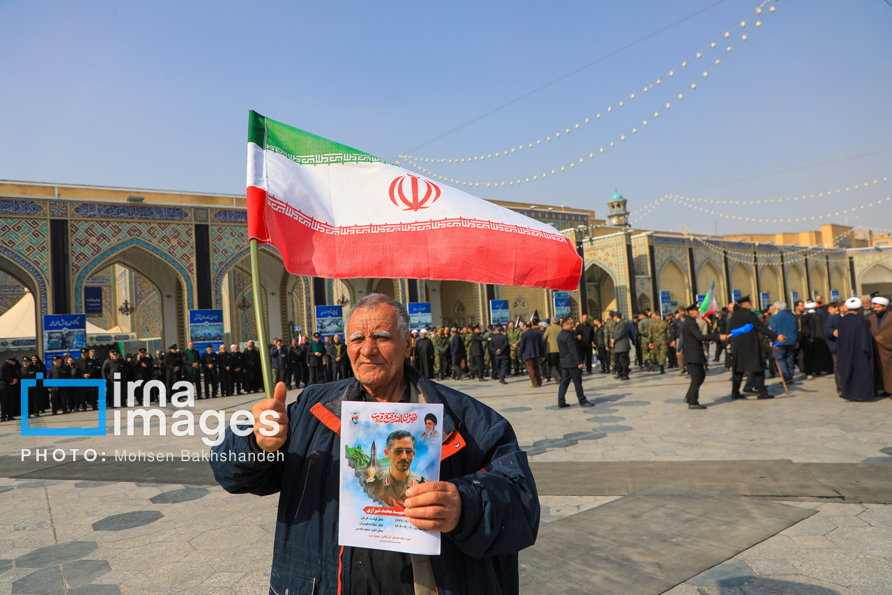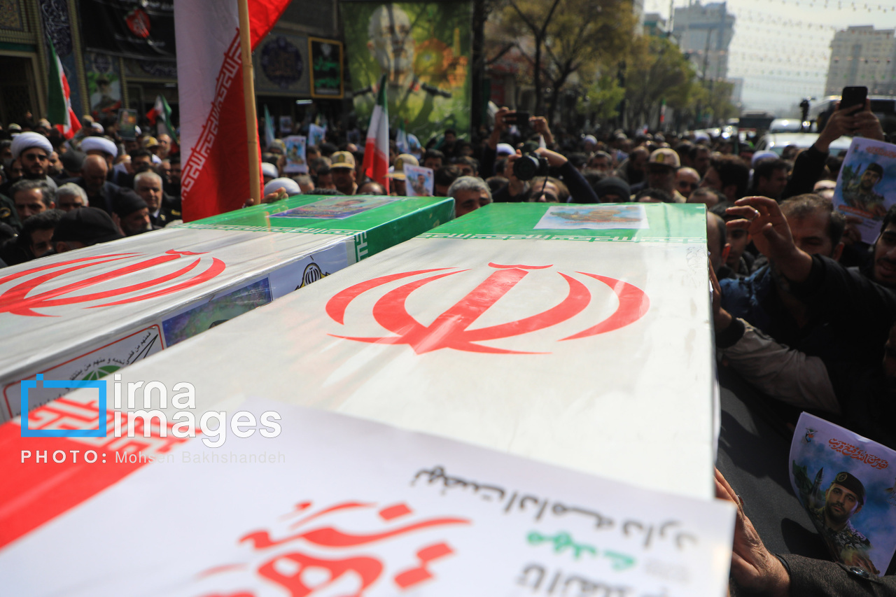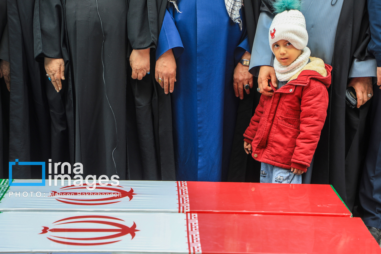 پیکر دو نفر از شهدای حمله به بیت رهبری؛ شهید سرلشکر محمد شیرازی و شهید مجتبی پارساروش که در روز نخست حمله متجاوزانه آمریکایی - اسرائیلی به شهادت رسیدند،روز یکشنبه (۲۴ اسفند ۱۴۰۴) در مشهد تشییع و در حرم رضوی به خاک سپرده شد.|منبع: ایرنا