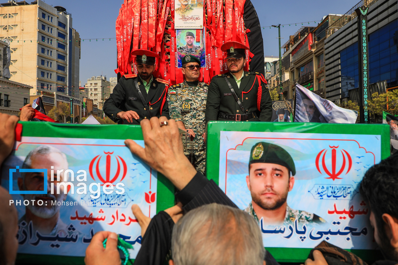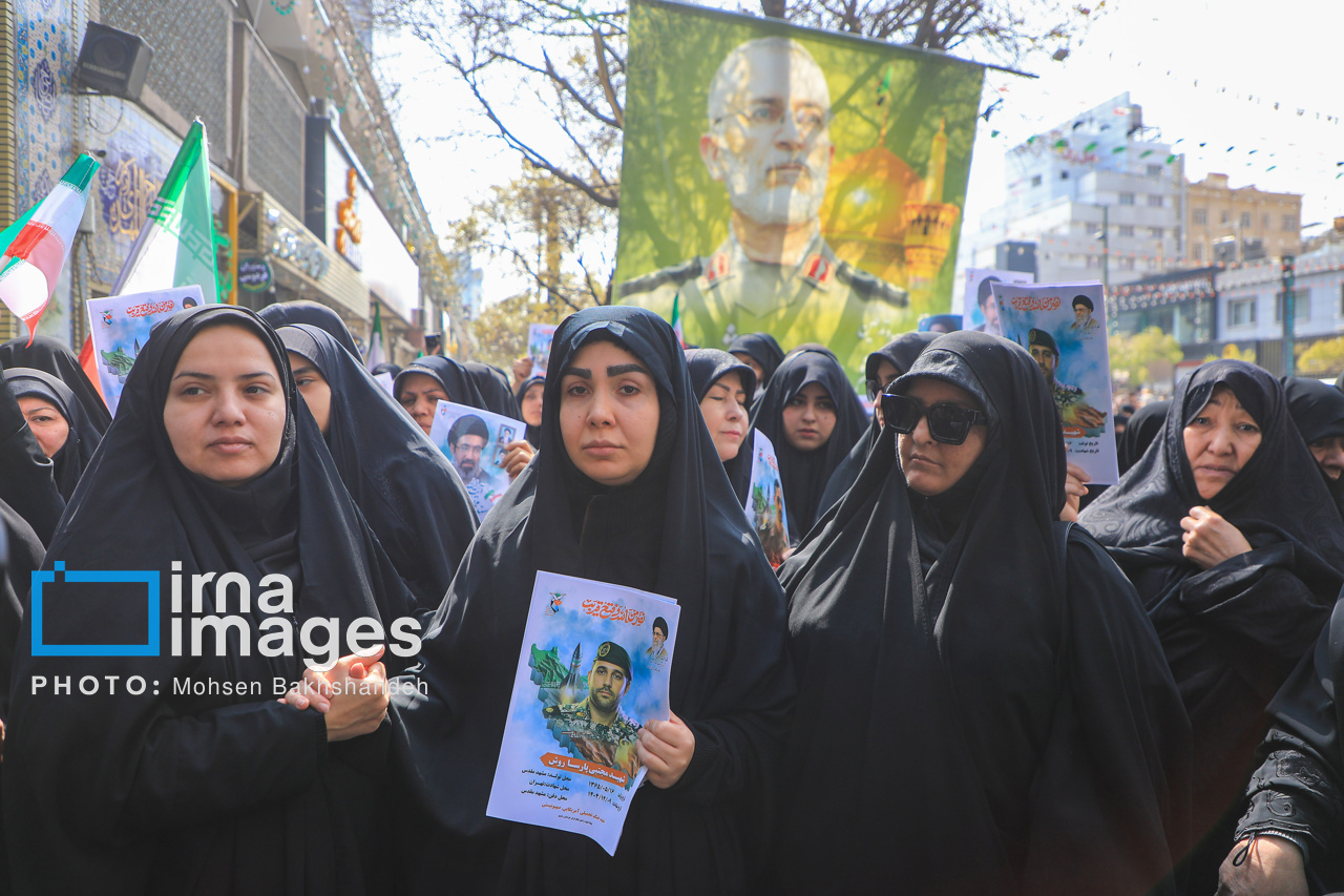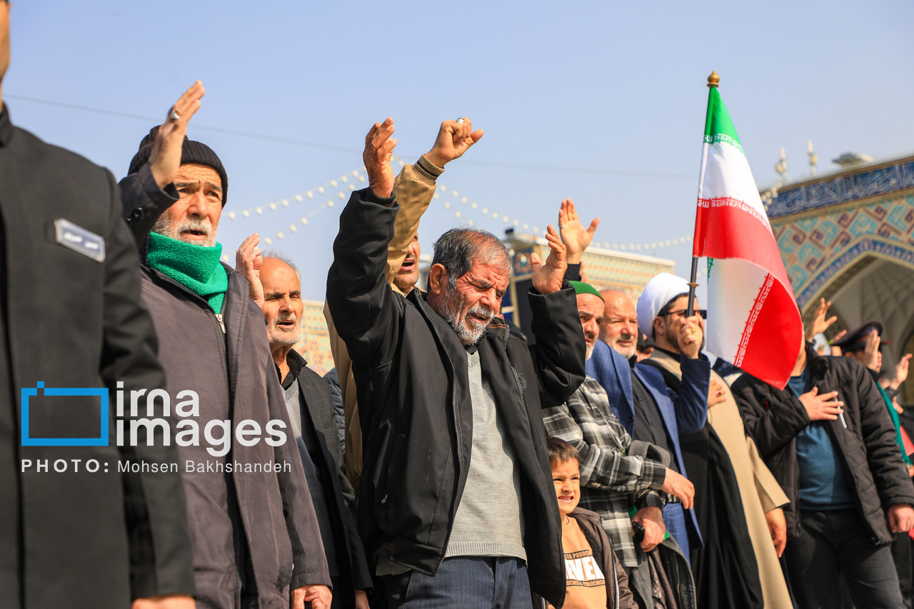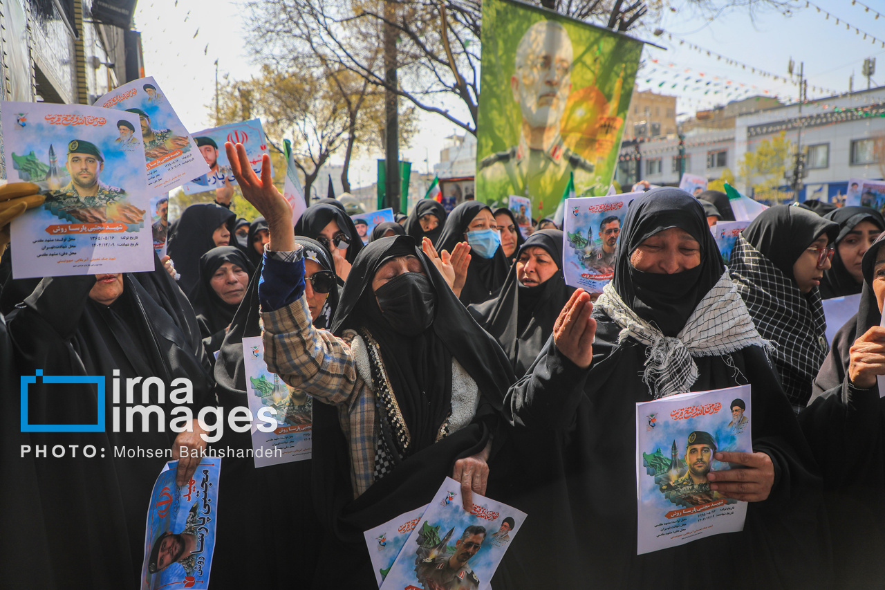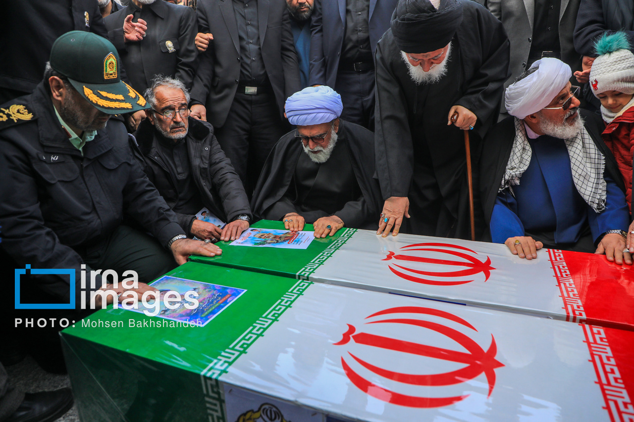 پیکر دو نفر از شهدای حمله به بیت رهبری؛ شهید سرلشکر محمد شیرازی و شهید مجتبی پارساروش که در روز نخست حمله متجاوزانه آمریکایی - اسرائیلی به شهادت رسیدند،روز یکشنبه (۲۴ اسفند ۱۴۰۴) در مشهد تشییع و در حرم رضوی به خاک سپرده شد.|منبع: ایرنا